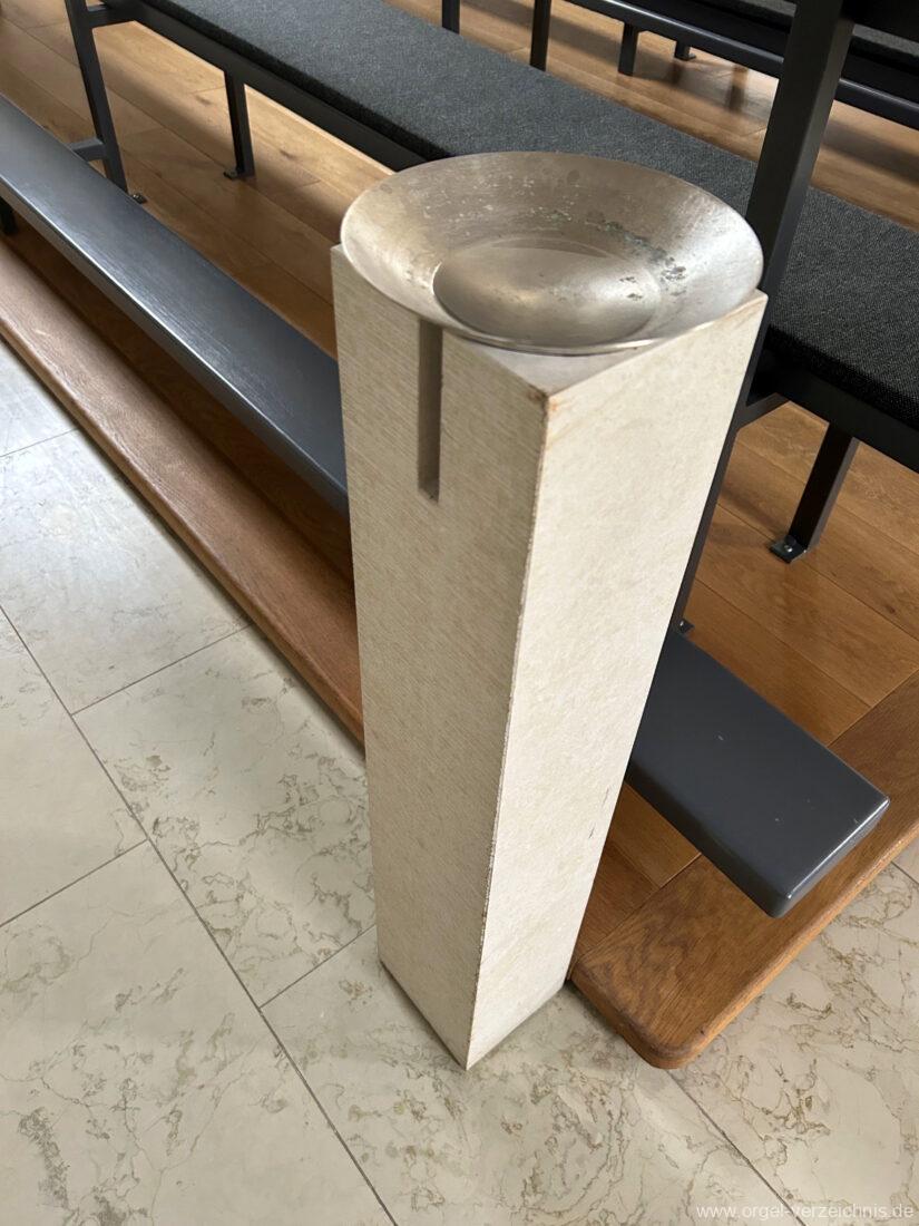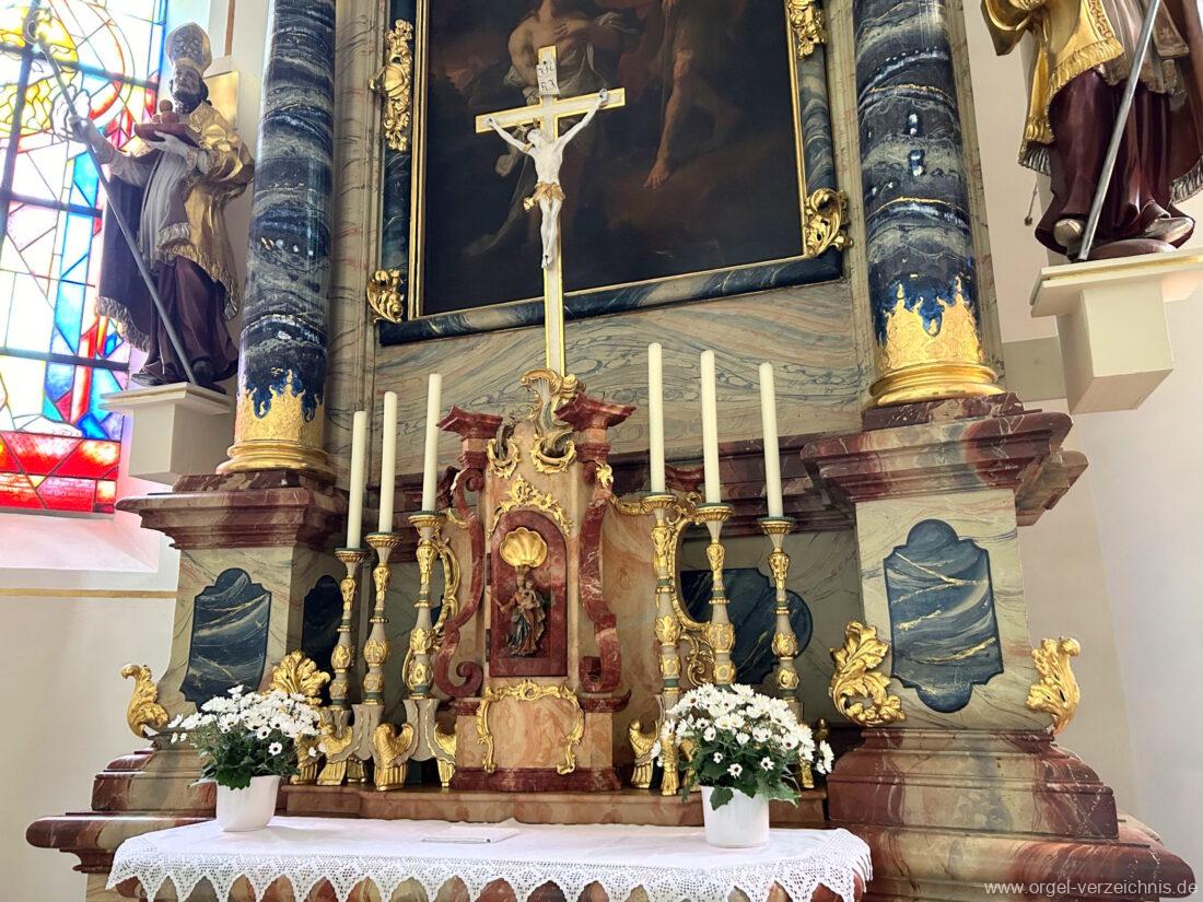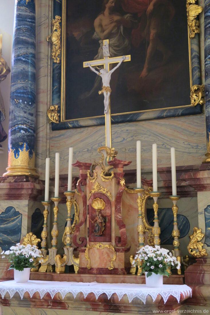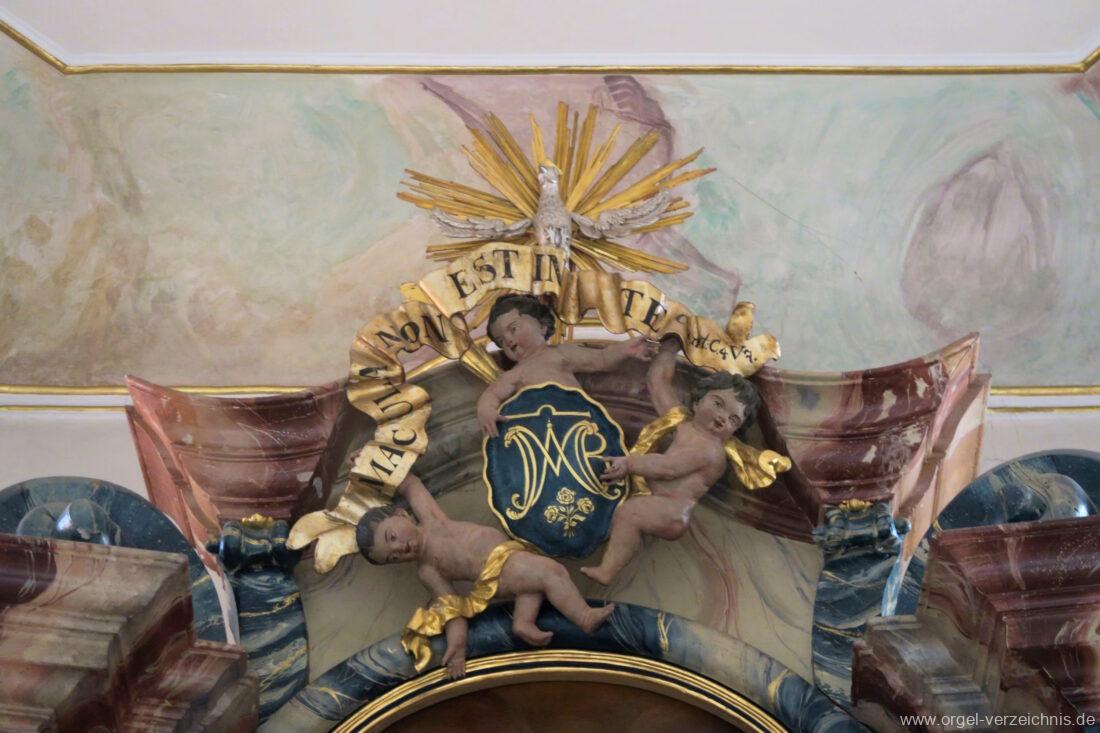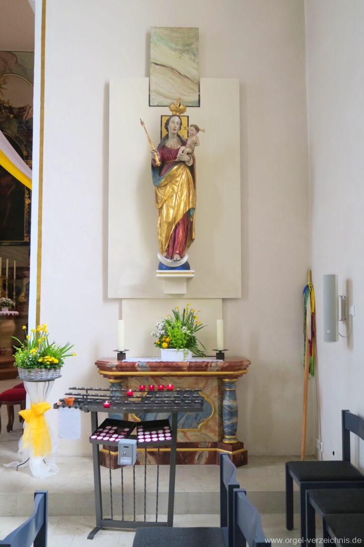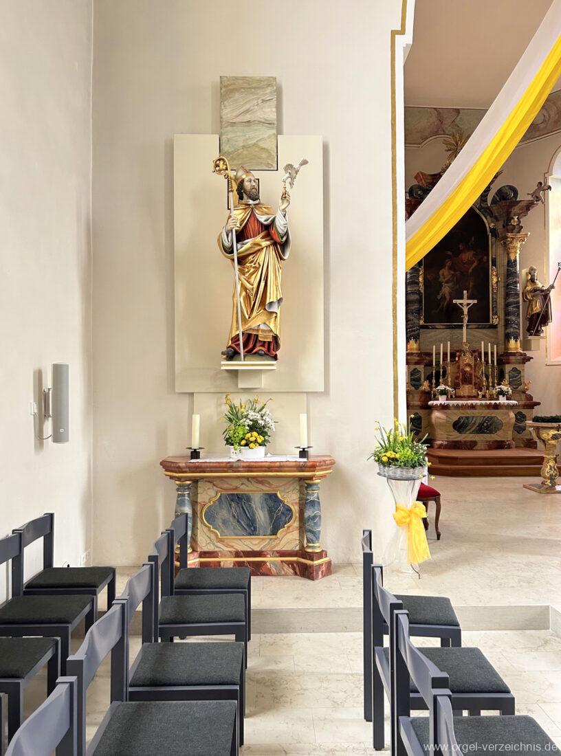 2015 Schleifladenorgel mit mittig freistehendem Spieltisch (Blickrichtung Chor) und mechanischer Traktur, erbaut unter Verwendung des Hieber-Gehäuses und des vorhandenen historischen Pfeifenmateriales und einiger Register von 1938 durch Orgelbau Wolfram Stützle (Waldkirch/Breisgau) II/17. Die ursprüngliche Tretanlage wird bei der Massnahme rekonstruiert und das Gehäuse mit neuer Farbfassung restauriert und verlängert – Einweihung mit OSV Georg Koch am 11. Oktober 2015. Bei der Einweihung wurden Werke von Johann Christian Kittel, Justin Heinrich Knecht, Josef Gabriel Rheinberger, Johann Sebastian Bach, Gustav Adolf Merkel, Heitor Villa-Lobos und Christian Heinrich Rinck dargeboten.