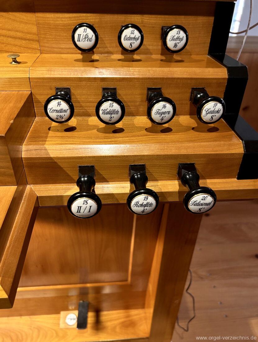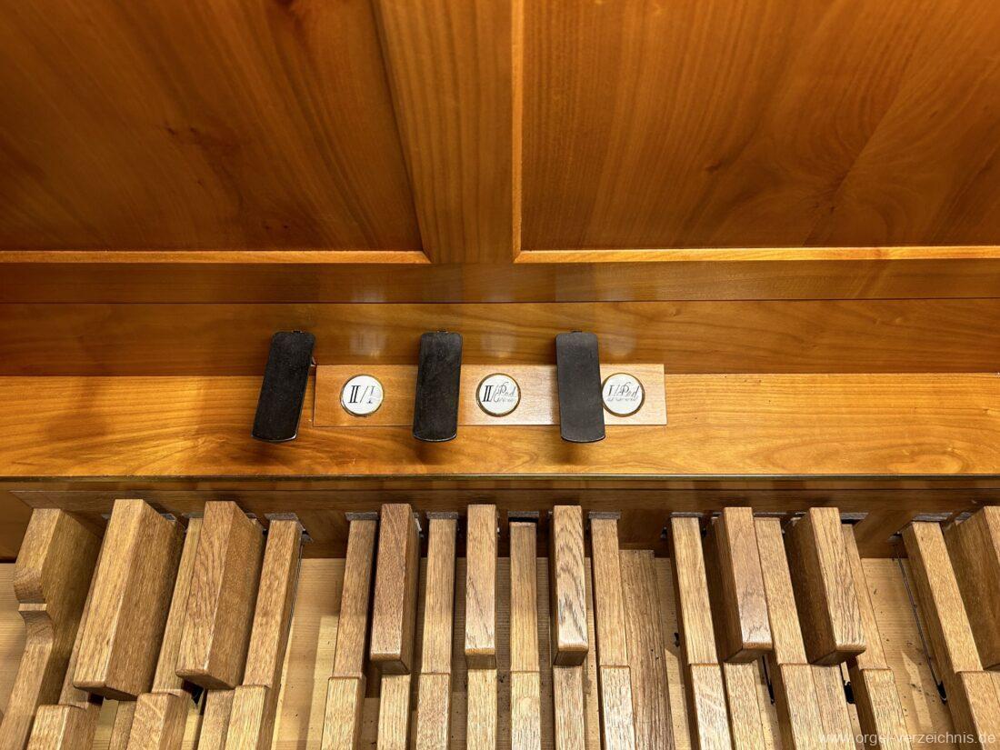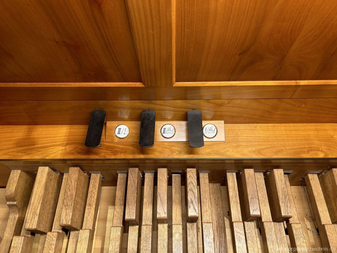 Rechte Seite: II/Ped. als Registerzug Nr. 11, II / I als Registerzug Nr. 18