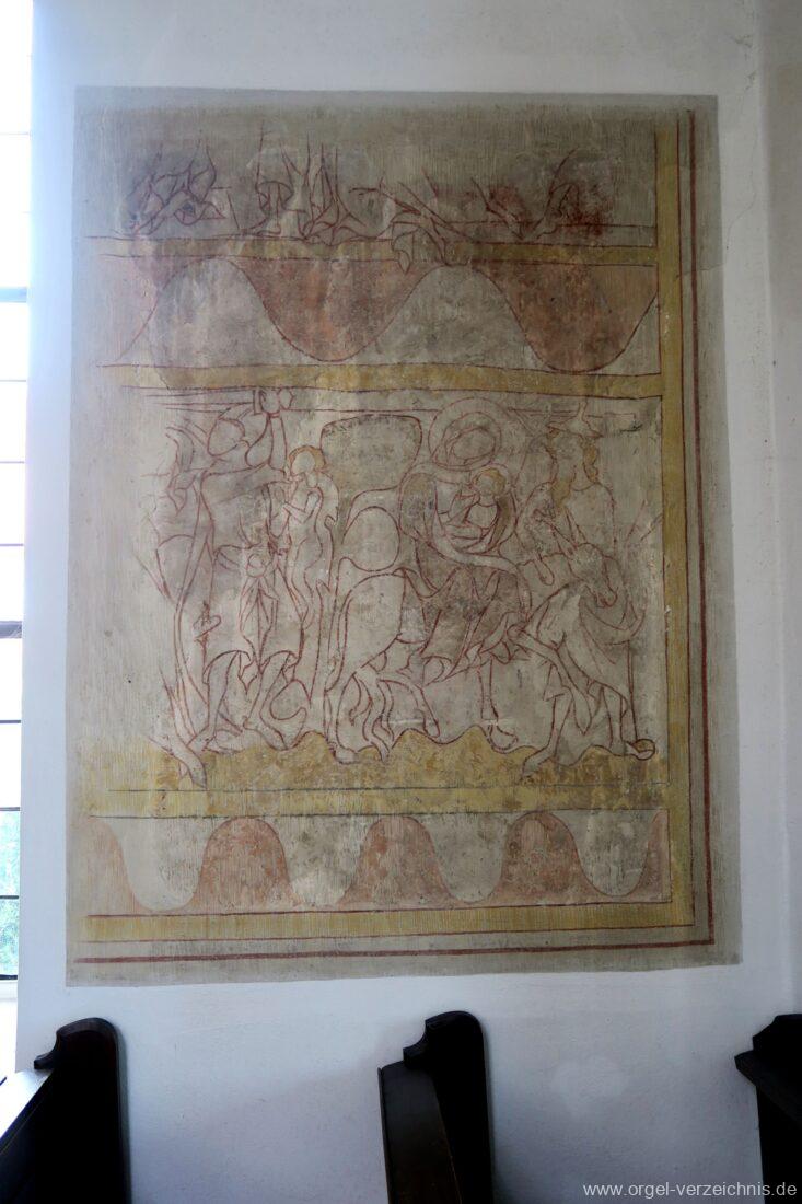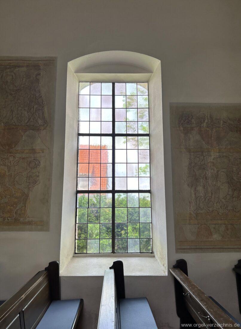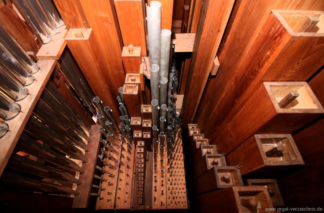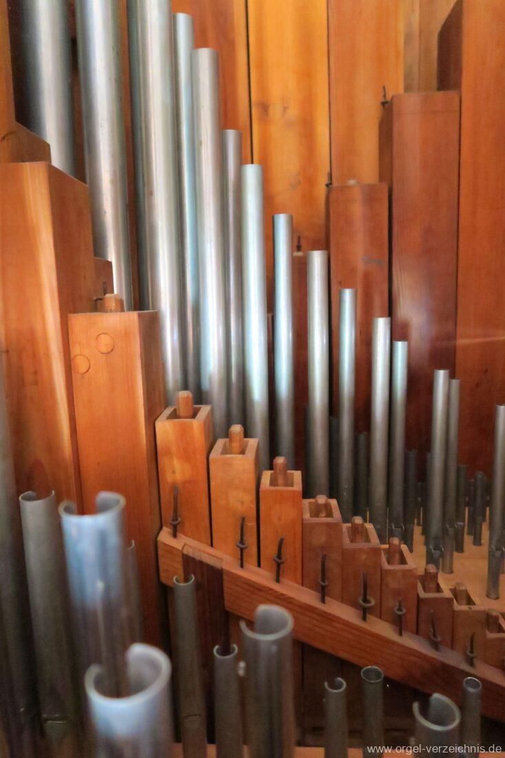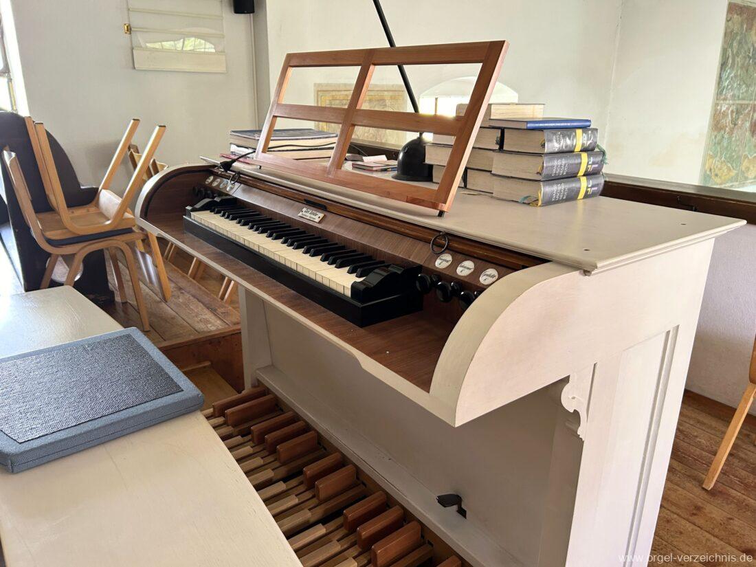Manual C – f“‘Gedekt 8′ Holz ged., ab c‘ innen labiiert Salicional 8′ C – H Holz offen, ab c° Metall Principal 4′ C – c° Prospekt, neu Waldflöte 2′ alt Mixtur 4-5 fach 1 1/3′ – rep. H/b°, ab H V