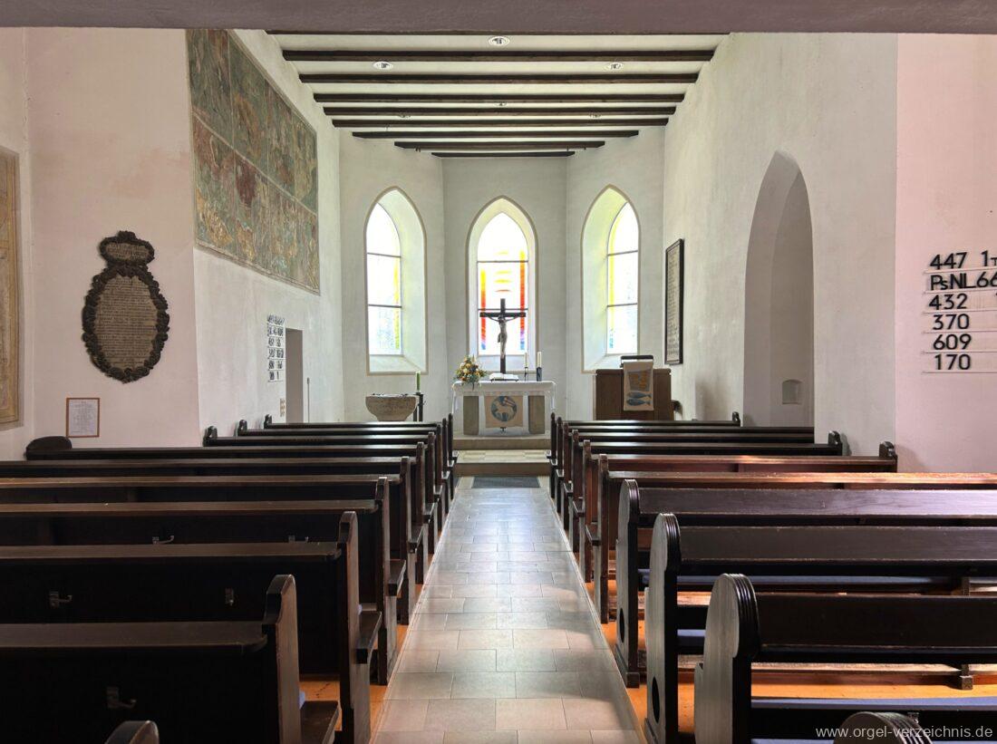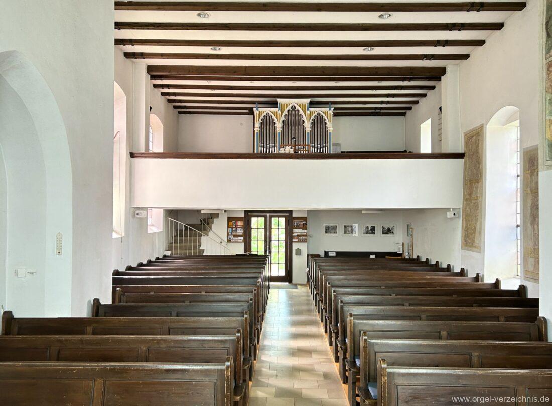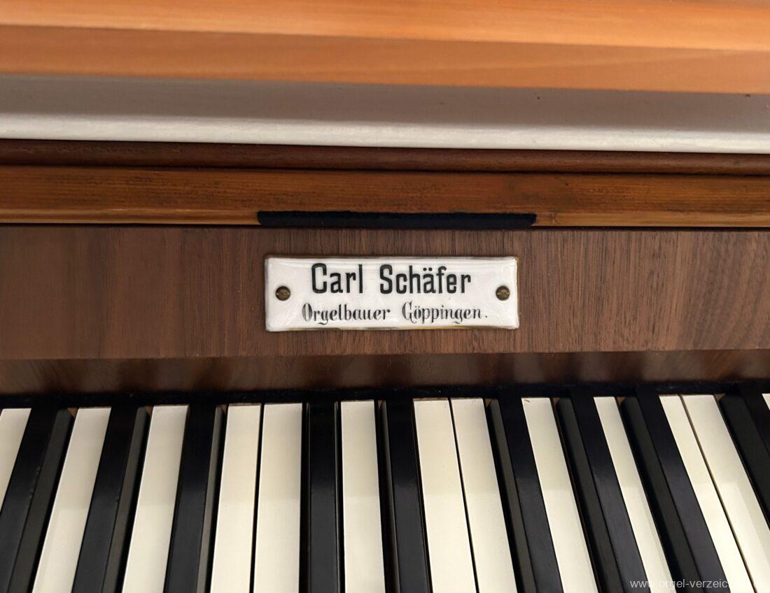 2009 Renovierung und Teilrekonstruktion der Schäfer-Orgel durch Orgelbauer Andreas Schmutz (Donnstetten) I/6. Bei der Massnahme wurde der auf dem Dachboden der Kirche gelagerte Originalspieltisch rekonstruiert und freistehend mittig vor der Orgel aufgestellt (Blickrichtung Chor), dabei wurde die Aluminiumtraktur entfernt und ersetzt. Die Balganlage mit der Treteinrichtung konnten aufbereitet und wiederhergestellt werden. Das ehemals im Prospekt stehende Register Nachthorn 4′ wurde mit einem neuen Principal 4′ ersetzt. Die Expertise oblag Prof. Volker Lutz (Stuttgart) – Einweihung Juni 2009.