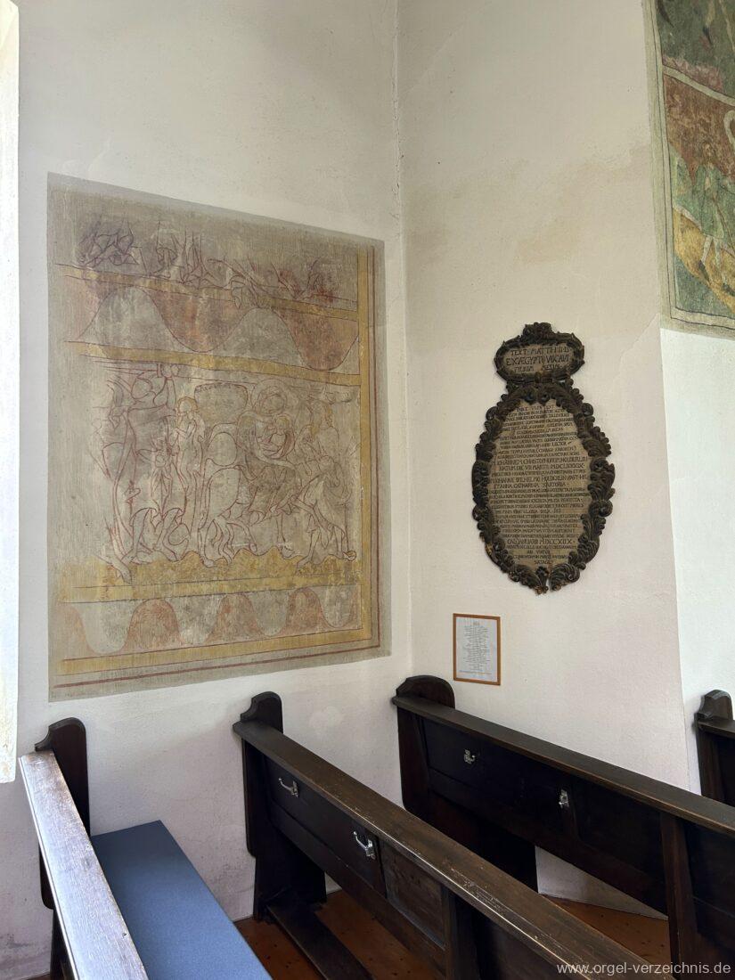 1951 Kirchenrenovierung mit stilistischer Anpassung an die ursprüngliche Ausstattung. Einige Malereien von 1454 werden überdeckt.