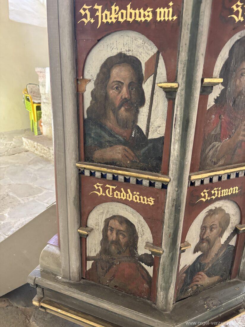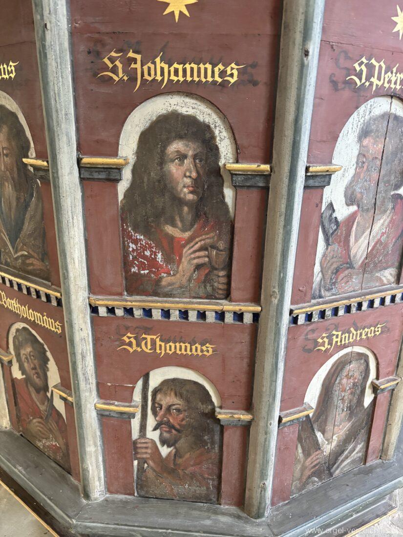 17. Jahrhundert Fertigung des Kanzelkorbes mit Brustbildern der 12 Apostel