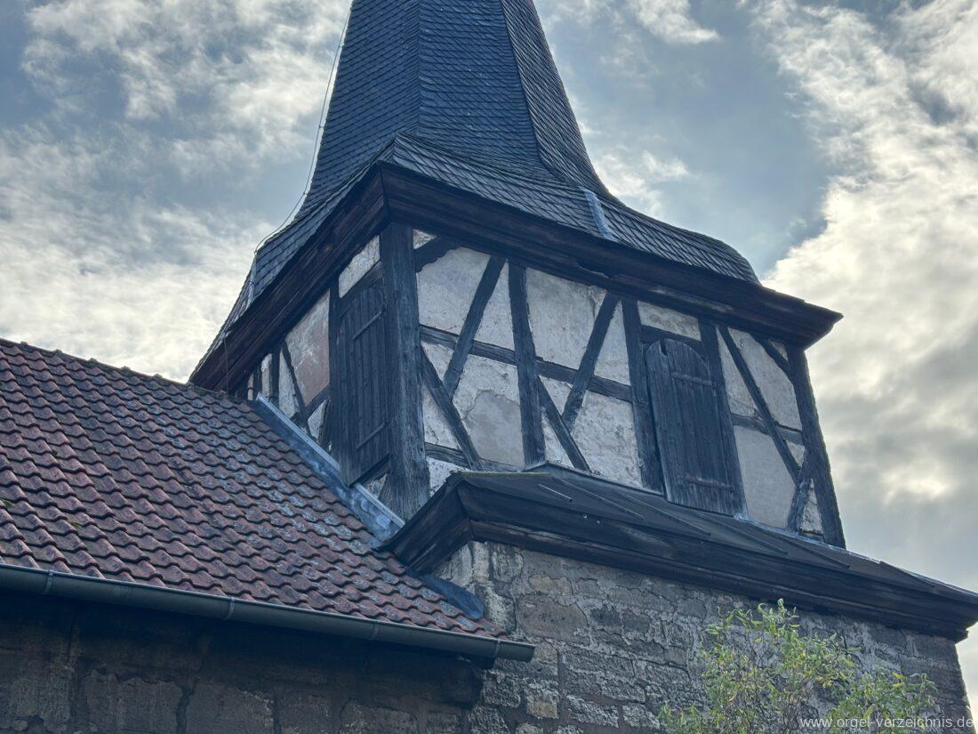 2025 Bauwerk in gutem Zustand, regelmäßige Nutzung. Der Kirchturm mit seinem Fachwerkaufsatz bedarf einer Reparatur.