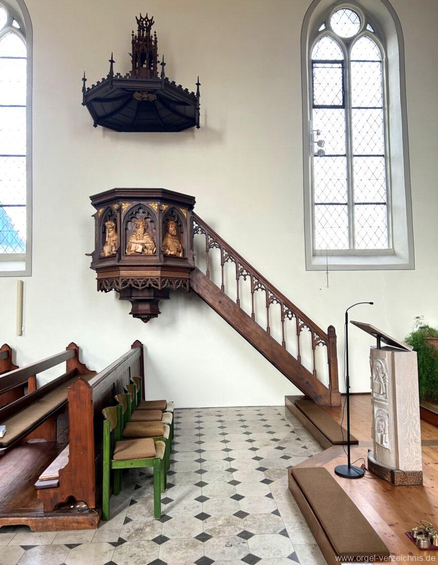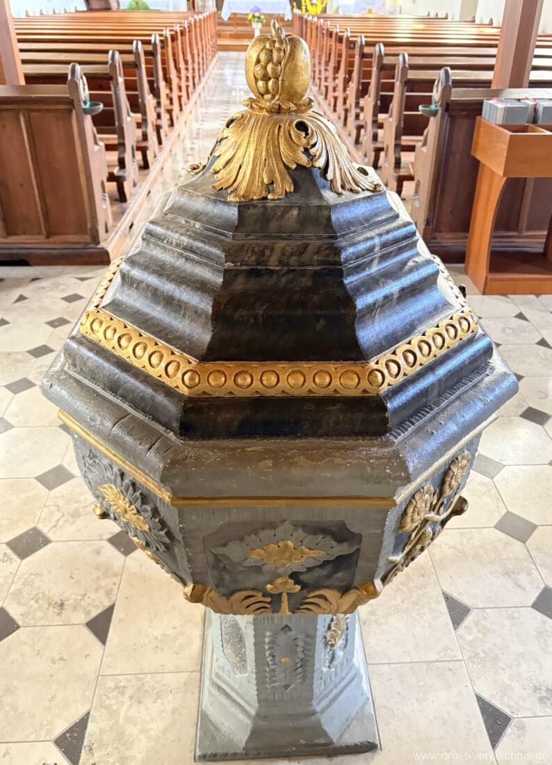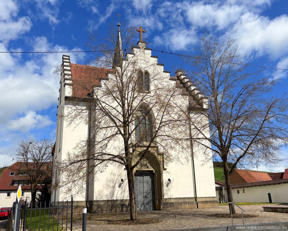 Kirchengeschichte: Angaben vor Ort, eigene Sichtung, Konzert mit Brita Schmidt-Essbach und Horst Georg Schmidt am 15. Januar 1995, zitiert von den Seiten des Landesamts für Denkmalpflege Baden-Württemberg