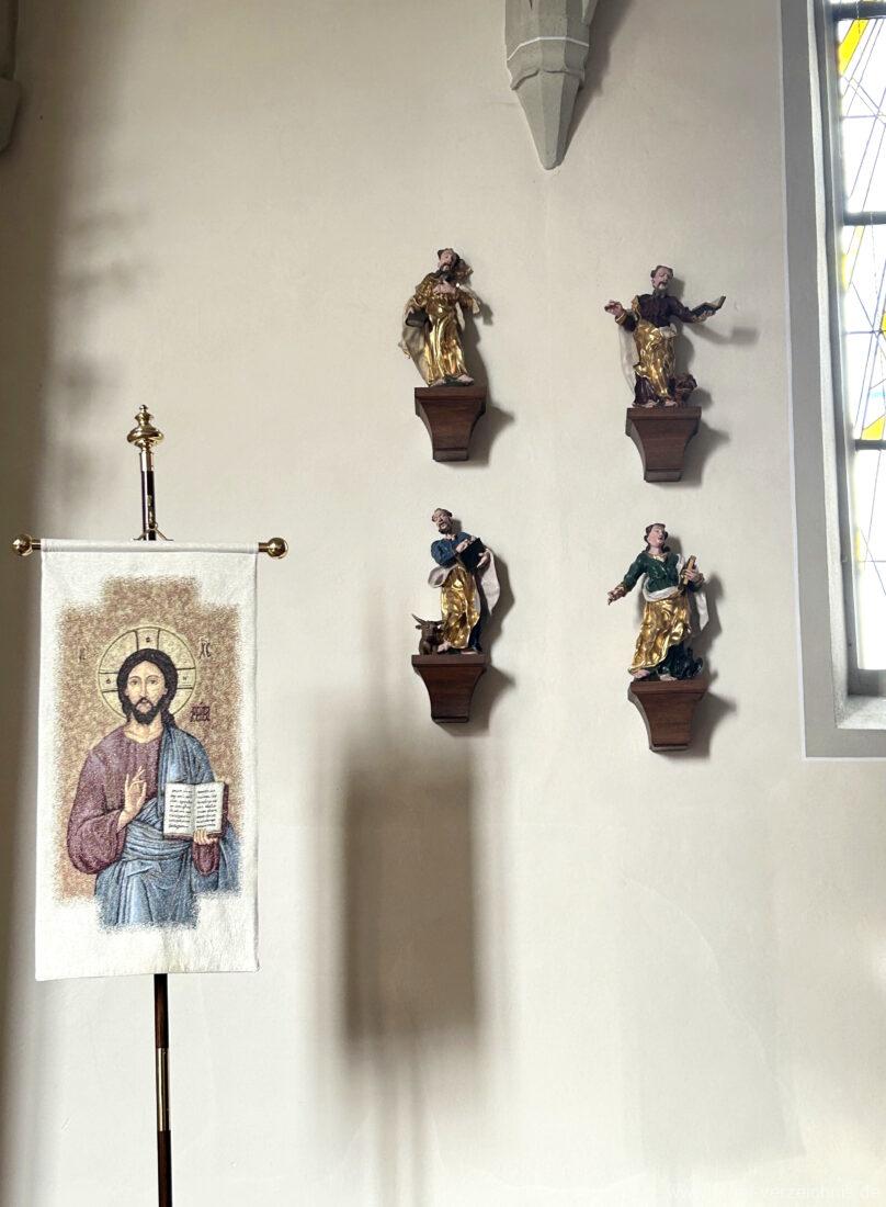 1954 nach einer Kirchenrenovierung wird ein fünfstimmiges Geläut der Giesserei F.W. Schilling (Heidelberg) aufgezogen – Nomninale e‘ + fs‘ + gs‘ + h‘ + cs“.