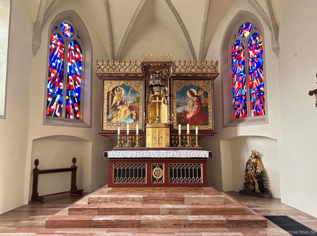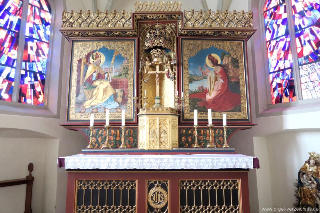 1977 Restaurierung des Werkes mit teilweiser Rückführung auf den Originalzustand (neuer Spieltisch und neue Prospektpfeifen) unter teilweiser Beibehaltung der Umdisponierung durch Orgelbau Mönch & Prachtel (Überlingen/Bodensee) II/16.