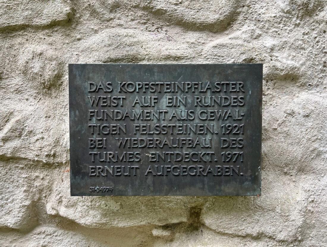 Pedal C – f‘Subbaß 16′ Holz ged. Prinzipal 8′ C – ds° Prospekt, ab e° innen Choralbaß 4′ Fagott 16′ Stiefel/Becher Metall