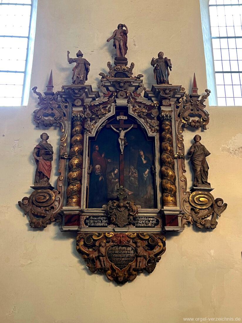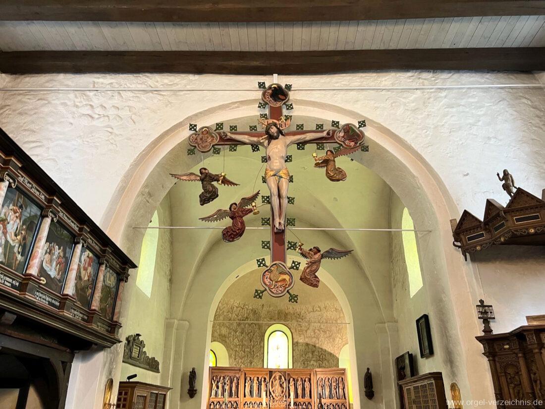 1477 Entstehung des Kruzifixes am Chorbogen. Restaurierungen des Kruzifixes erfolgten 1655, 1916 mit Rekonstruktion der ursprünglichen Bemalung und 1968 durch Maler Hurte (Eutin).