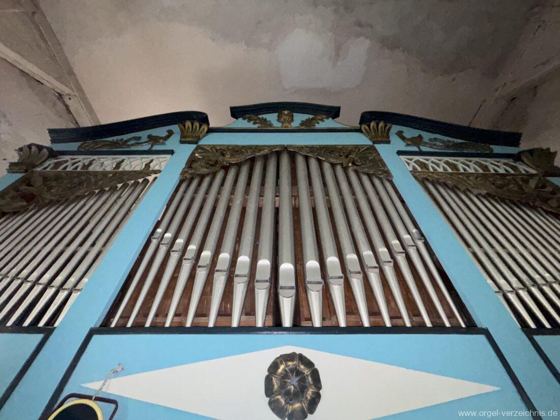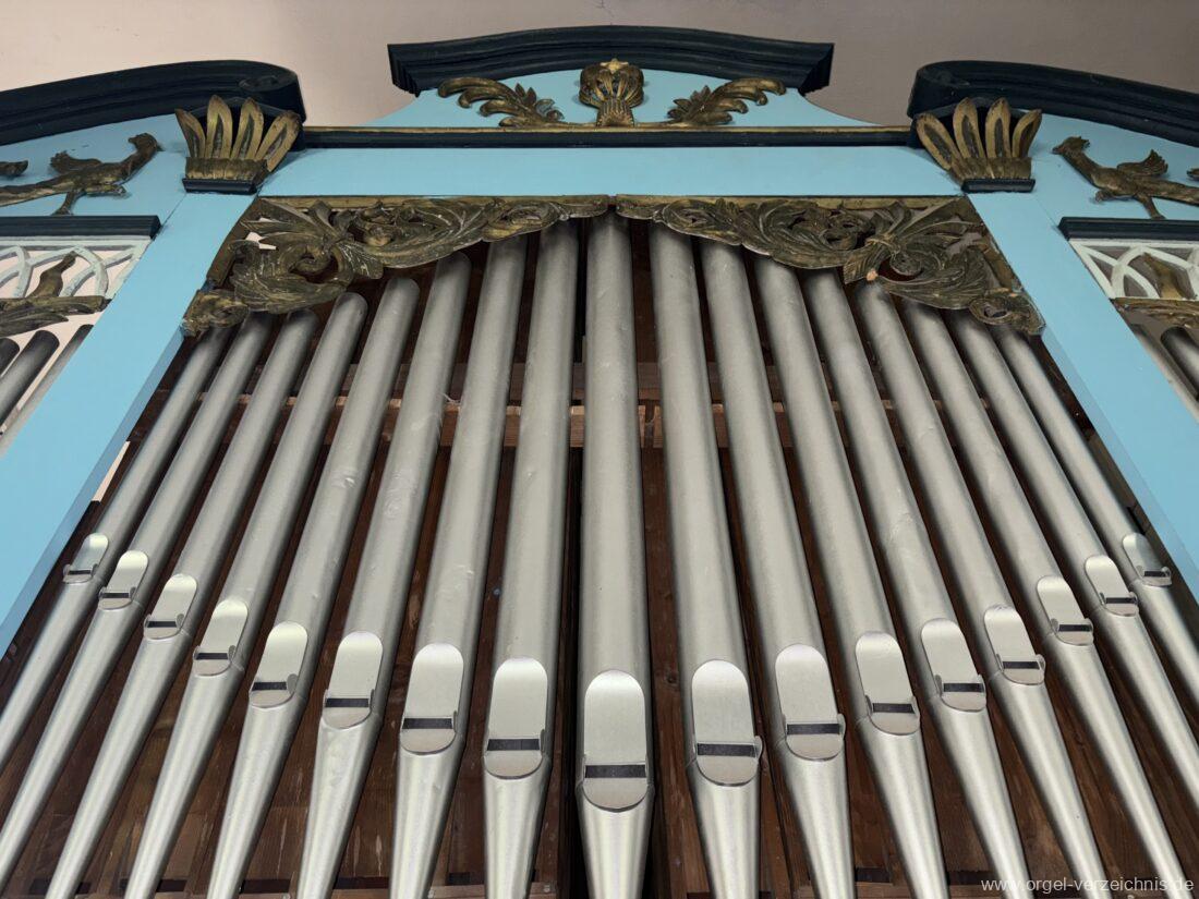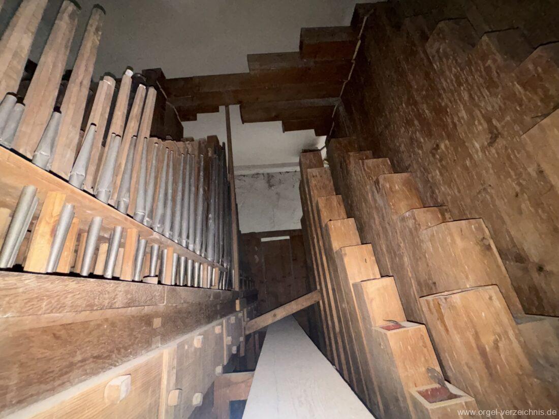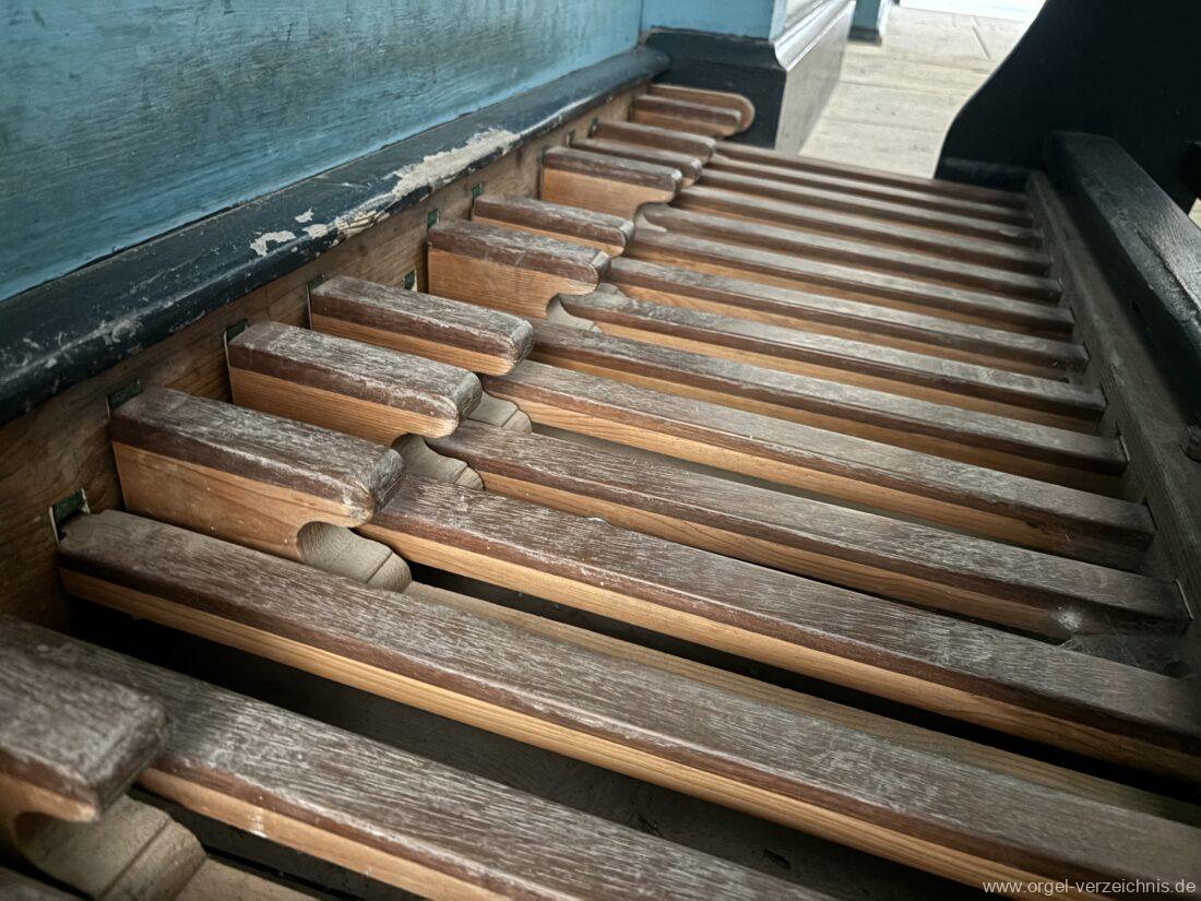 Manual I – Hauptwerk C – d“‘Bordun. 16 Fuß. Principal 8 Fuß. Hohlflöte. 8 Fuß. Gambe. 8 Fuß. Octave 4 Fuß. Octave. 2 Fuß. Mixtur 2 Fuß, 3 fach.