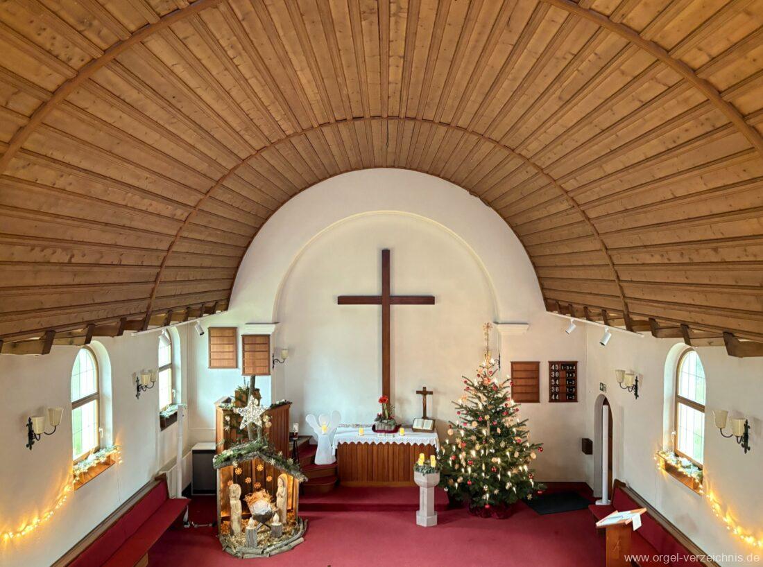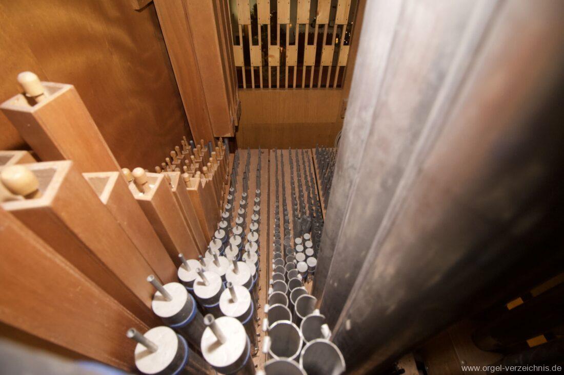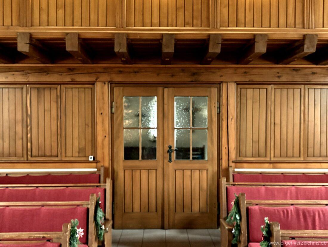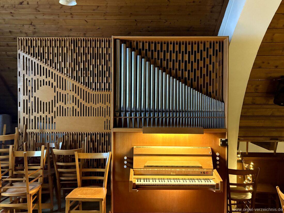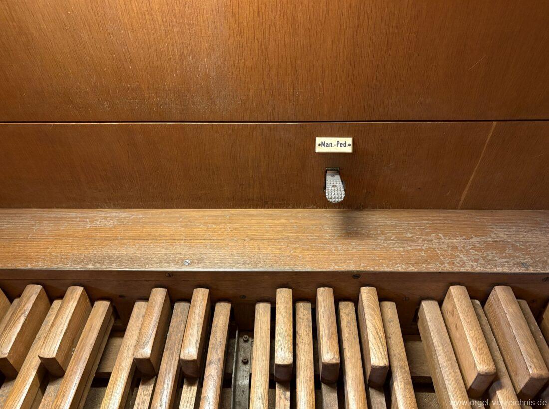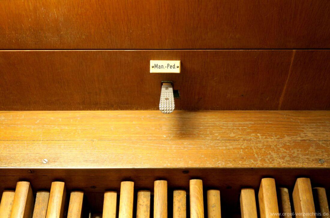 Manual C – c““Gedackt 8′ MPlex ged. Prinzipal 4′ C – F Metall, innen; FS – fs“ Prospekt; ab g“ innen Rohrflöte 4′ Naturguss, rohrged.; ab gs“ offen Oktave 2′ Metall Terzian 2 fach ab b°; b° – f‘ ged.; ab fs‘ offen, konisch Scharff 3 fach 2/3′ – rep. B/gs°/fs’/e“/d“‘
