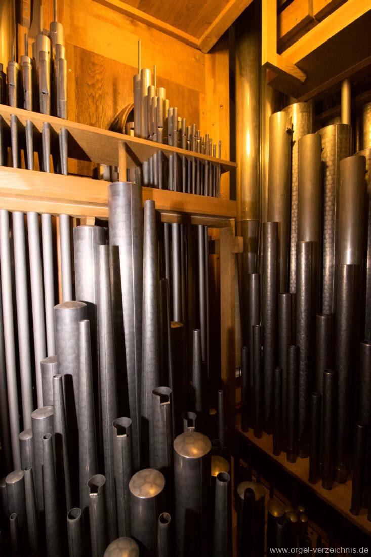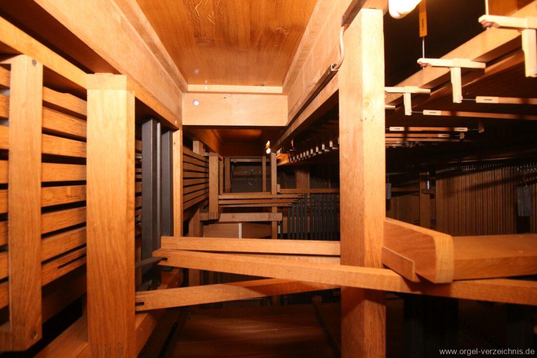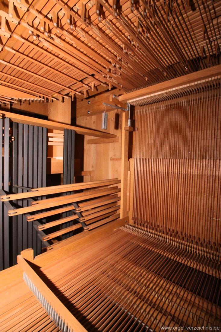 I Hauptwerk C – g“‘Bourdon 16′ C – f° Holz ged., ab fs° Metall ged. Praestant 8′ Prospekt Viola 8′ 1897, Naturguss konisch Hohlflöte 8′ C – H Holz ged., ab c° Metall ged. Octave 4′ Metall Spitzflöte 4′ Naturguss Quinte 2 2/3′ Metall Superoctave 2′ Metall Cornet 5-fach 8′ ab c‘ (teilw. 1897/1961) Mixtur 4-fach 1 1/3′ – rep. c°/c’/f‘ Trompete 8′ Stiefel Holz/Becher Naturguss