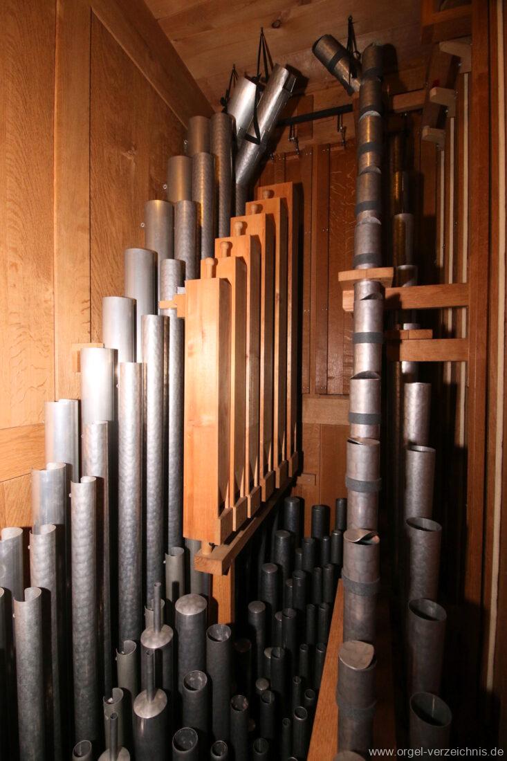 I Hauptwerk C – g“‘Bourdon 16′ alt Principal 8′ alt teilw. Prospekt Rohrflöte 8′ C – H Holz Gemshorn 8′ (aus II. alt, C – f° Holz) Octav 4′ alt Hohlflöte 4′ teilw. alt, tiefe Octave Holz Octav 2′ alt (Auszug Mixtur) Cornett 5 fach 8′ ab fs° teilw. alt Mixtur 4-6 fach 2′