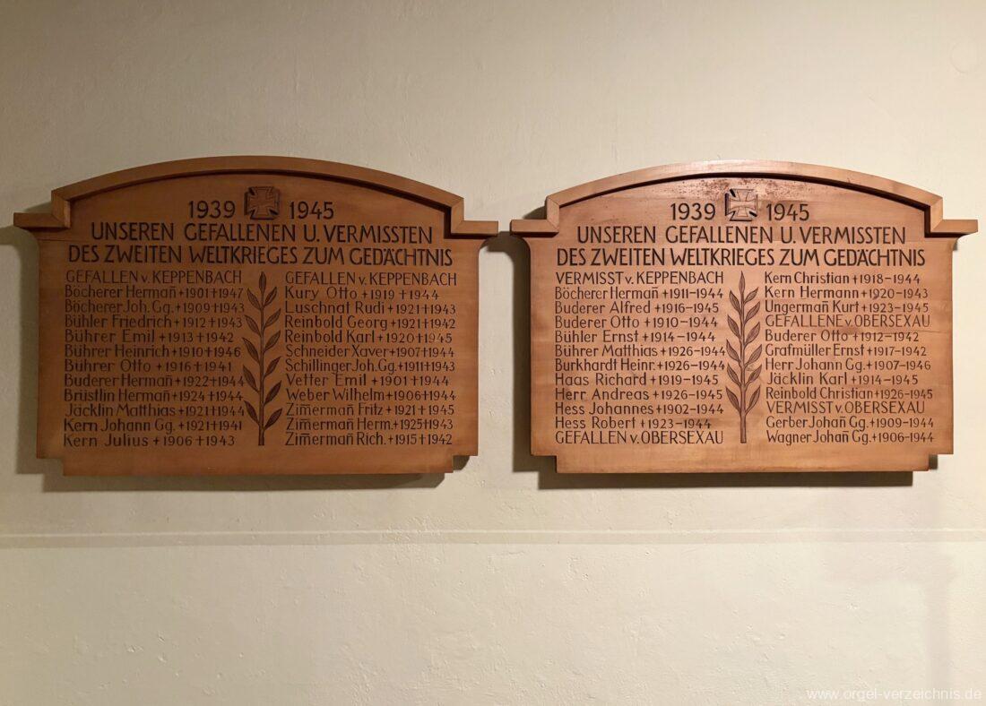 1777/78 Aufstellung des Werkes in Keppenbach und Erweiterung um eine gedeckte 4′ Flöte und ein eigenständiges Pedal mit zwei Registern durch Orgelbauer Ambrosius Ronzoni (Burkheim) I/10.