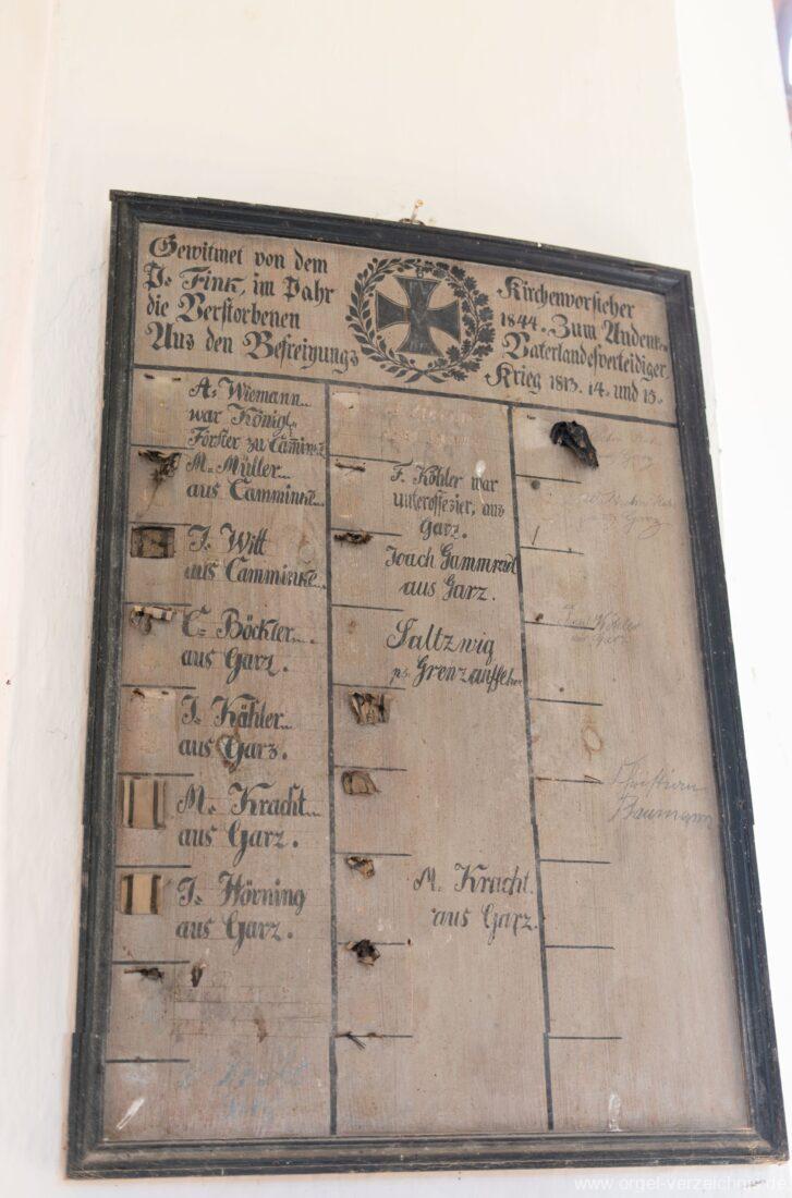 Orgel: Garz – Dorfkirche (ehem. St. Maria Magdalena)
