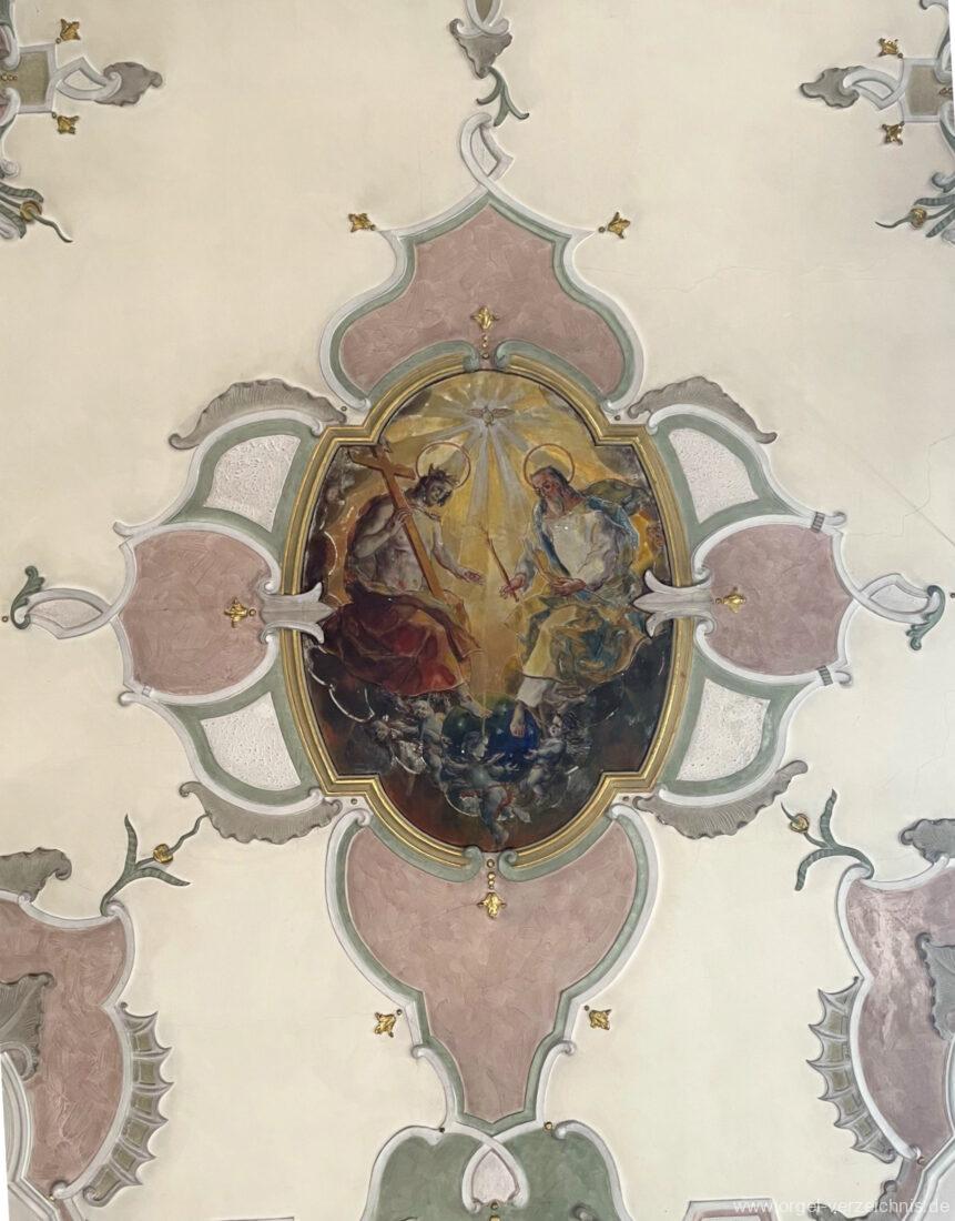 1964 umfangreiche Kirchenrenovierung mit Wiederherstellung der Stukkaturen und Ornamente. Die Fenster werden erneuert durch die Glaswerkstatt Dierig (Überlingen).