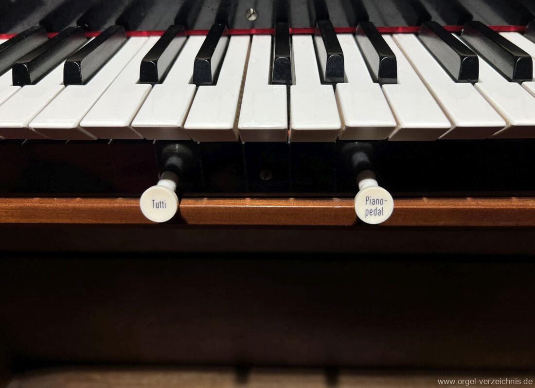 Druckknöpfe unter erstem Manual: Tutti, Pianopedal