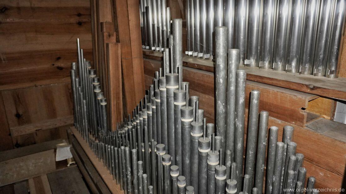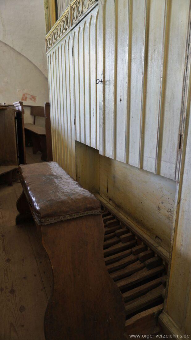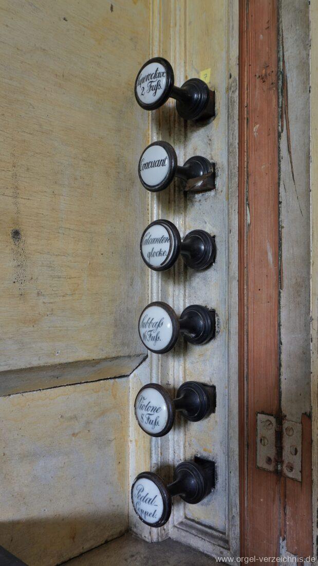Linke SeitePrincipal 8 Fuss Salicional 8 Fuss. Octava 4 Fuss. Rohrflöte 8 Fuss. Flauto dolce 4 Fuss. Quintflöte 2 2/3′ Fuss.