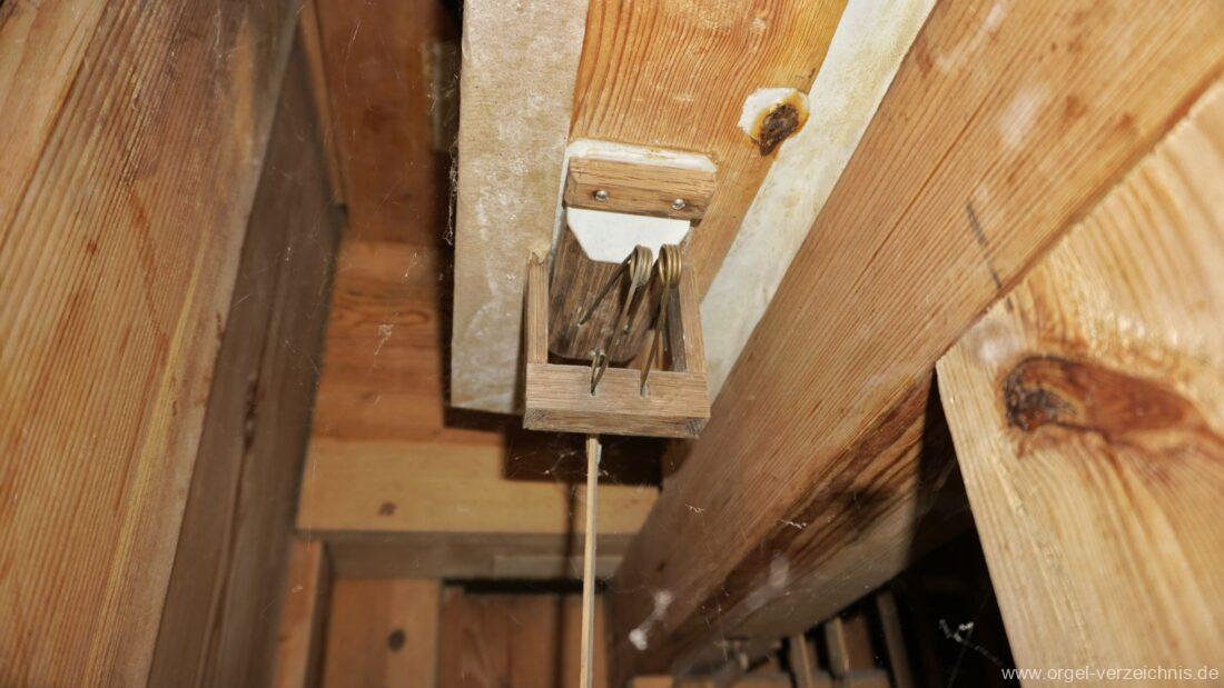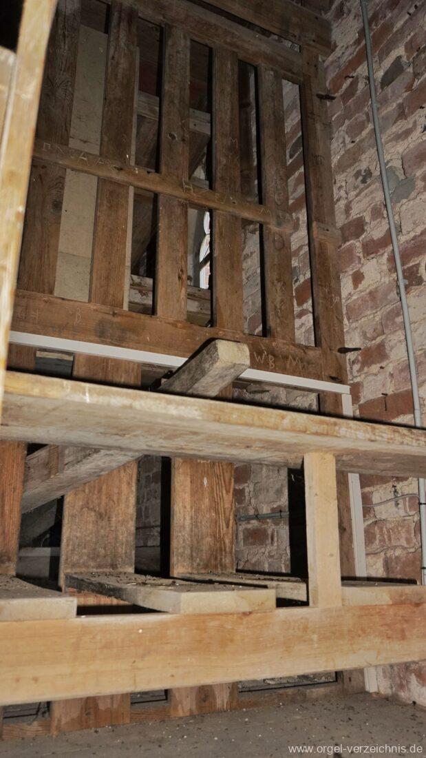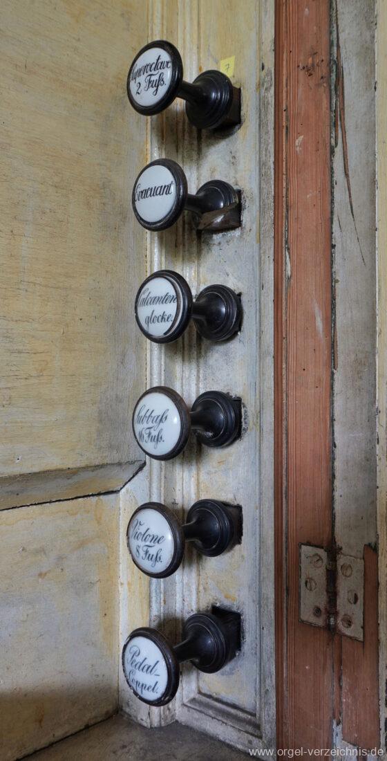Manual C – f“‘Principal 8 Fuss Rohrflöte 8 Fuss. Salicional 8 Fuss. Octava 4 Fuss. Flauto dolce 4 Fuss. Quinte 2 2/3′ (bezeichnet als Rauschquinte 2 f) Octava 2 Fuss.