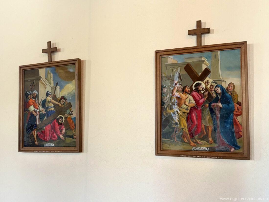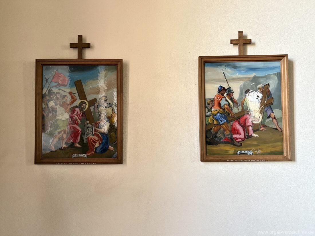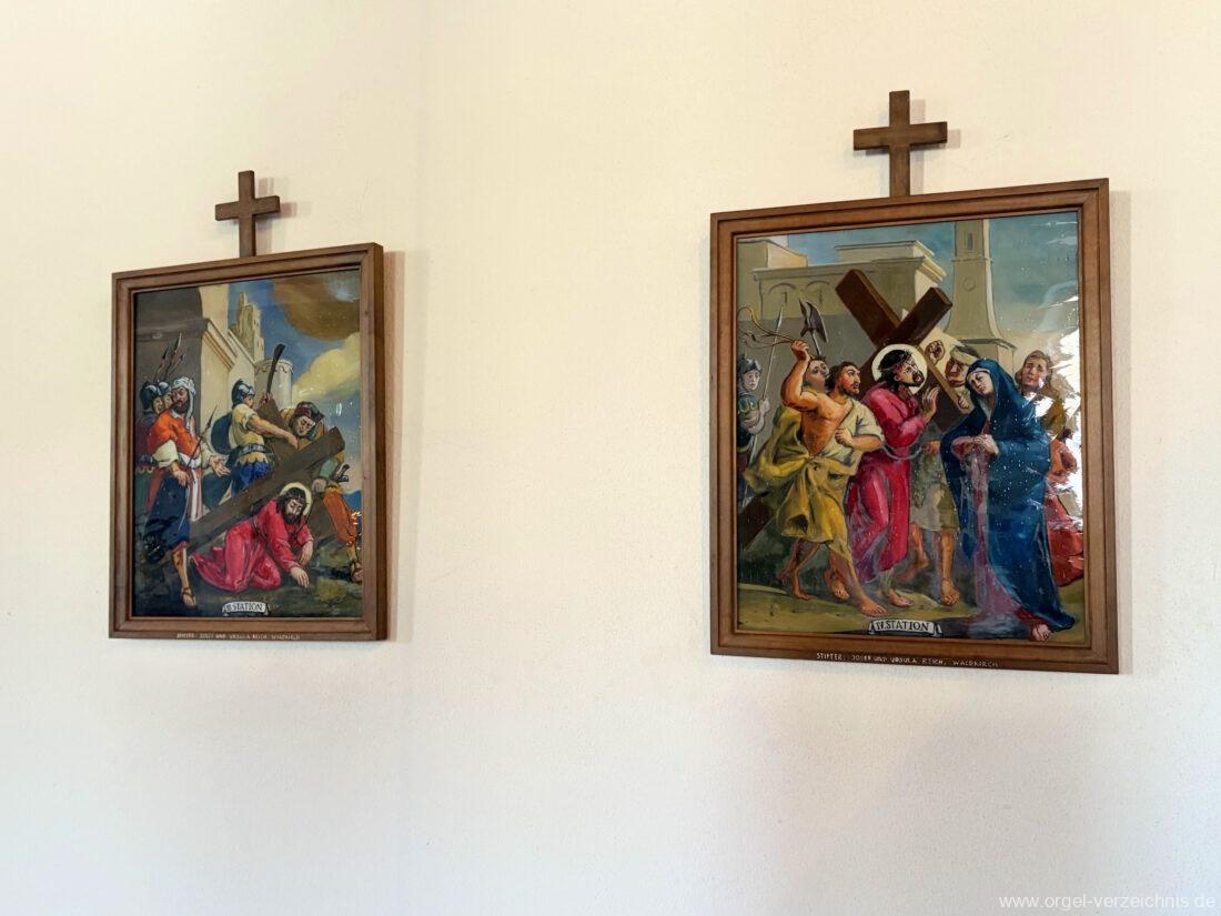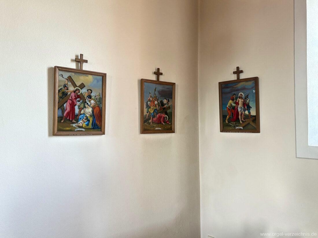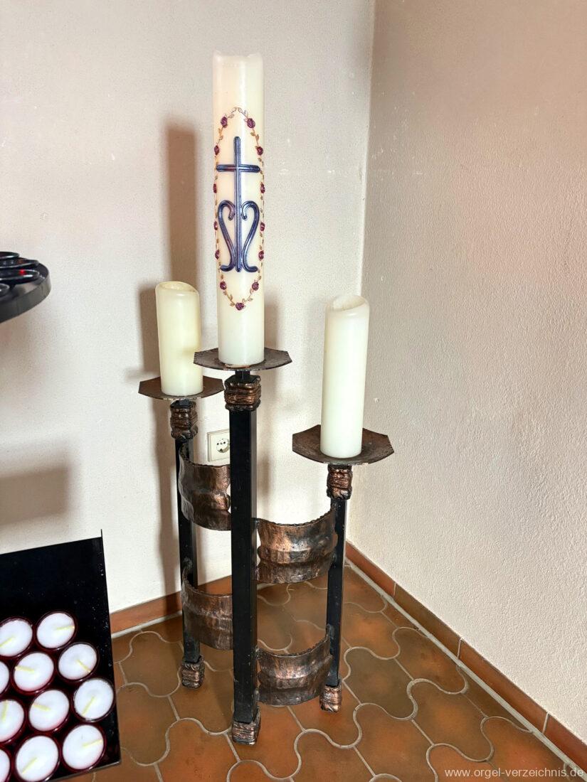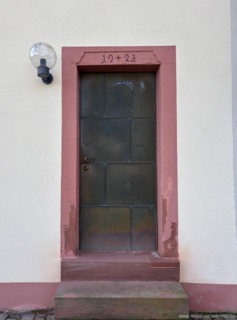 1980 mechanisches Schleifladenpositiv mit klappbaren Gehäuseflügeltüren (welche auch den Spieltisch mit einschliessen), erbaut von Orgelbauer Heinz Boschert (Emmendingen-Windenreute) I/5 mit angehängtem Pedal. Das Gehäuse ist bis auf die beiden Figuren von Boschert im historisch angelehnten Stil neu erstellt worden.