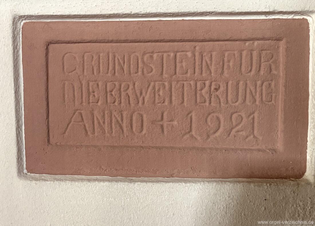 1921 Grundsteinlegung zum Bau der neuen Kirche am 10. Juli 1921. Bau der Kirche mit Beibehaltung der Sakristei, des Altares und des Chorraumes nach Plänen von Raimund Jeblinger (Freiburg) – Bauleitung J. Luber (Freiburg). Einweihung am 5. Dezember 1921.