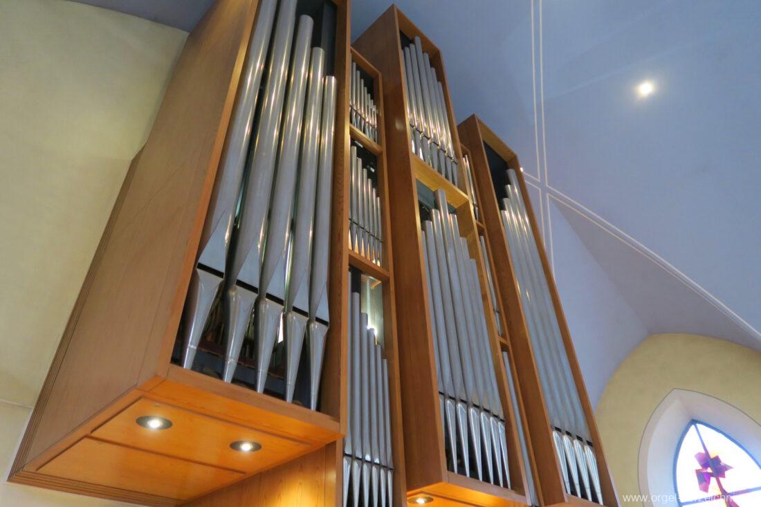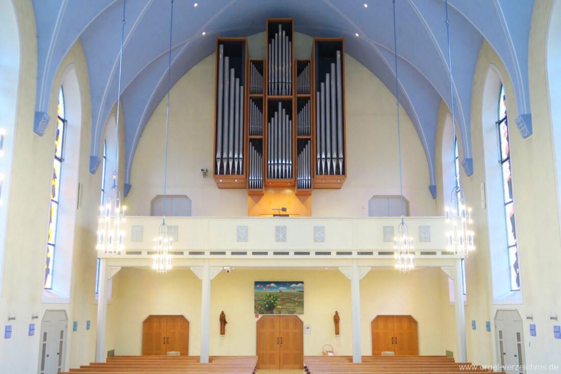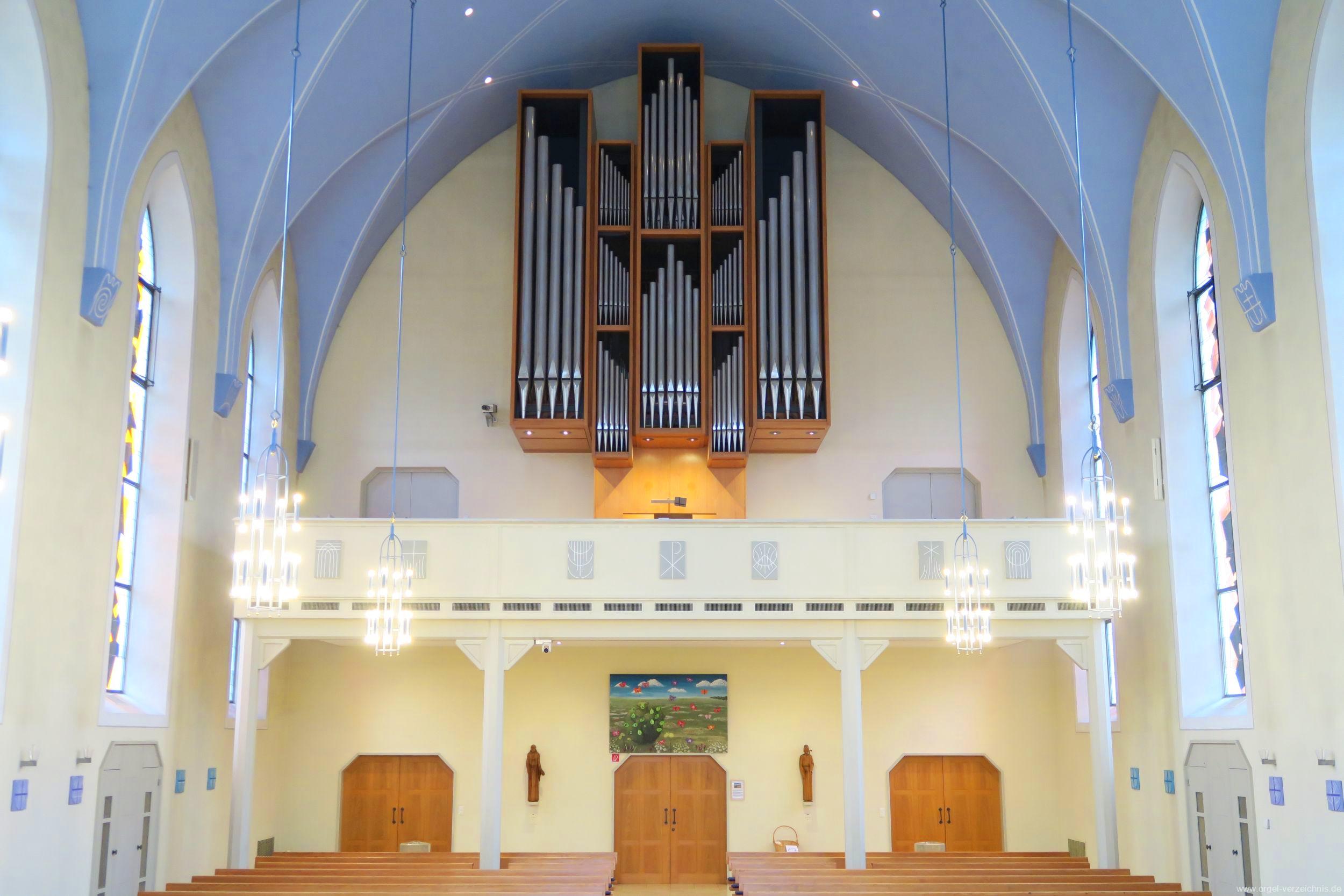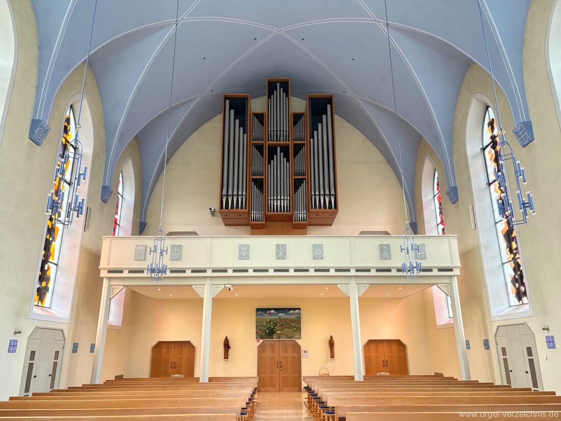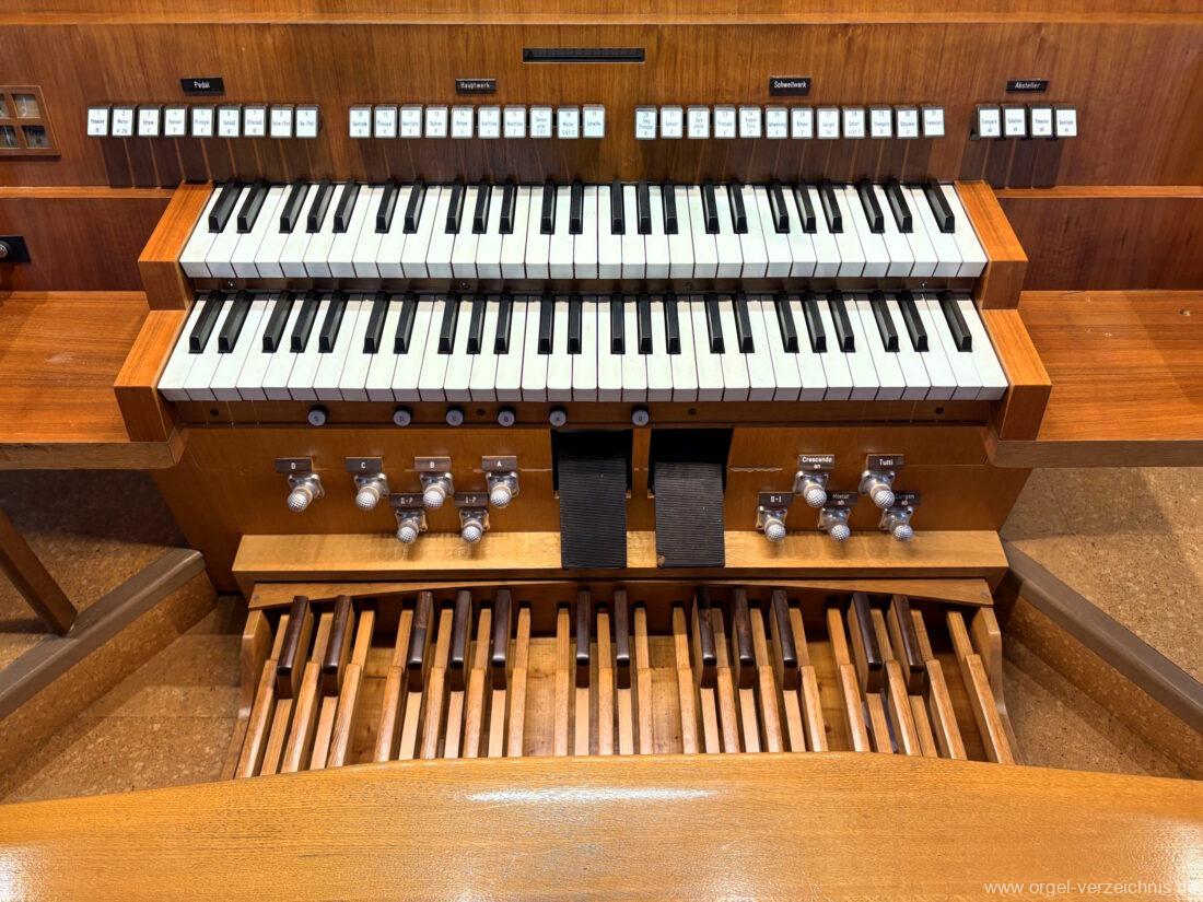 1973 Schleifladenorgel mit mittig angebautem Spieltisch, mechanischer Spiel- und elektrischer Registertraktur, erbaut von Orgelbau Xaver Mönch Söhne (Überlingen/Bodensee) II/27. Die Expertise oblag Siegfried Hildenbrand (Domorganist St. Gallen), welcher das Werk in einem Festgottesdienst und Konzert einweihte.