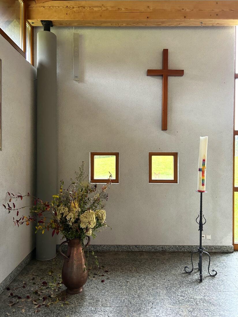 Die freundliche und helle Kapelle in Ried wird sowohl für Gottesdienste der evangelischen Gemeinde des kleinen Wiesentals sowie als Aussegnungshalle bzw. Friedhofskapelle genutzt.
