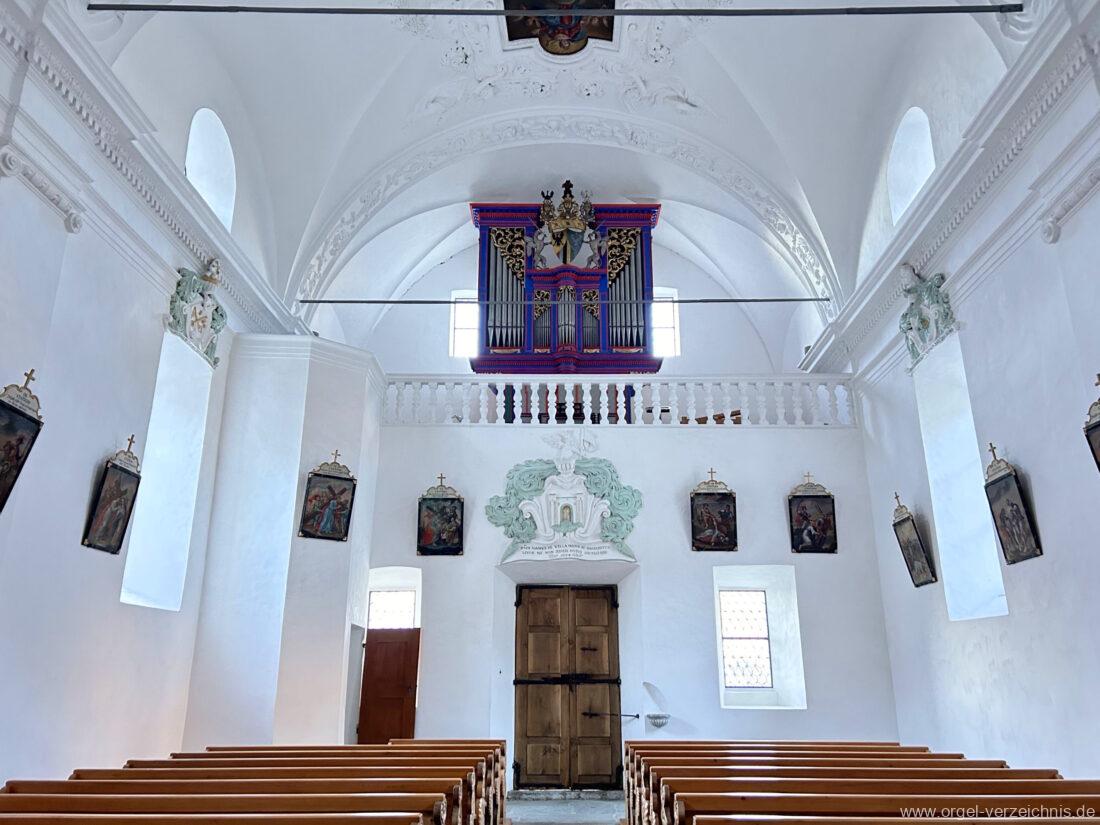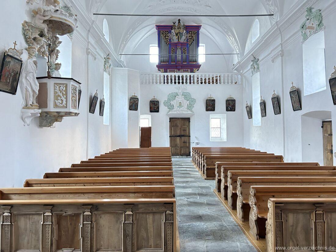 1722 werden Arbeiten an einer Orgel erwähnt. Rudolf Bruhin geht davon aus, dass die Orgel im Jahr 1722 erbaut wurde und schreibt das Werk Matthäus Carlen (Reckingen) zu I/8.