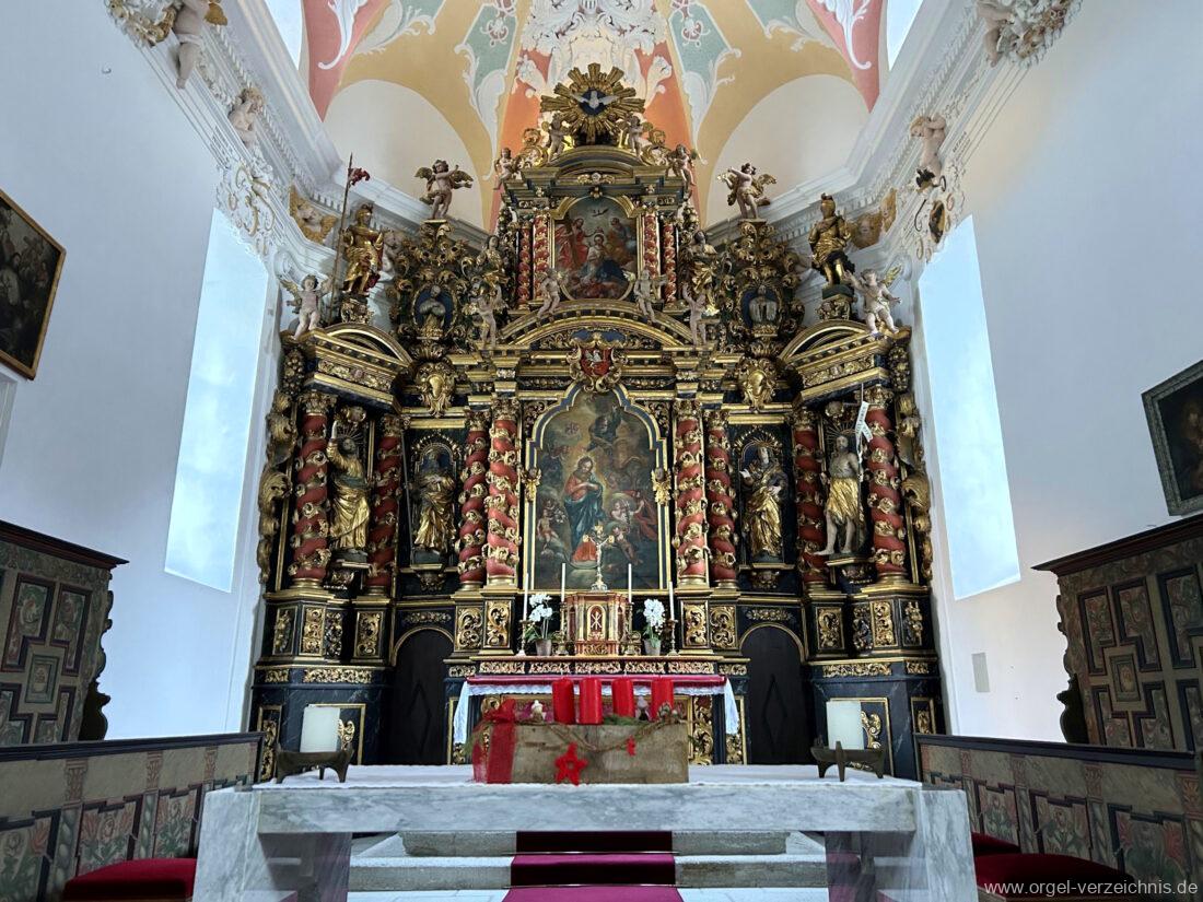 1694 Bau des Hochaltares durch Bildhauer Johann Ritter, Fertigstellung 1705 durch Johann Sigristen (Glis).