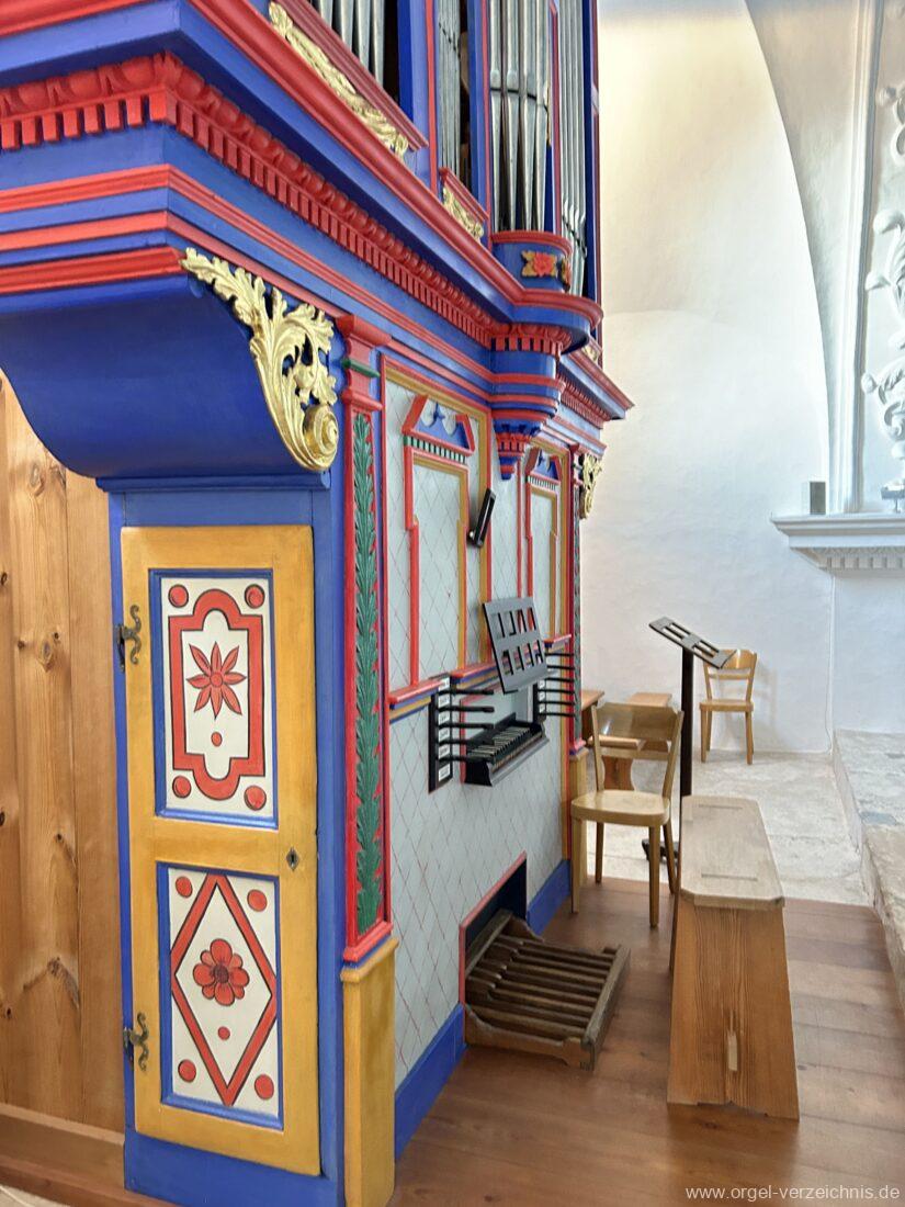 Linke SeiteOctav 4′ Suavial 8′ Copel 8′ Cornett III 3′ Mixturbass 5 1/3′