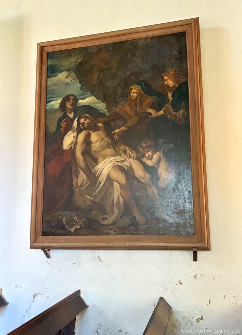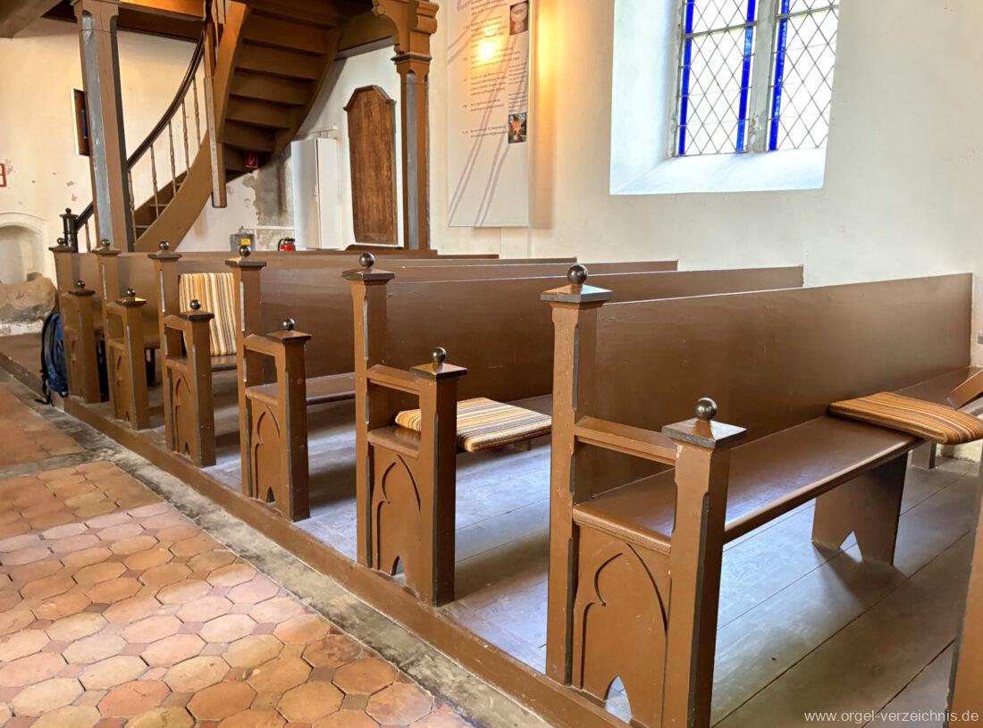 1860 Beschädigung der Kirche durch Brand. Anschliessend Behebung der Schäden, Einzug einer Empore und Entstehung des Gestühls.