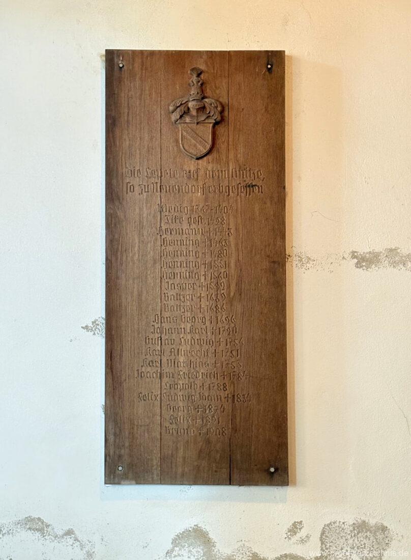 1986 Restaurierung des hölzernen Grabmals der Familie Lepel, welche über viele Generationen Patrone der Kirche sind.