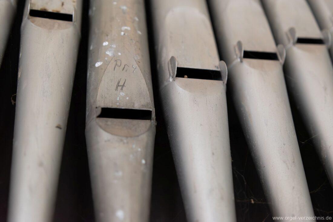 Anm. 1 – Principal 8′ im Prospekt c° – fs° Mittelfeld Zink, g° – c‘ Aussenfeld rechts Zink