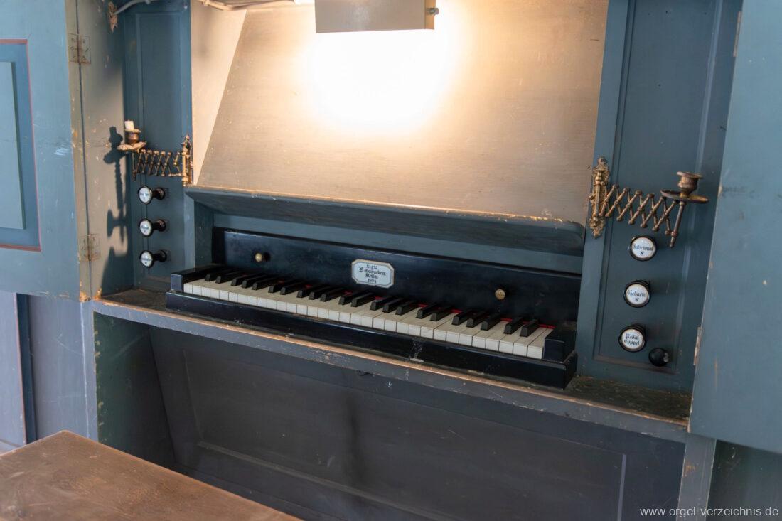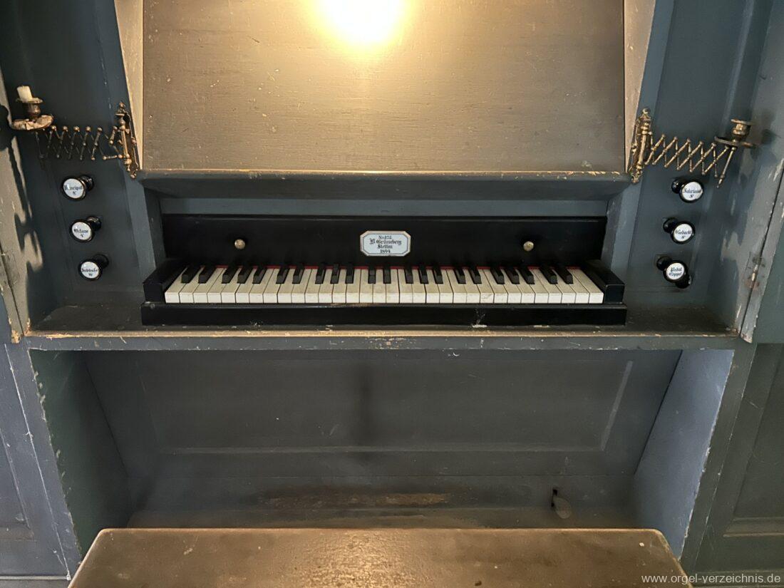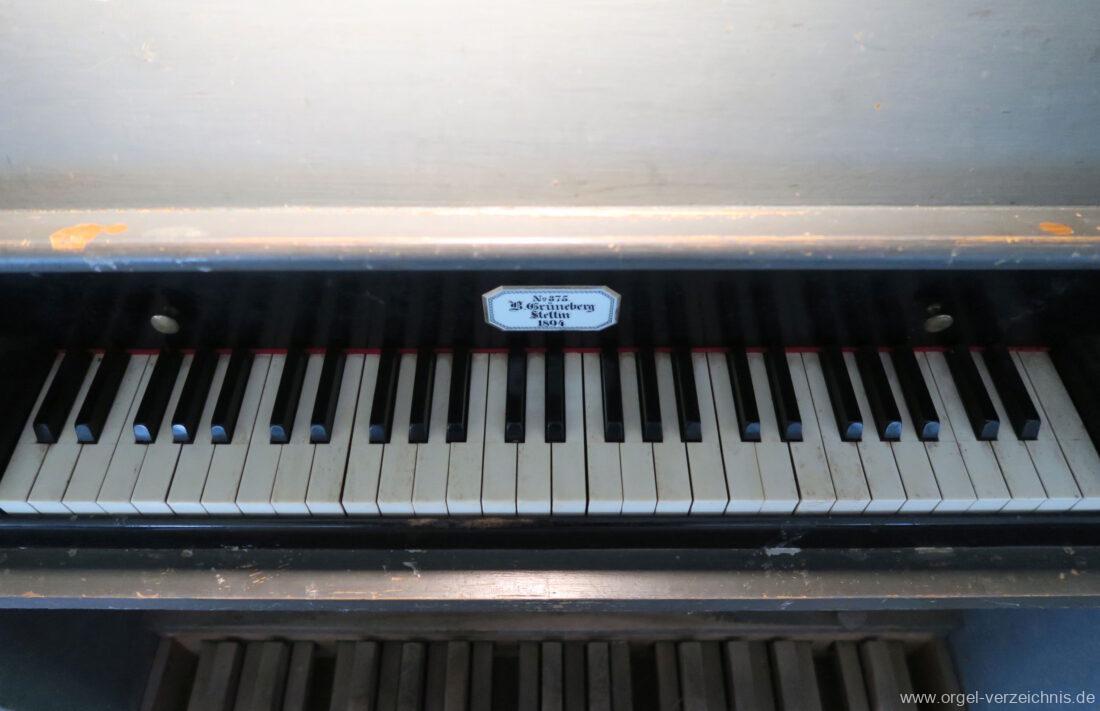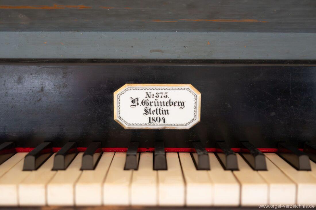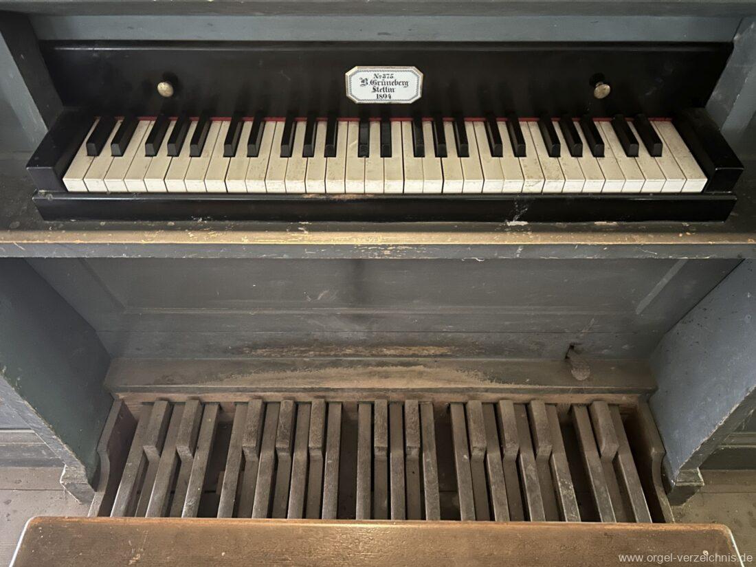 1894 mechanische Kegelladenorgel mit mittig fest eingebautem Spielschrank, erbaut als Opus 375 von Orgelbau Barnim Grüneberg (Stettin) I/5.