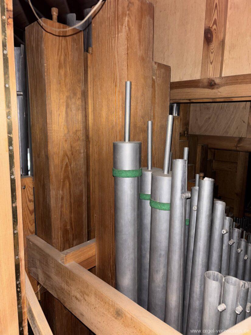 Pedal C – d‘Subbaß 16′ (Holz gedeckt, liegend neben der Orgel) |