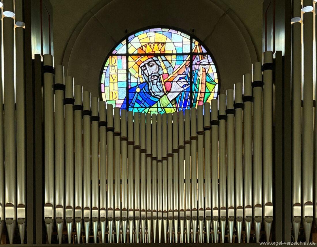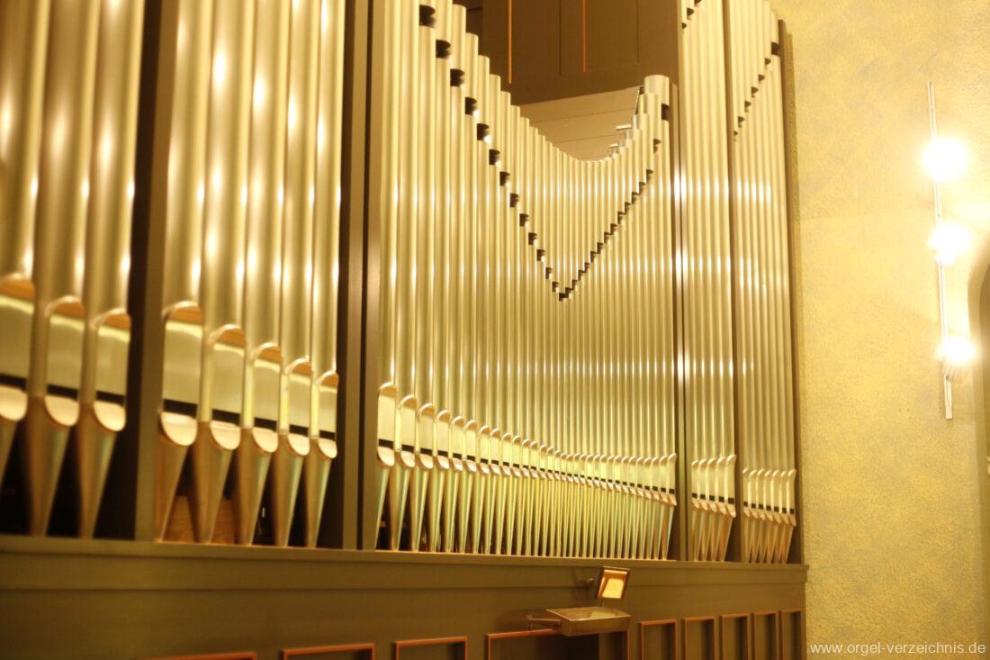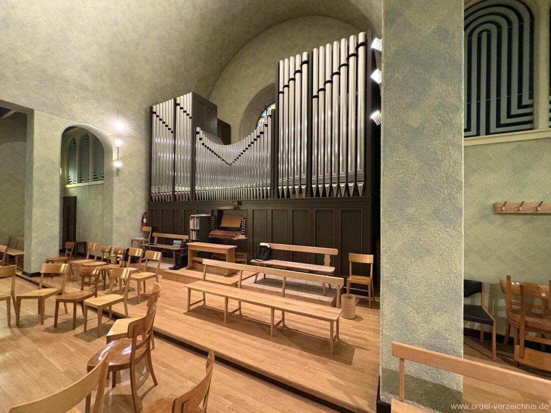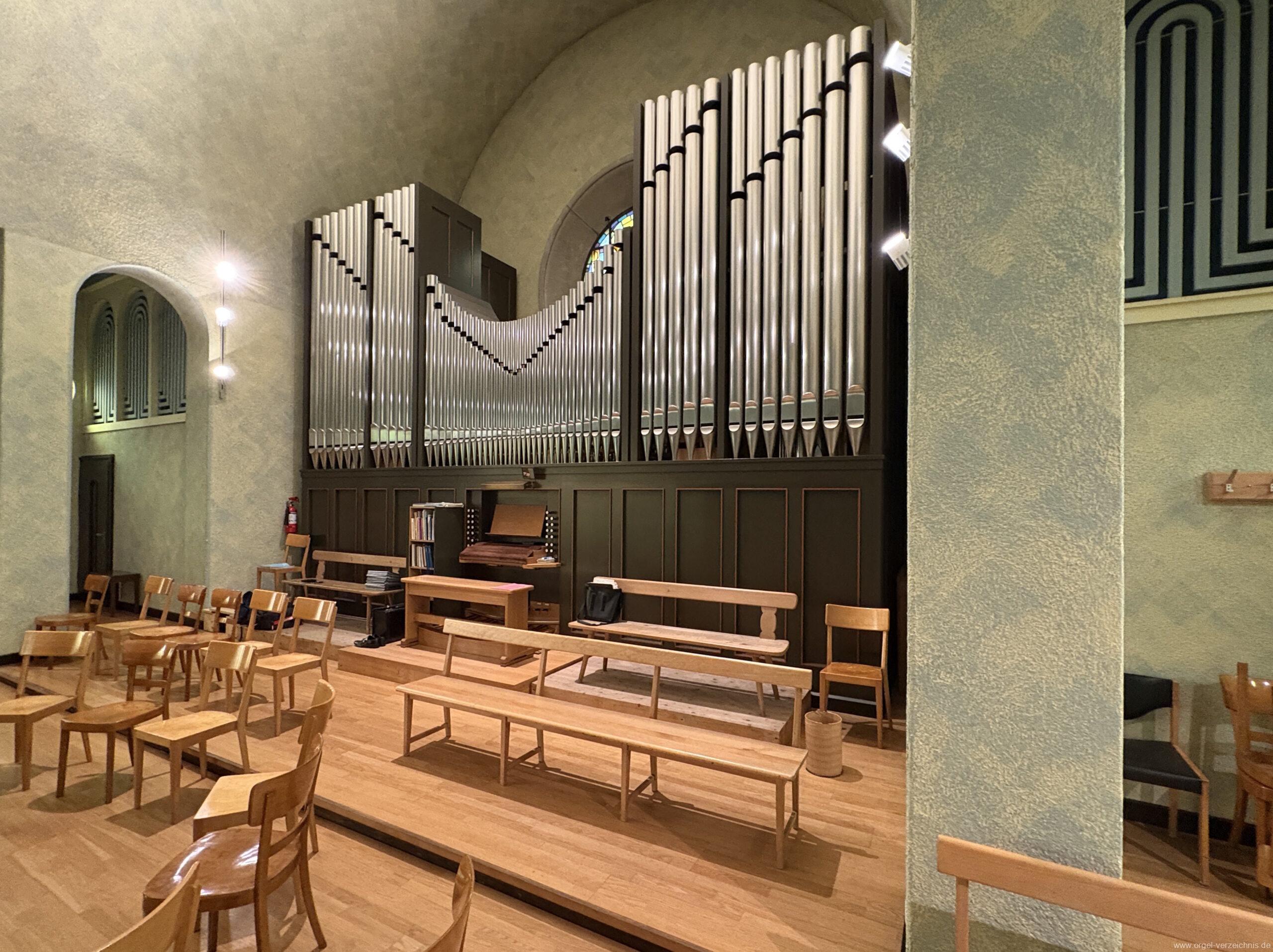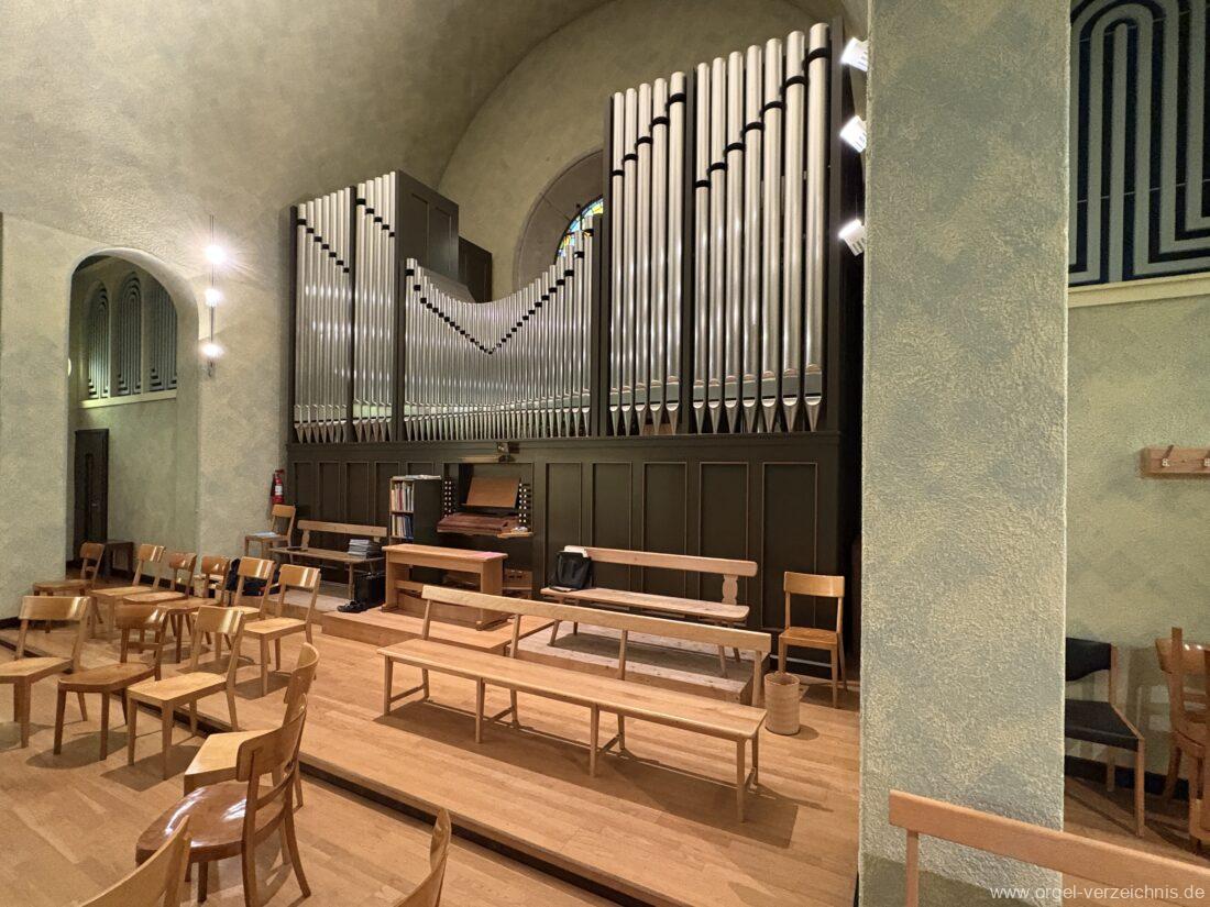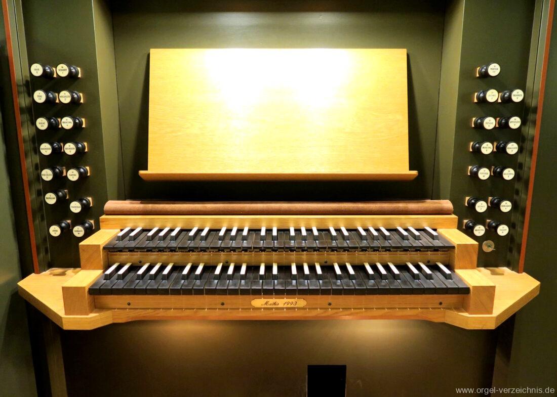 1993 mechanische Schleifladenorgel mit mittig fest eingebautem Spieltisch, erbaut in von Orgelbau Mathis (Näfels) II/26 – Einweihung 24. April 1994. Die labialen 16′ Register wurden zum Teil von der 1935 erbauten Vorgängerorgel wiederverwendet. Die Zink 8′ wurde zu späterer Zeit eingebaut. Das Werk weist 1’561 Pfeifen auf, wovon 138 aus Holz sind.