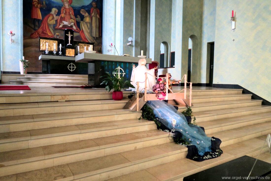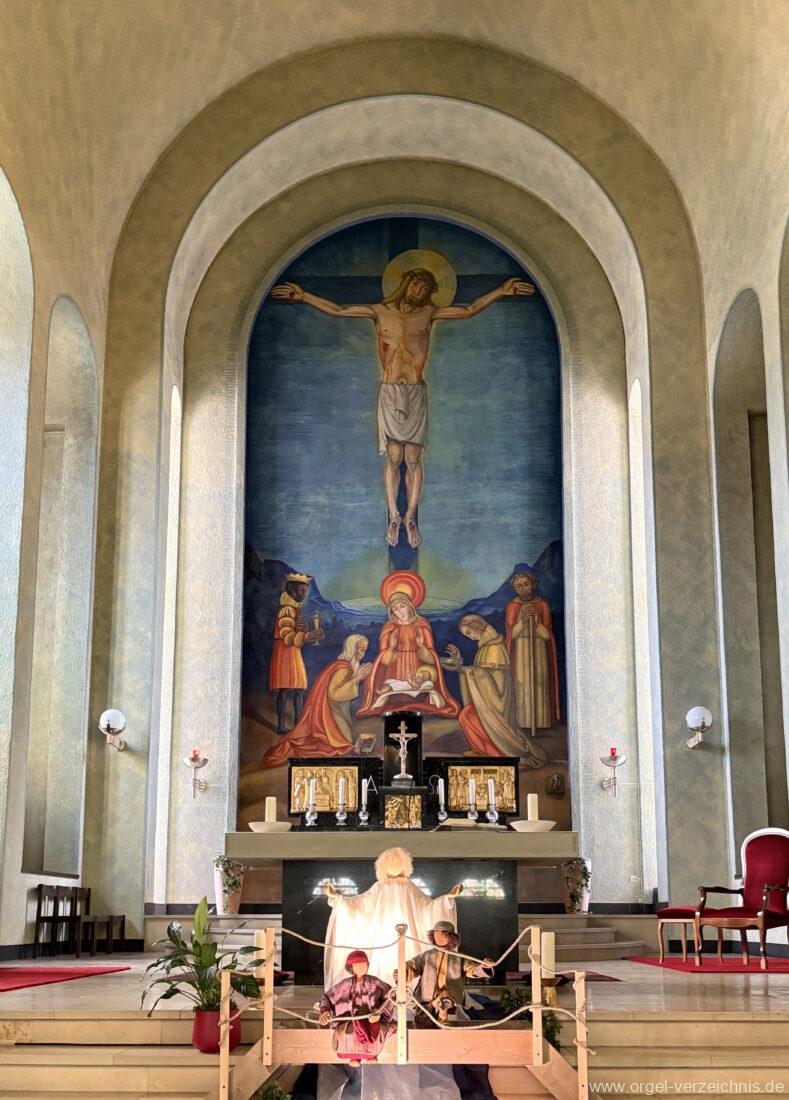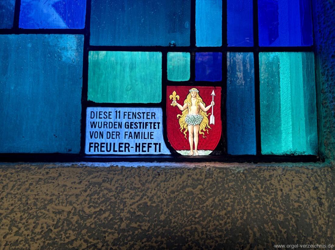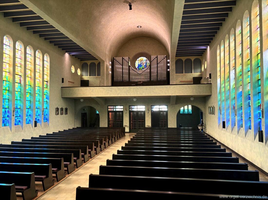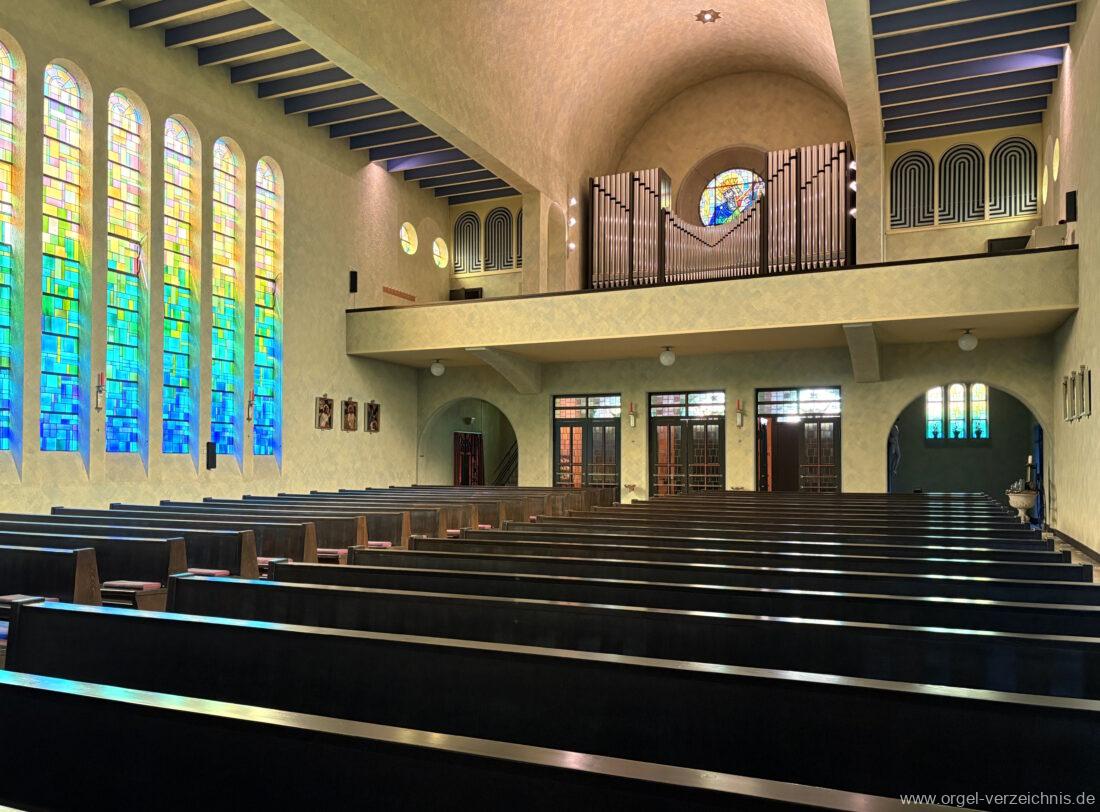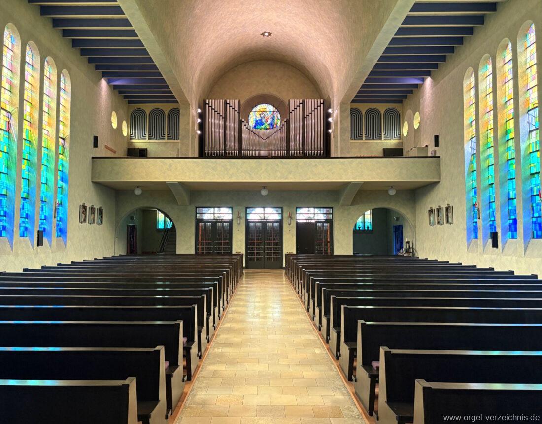 1993 mechanische Schleifladenorgel mit mittig fest eingebautem Spieltisch, erbaut in von Orgelbau Mathis (Näfels) II/26 – Einweihung 24. April 1994. Die labialen 16′ Register wurden zum Teil von der 1935 erbauten Vorgängerorgel wiederverwendet. Die Zink 8′ wurde zu späterer Zeit eingebaut. Das Werk weist 1’561 Pfeifen auf, wovon 138 aus Holz sind.