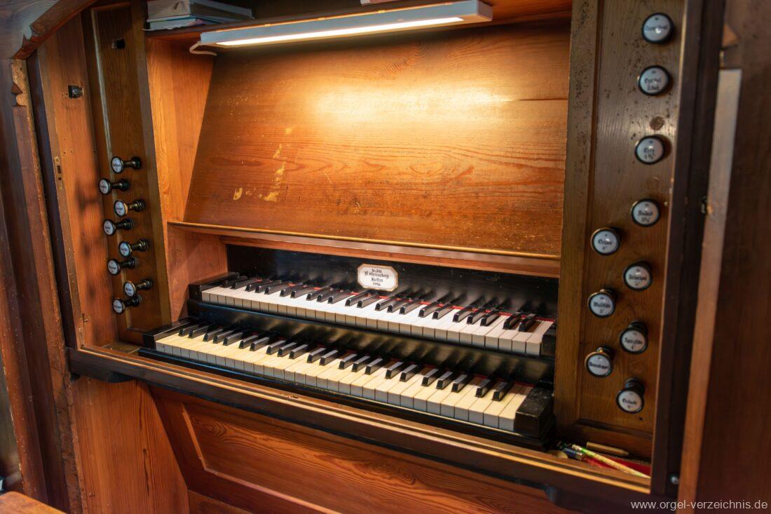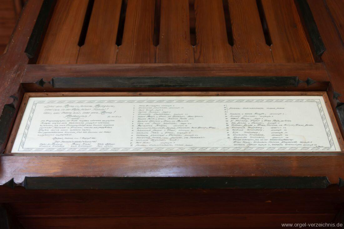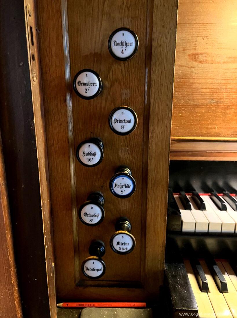II Manual C – f“‘Gedackt 8′ bis c° Altbestand Dulzflöte 4′ Oktävlein 1′