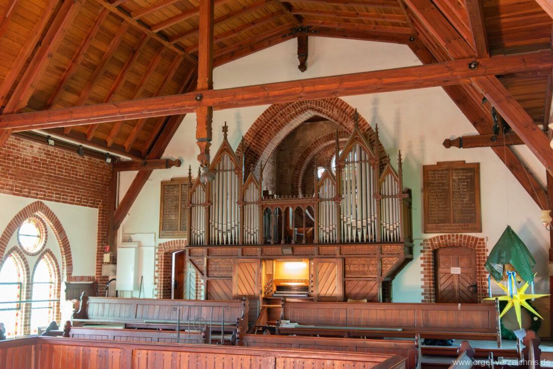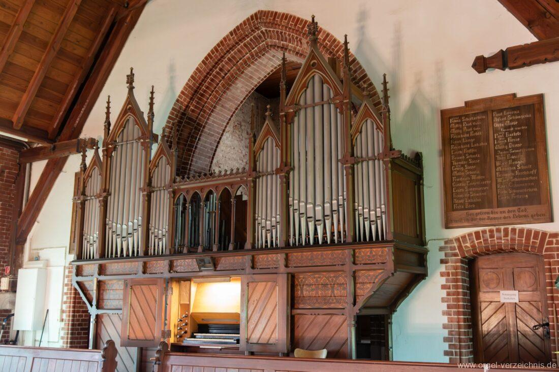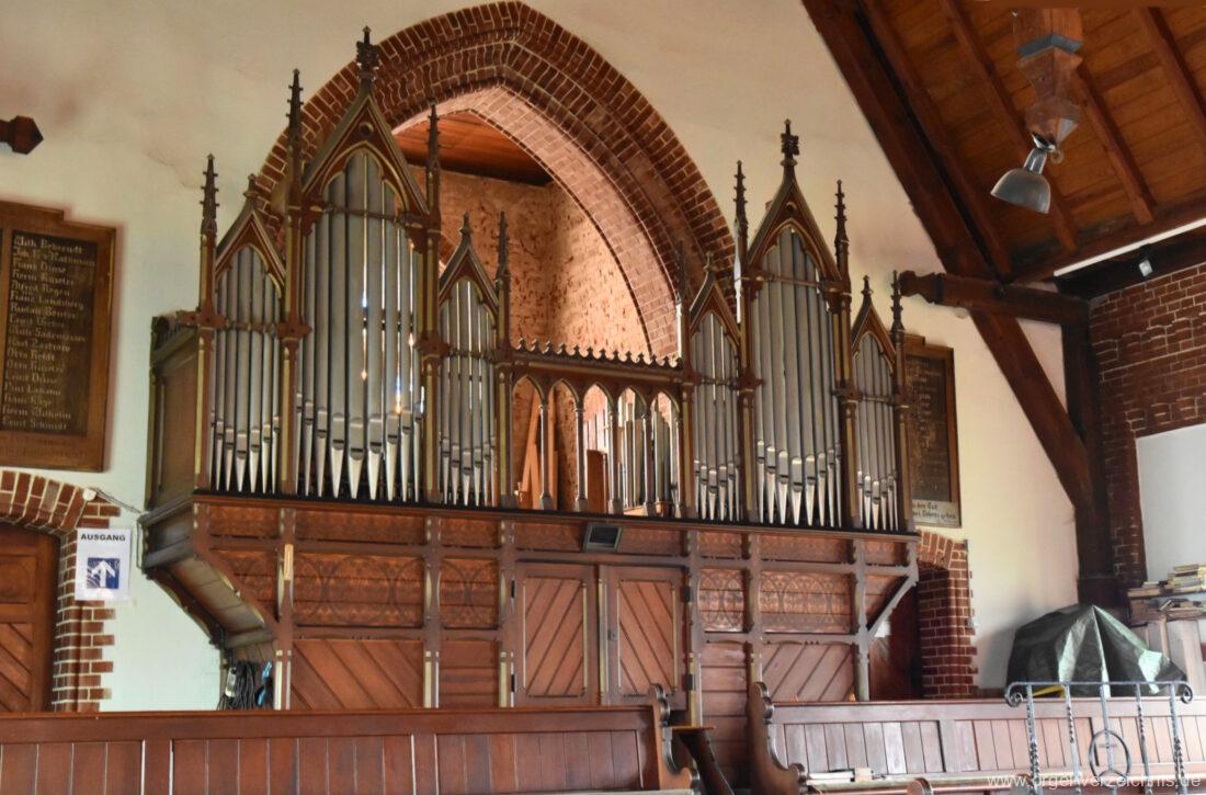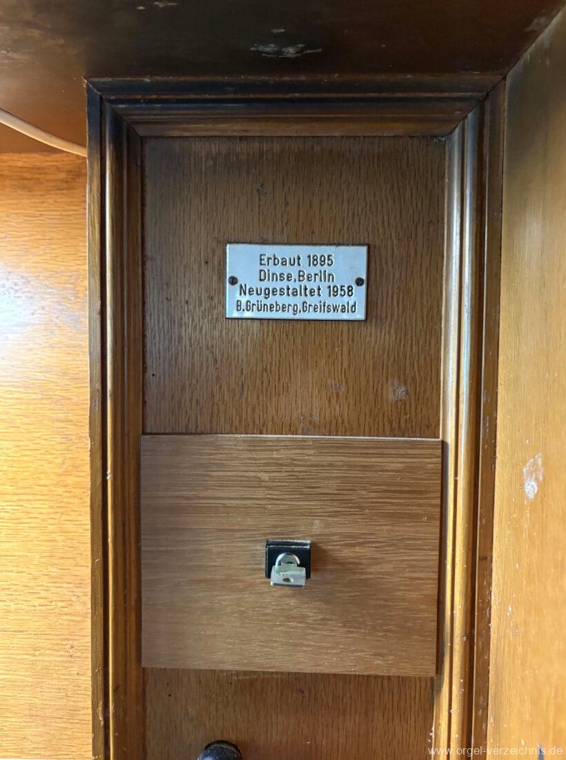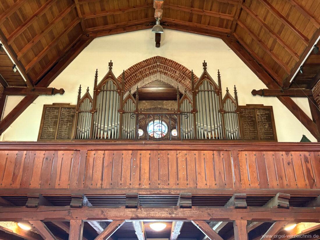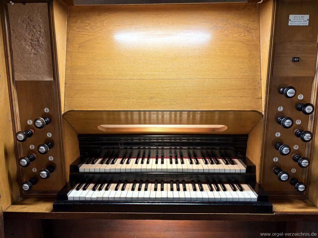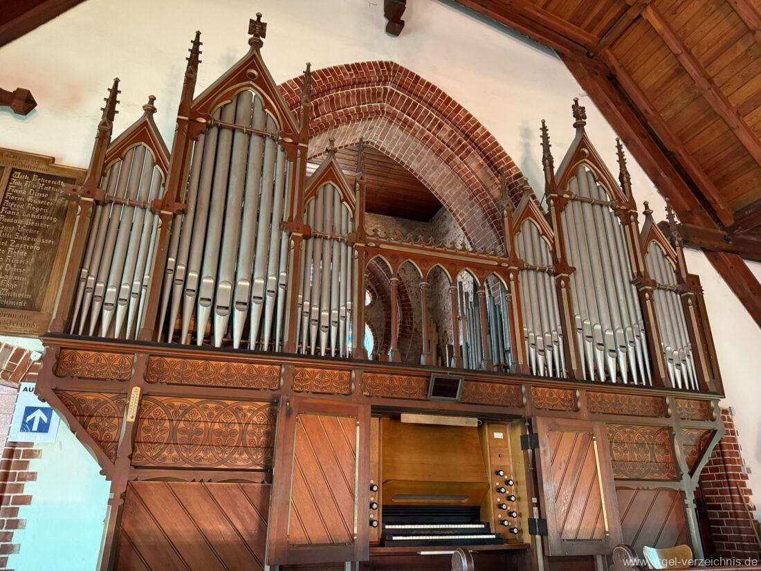 1895 mechanische Schleifladenorgel mit mittig fest eingebautem Spielschrank, erbaut von Orgelbau Gebrüder Dinse (Berlin).