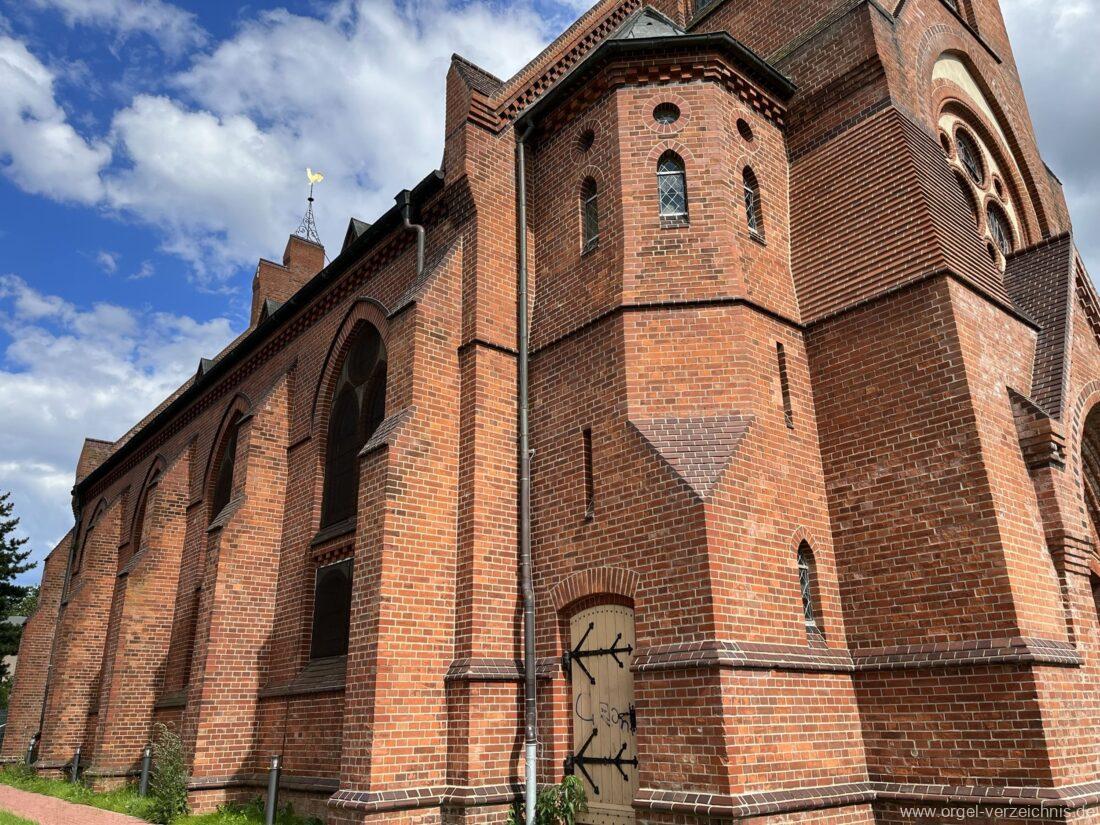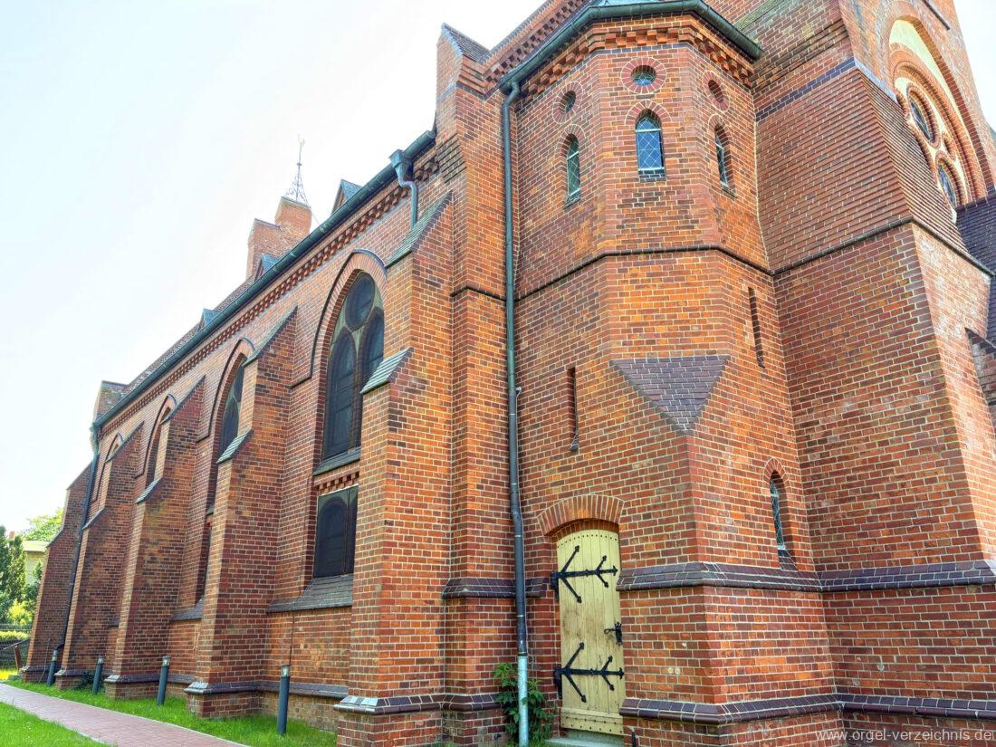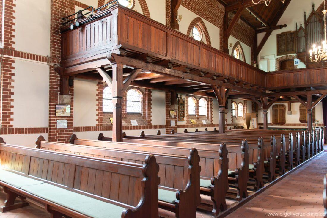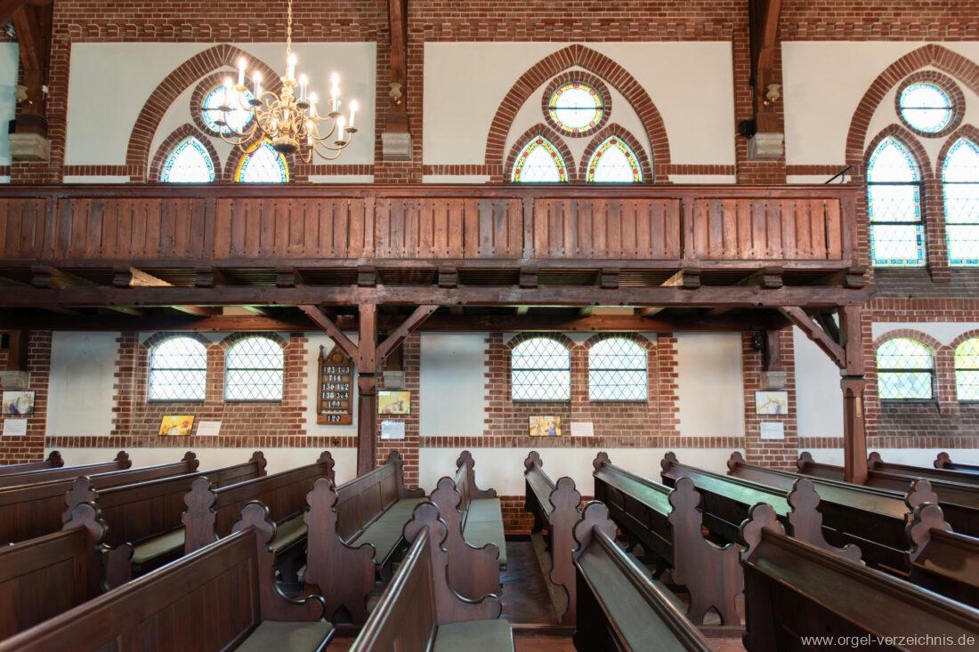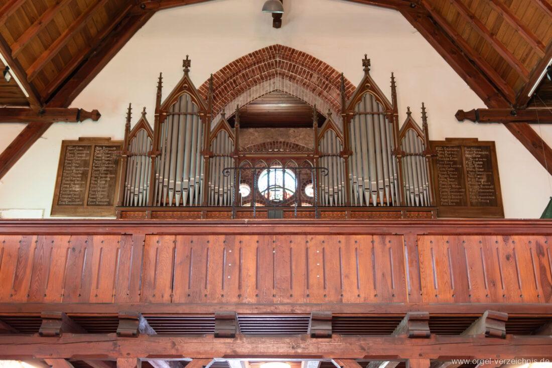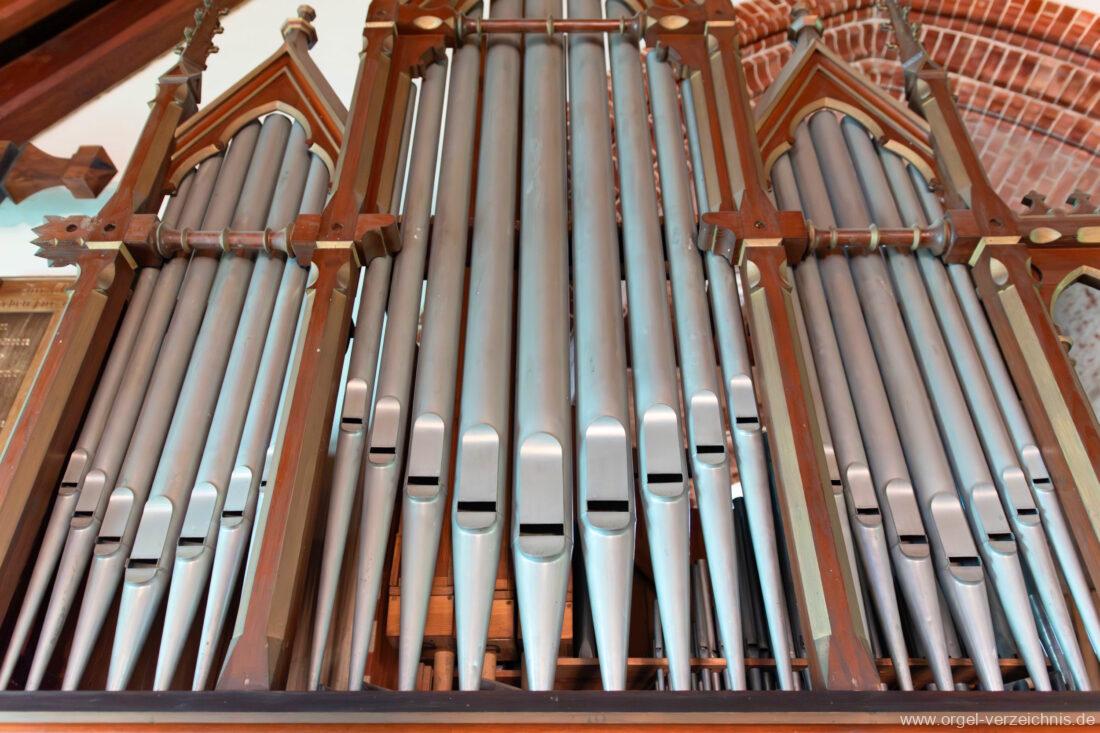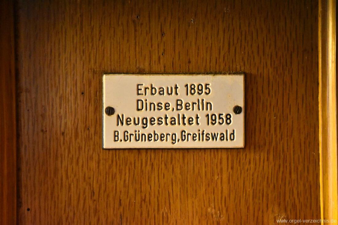 1895 mechanische Schleifladenorgel mit mittig fest eingebautem Spielschrank, erbaut von Orgelbau Gebrüder Dinse (Berlin).