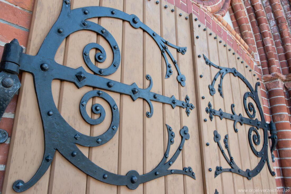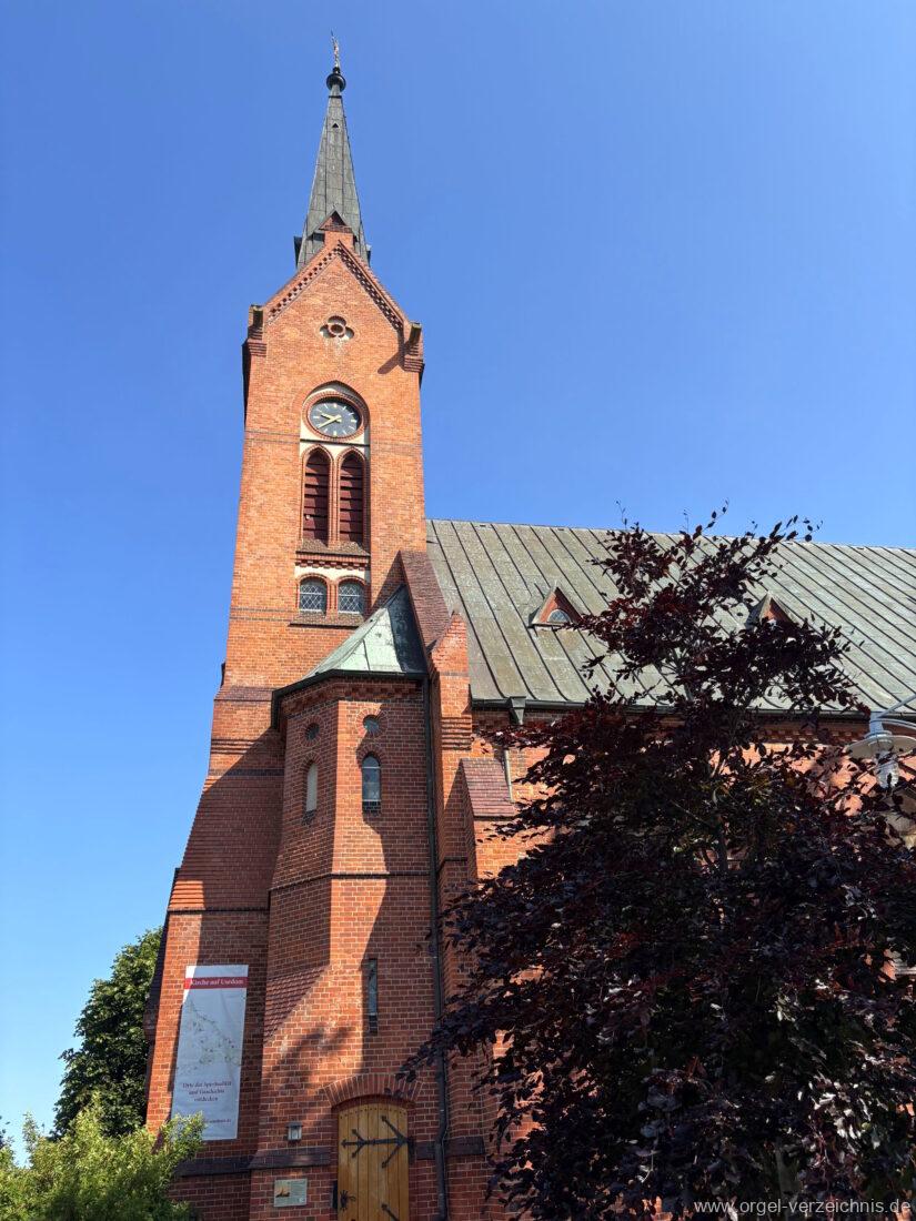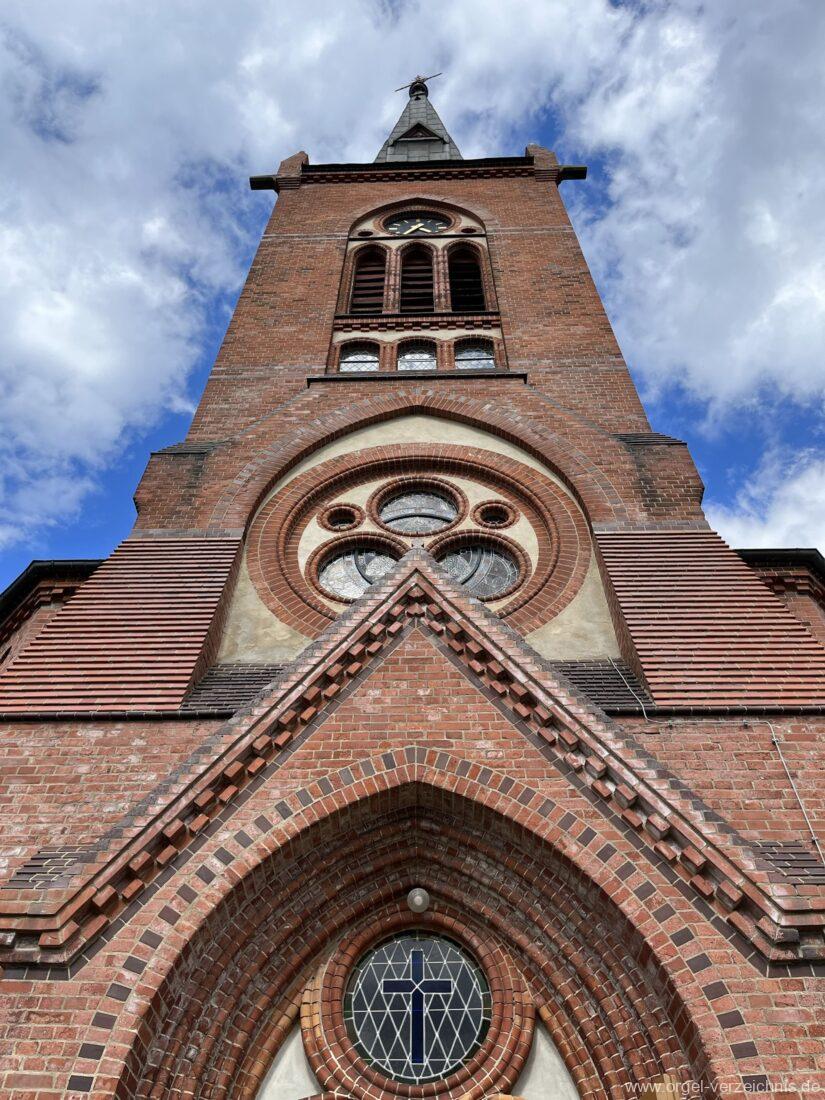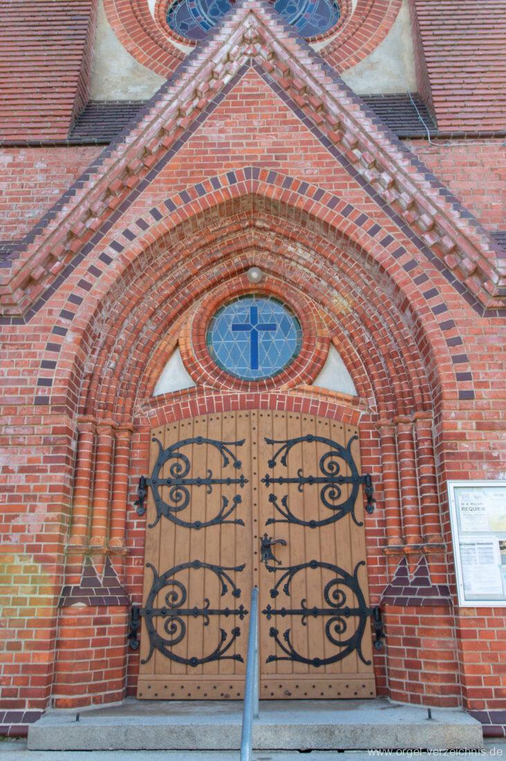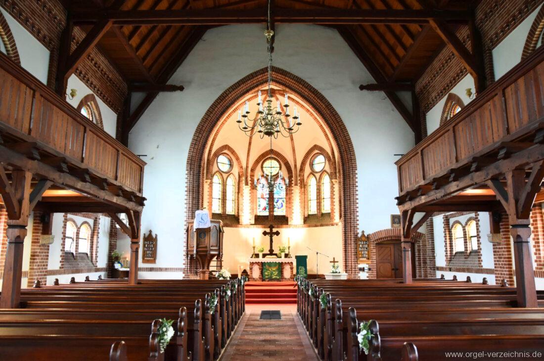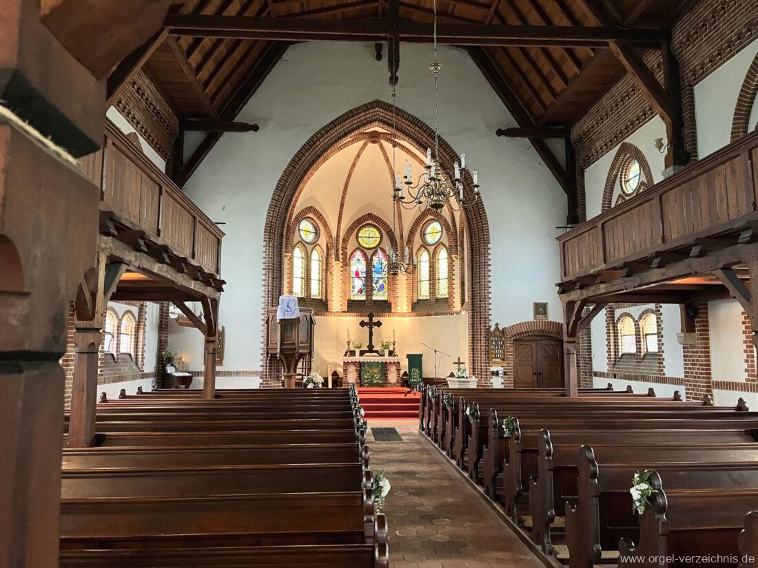 1895 mechanische Schleifladenorgel mit mittig fest eingebautem Spielschrank, erbaut von Orgelbau Gebrüder Dinse (Berlin).