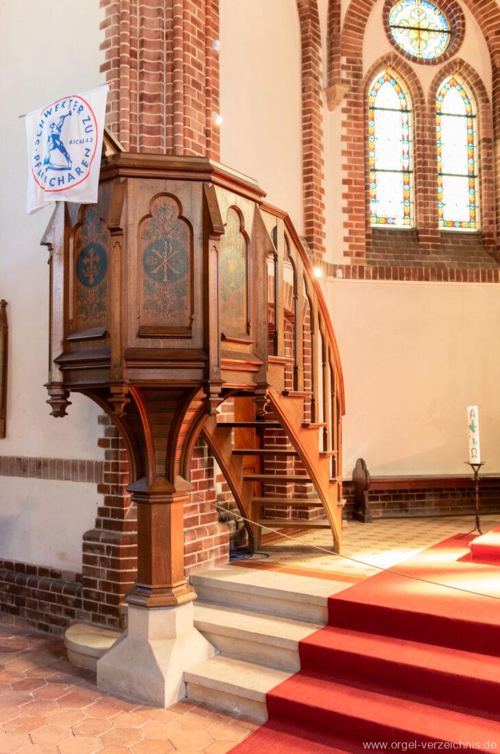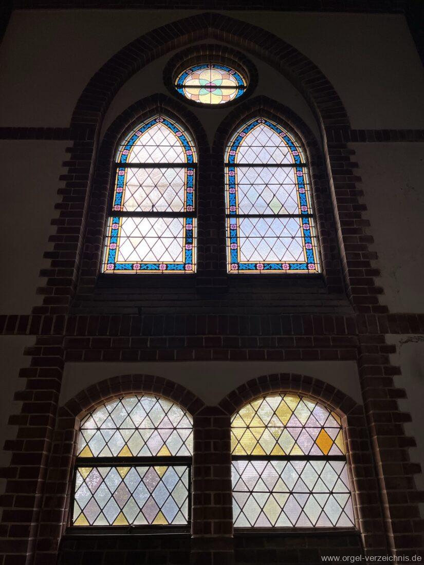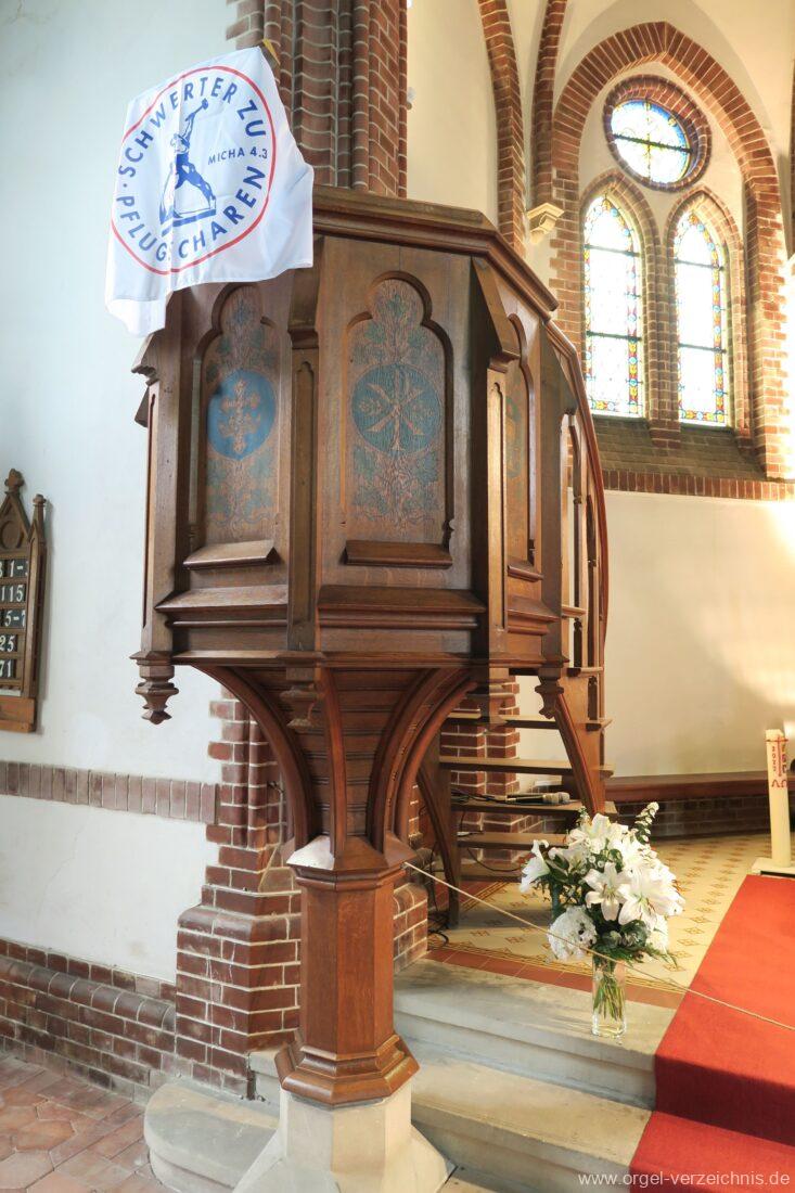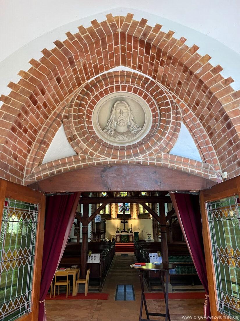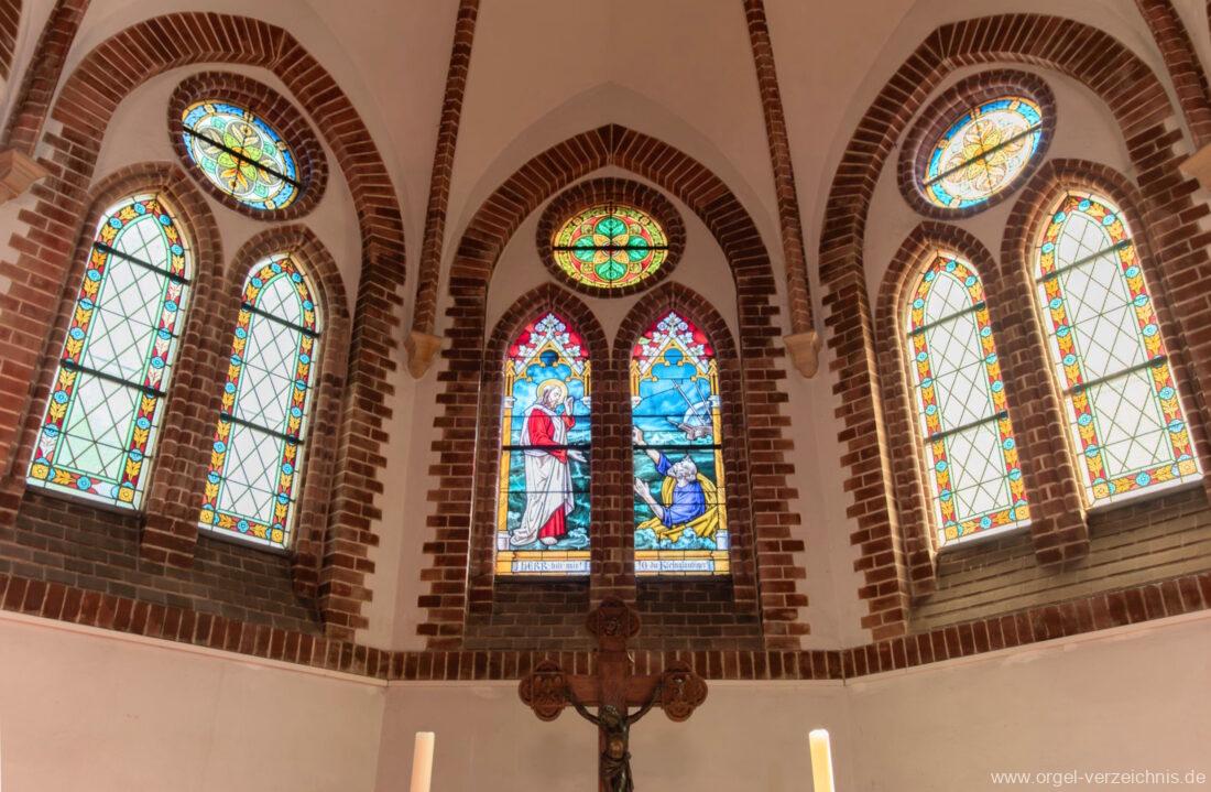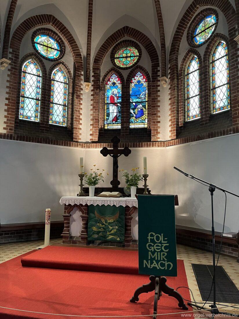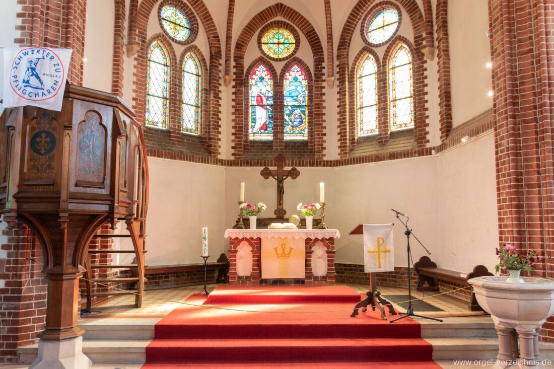 1895 mechanische Schleifladenorgel mit mittig fest eingebautem Spielschrank, erbaut von Orgelbau Gebrüder Dinse (Berlin).