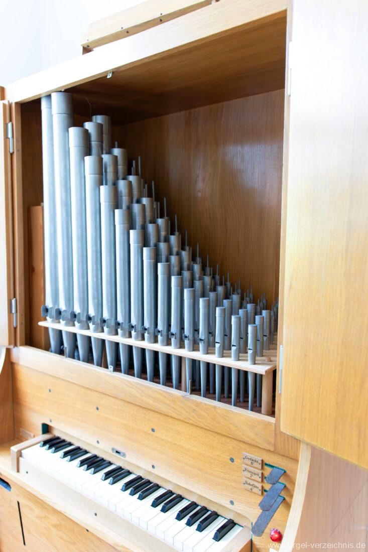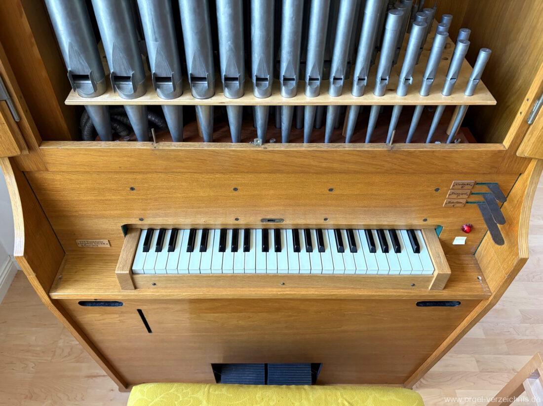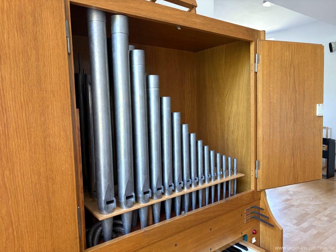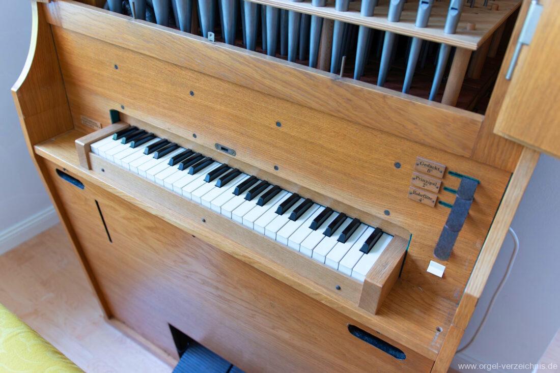 Manual F – d‘Gedackt 8′ F – A Holz ged., ab B Metall ged. Rohrflöte 4′ Metall rohrged. Prinzipal 2′ Metall