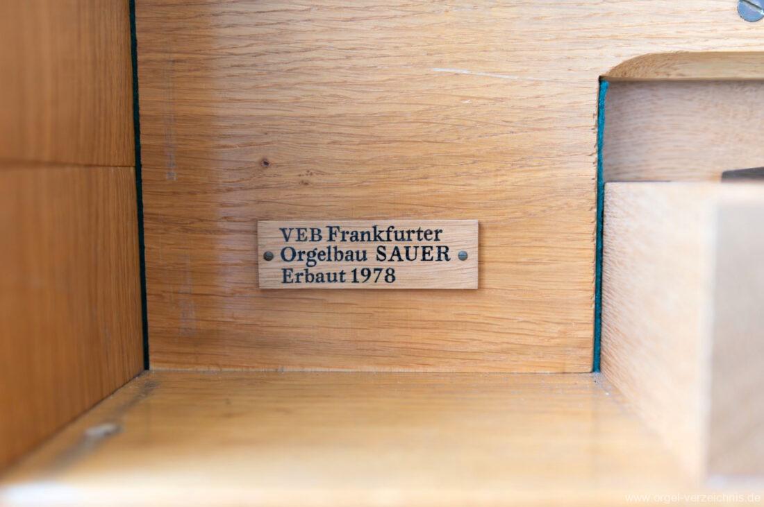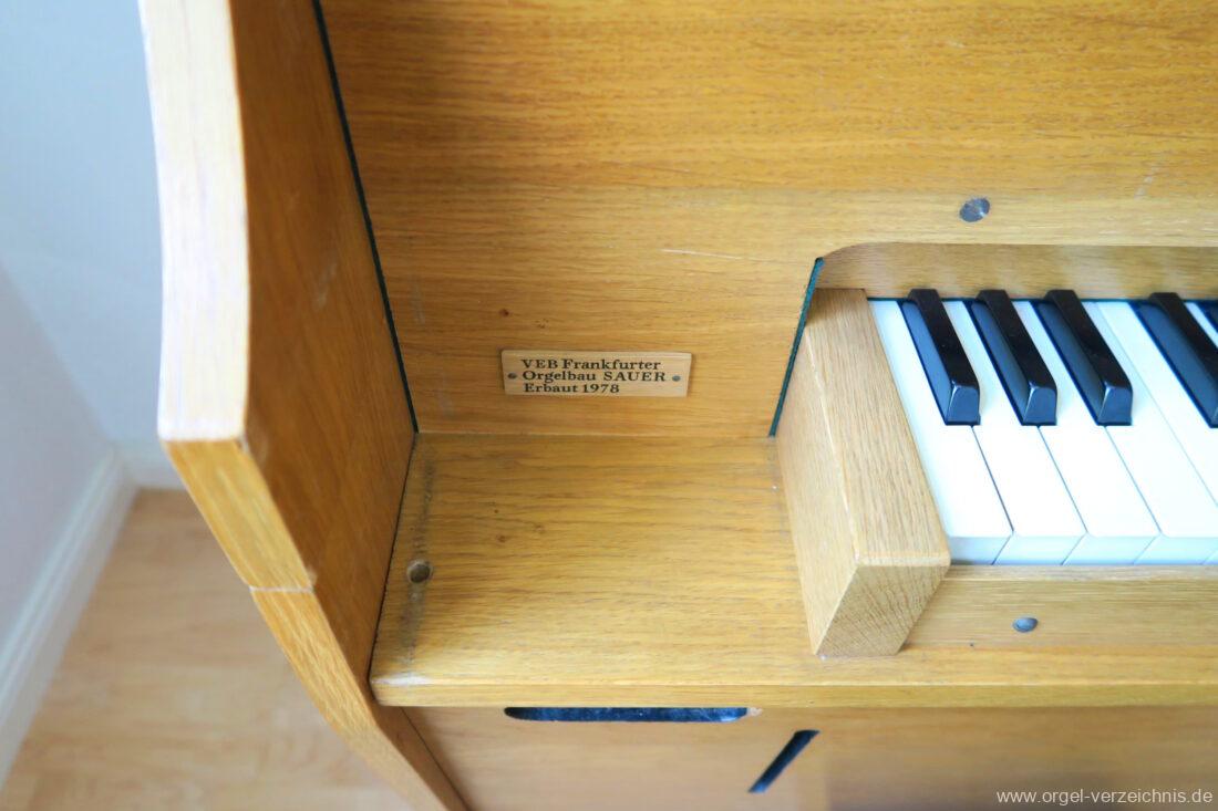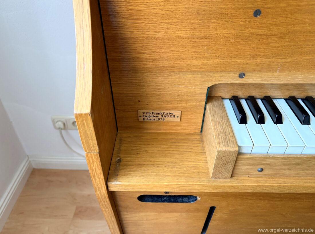 1978 mechanisches Schleifladenpositiv, erbaut für die im Jahr 2024 profanierte katholische Kirche St. Marien in Gützkow durch VEB Frankfurter Orgelbau Sauer I/3 ohne Pedal. Das Instrument kann einerseits mittels zweier Fussschöpfer oder mit Motor gespielt werden. Zudem verfügt das Instrument über manuell klappbare Prospektflügeltüren. Es handelt sich um das Serienpositiv I von VEB Frankfurter Orgelbau Sauer.