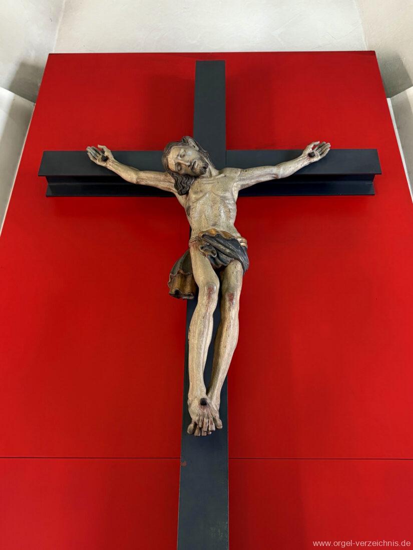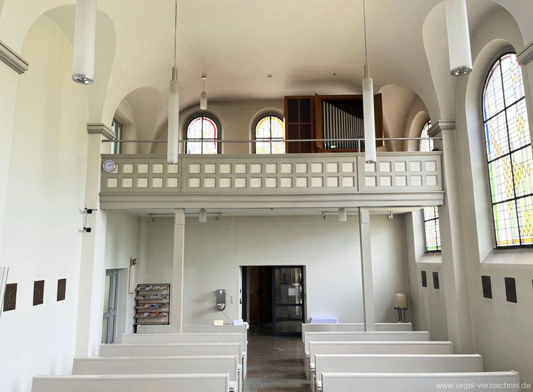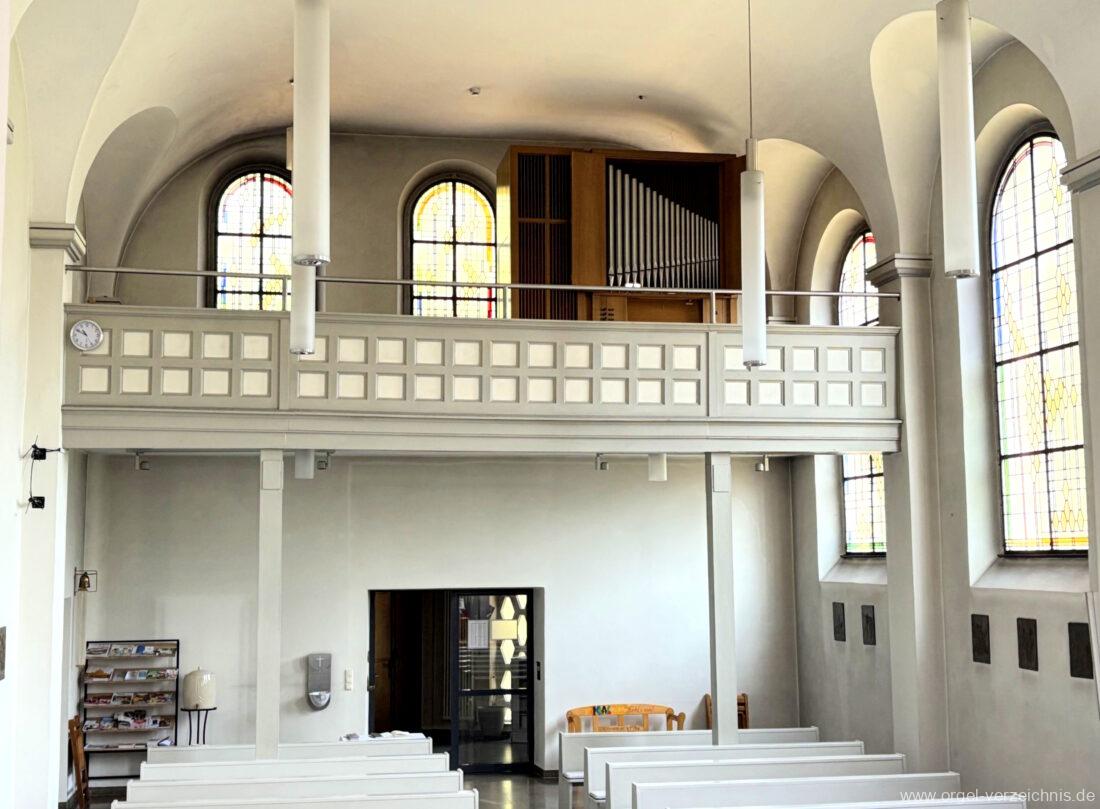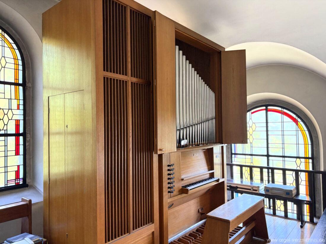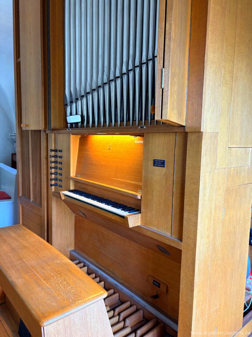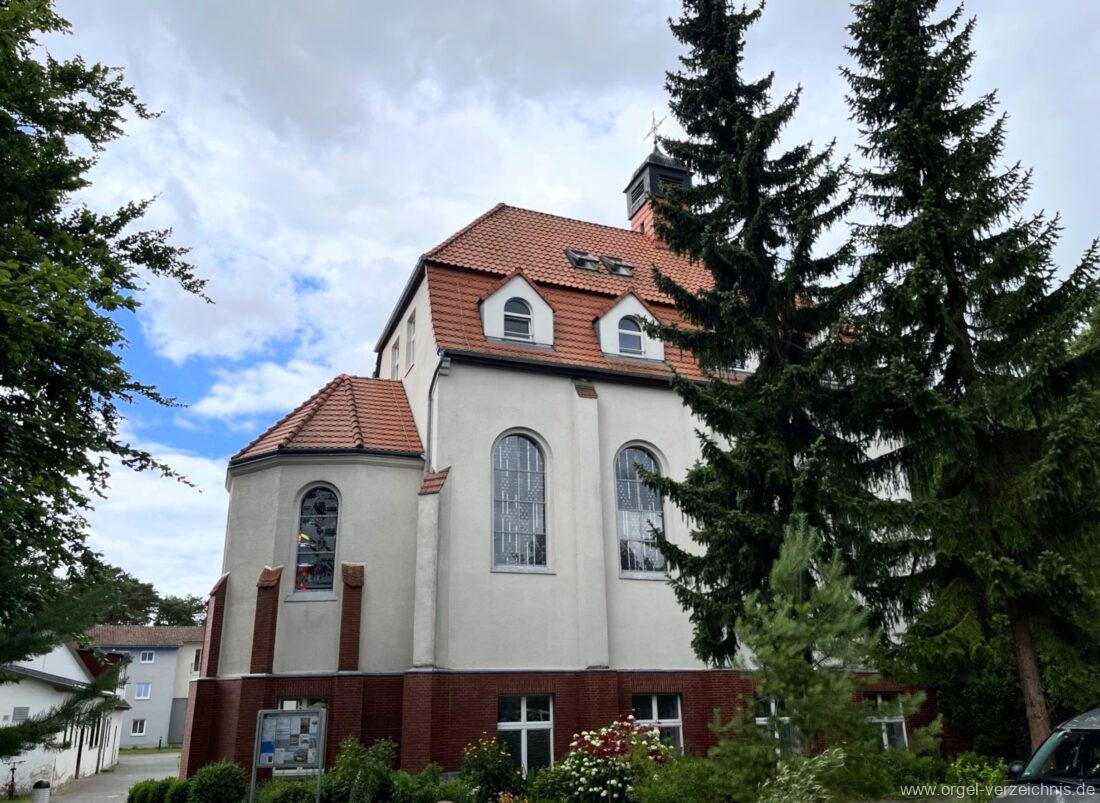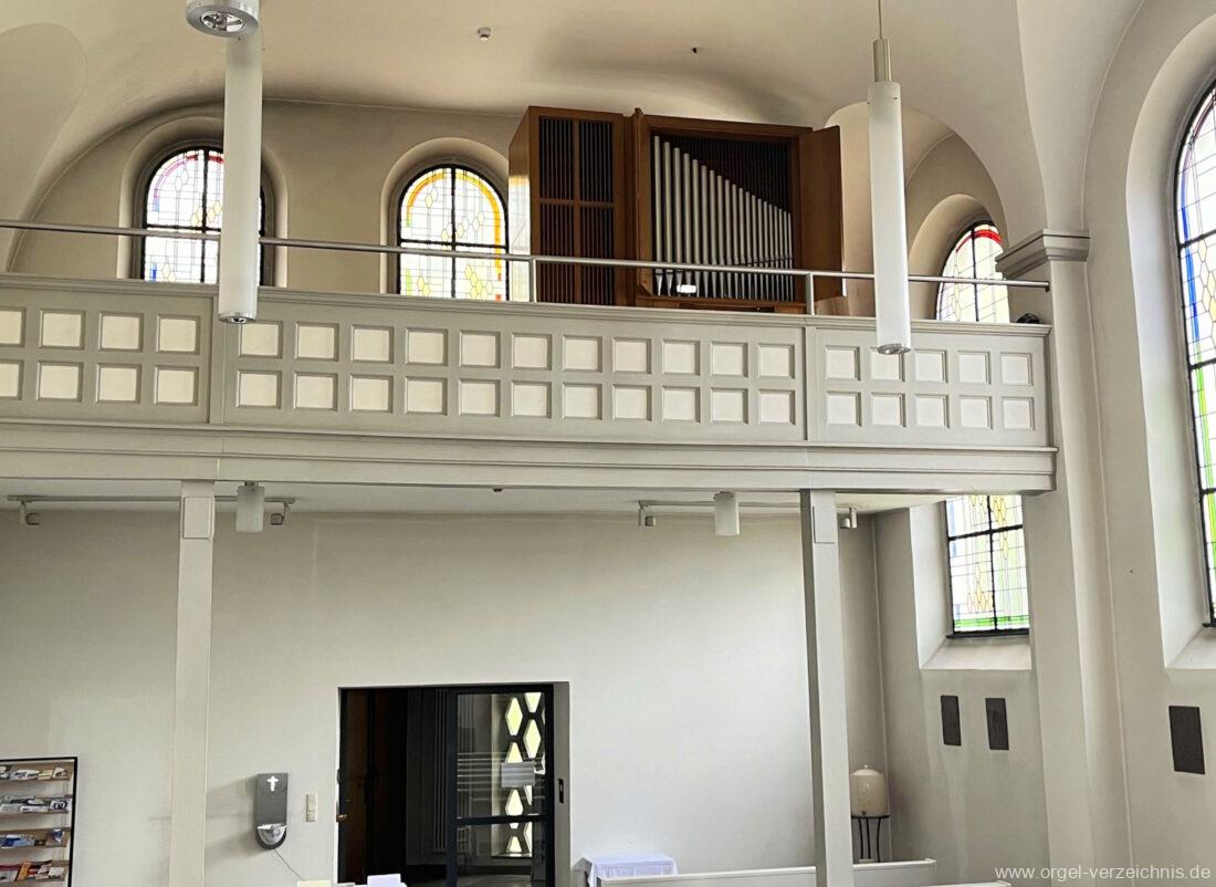 1972 mechanische Schleifladenorgel mit fest ins Gehäuse eingelassenem Spieltisch, erbaut Opus 926 von Orgelbau Gebrüder Jehmlich Dresden I/7. Das Manualwerk ist mittels zweier von Hand schiebbarer Prospektflügeltüren schwellbar. Das Pedalregister befindet sich im Gehäuseanbau auf der linken Seite.