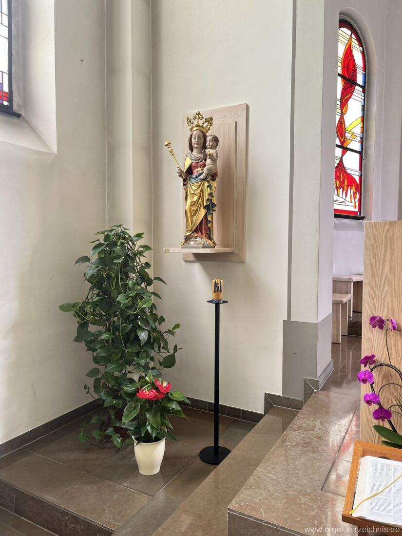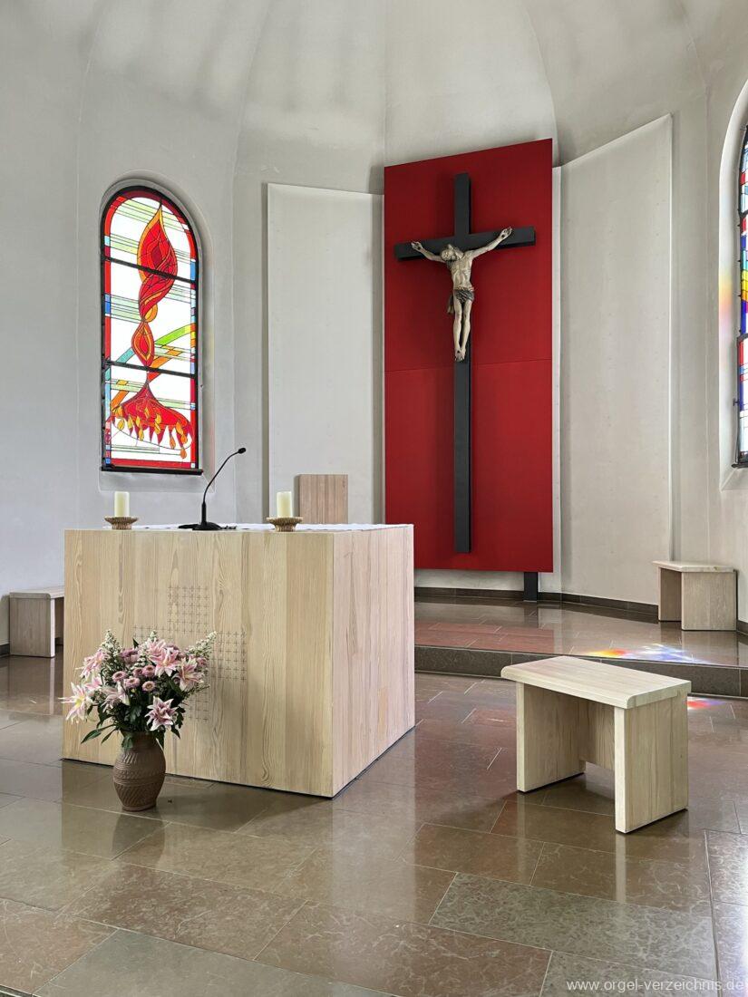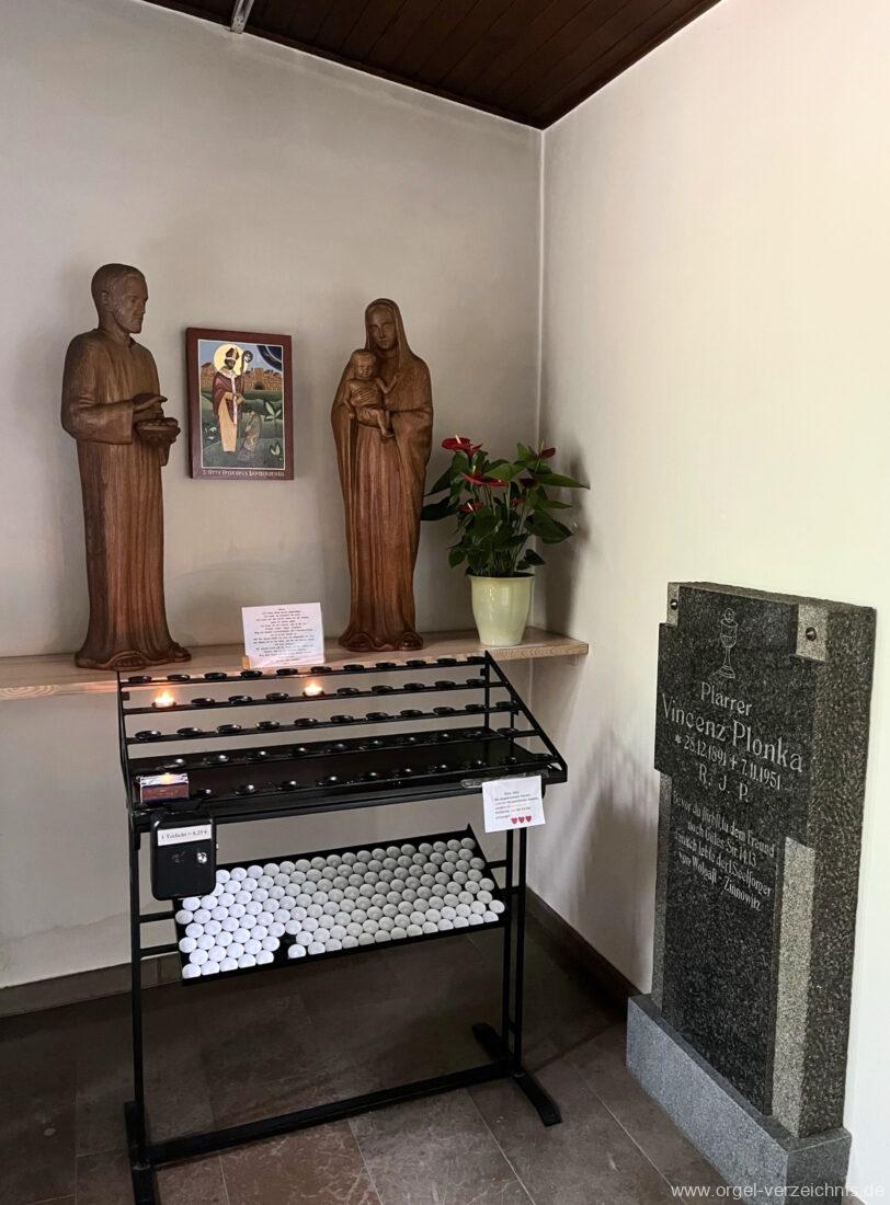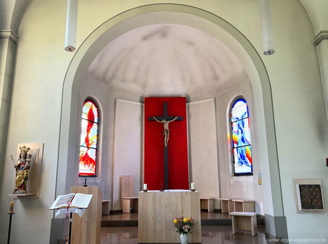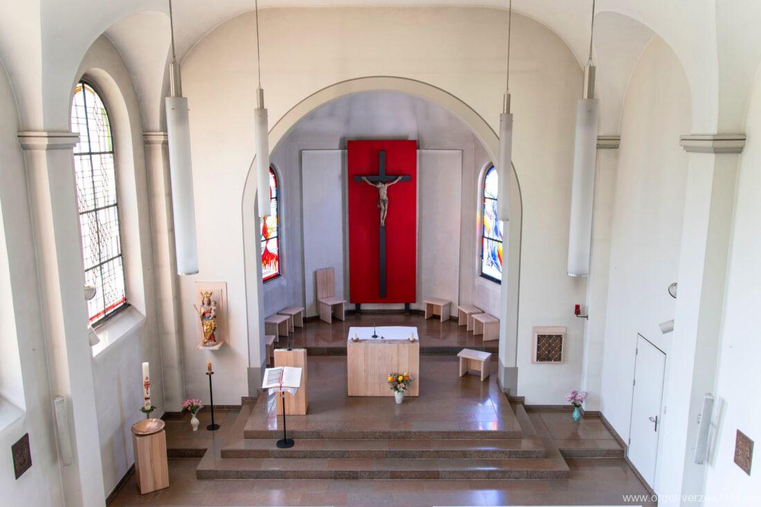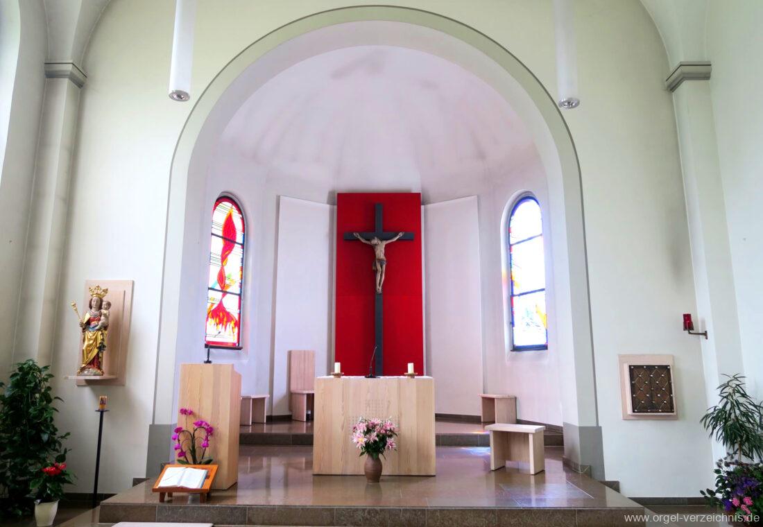 2006 Einrichtung einer Werktagskapelle, das Retabel aus der Kirche wird im Chorbereich aufgestellt. Die Kirche erhält eine rote Wand zwischen den Chorfenstern. Vor dieser Wand wird ein barockes Kruzifix angebracht. Bei dieser Massnahme findet eine Muttergottes-Statue den Platz auf der linken Seite vor dem Chorbogen und ein Kreuzweg aus Bronze wird errichtet.