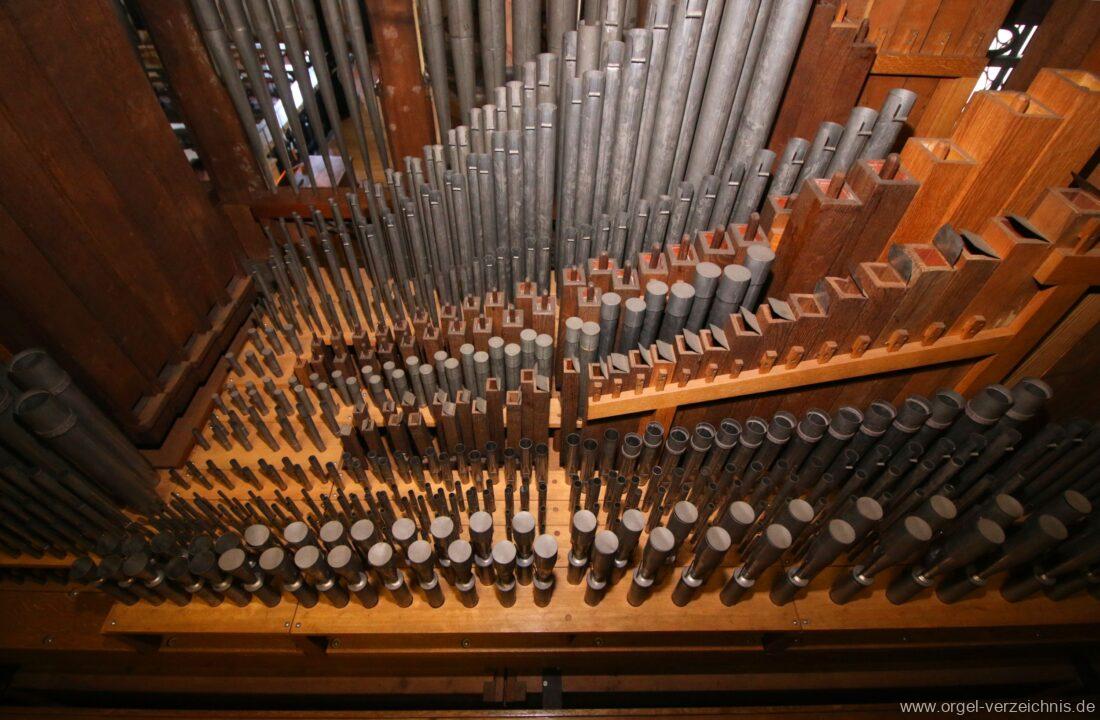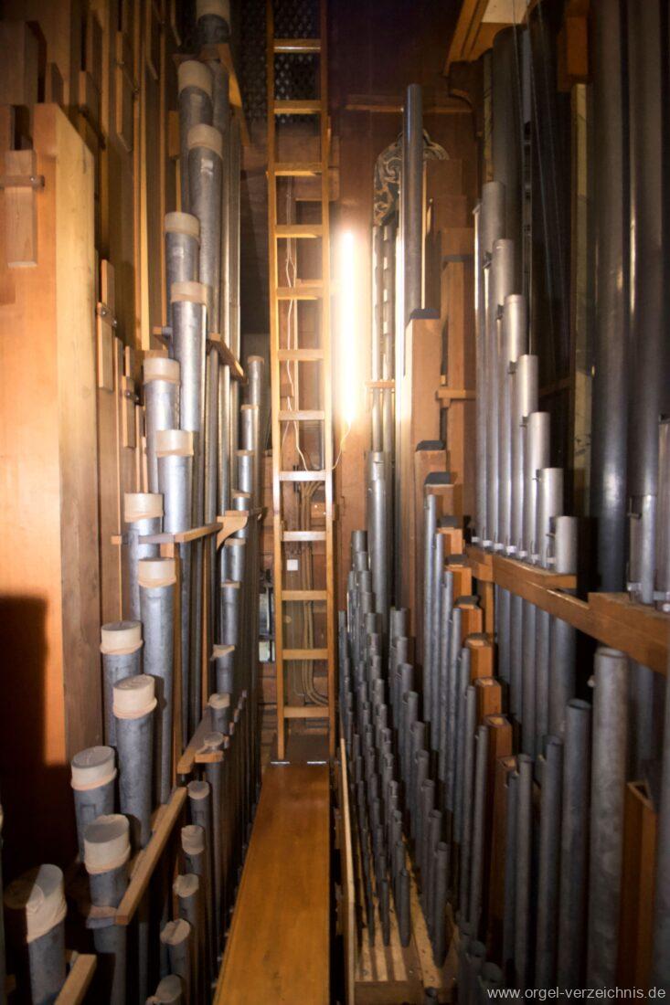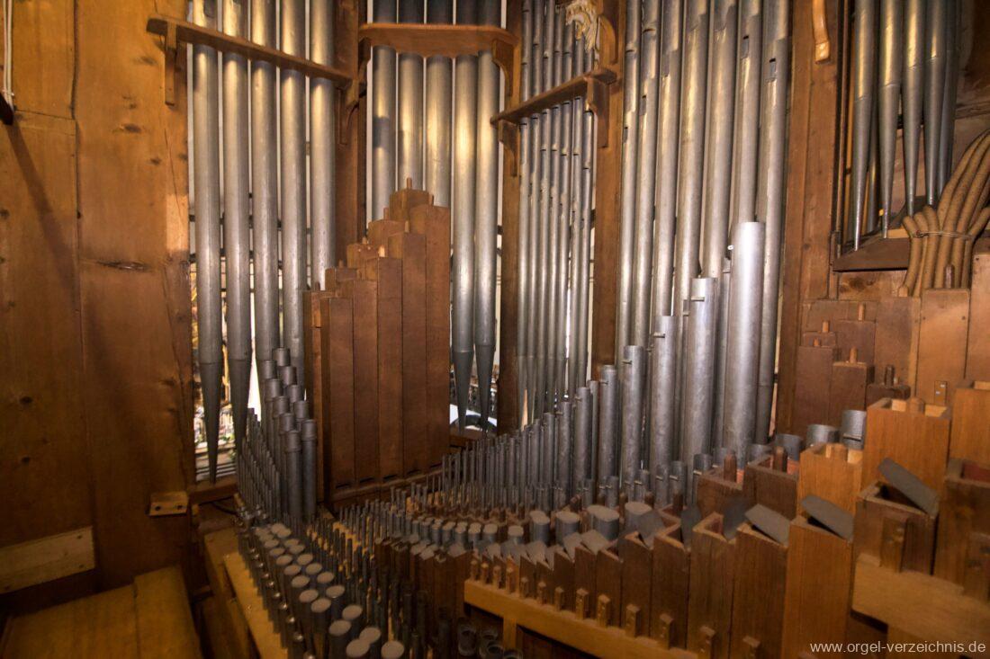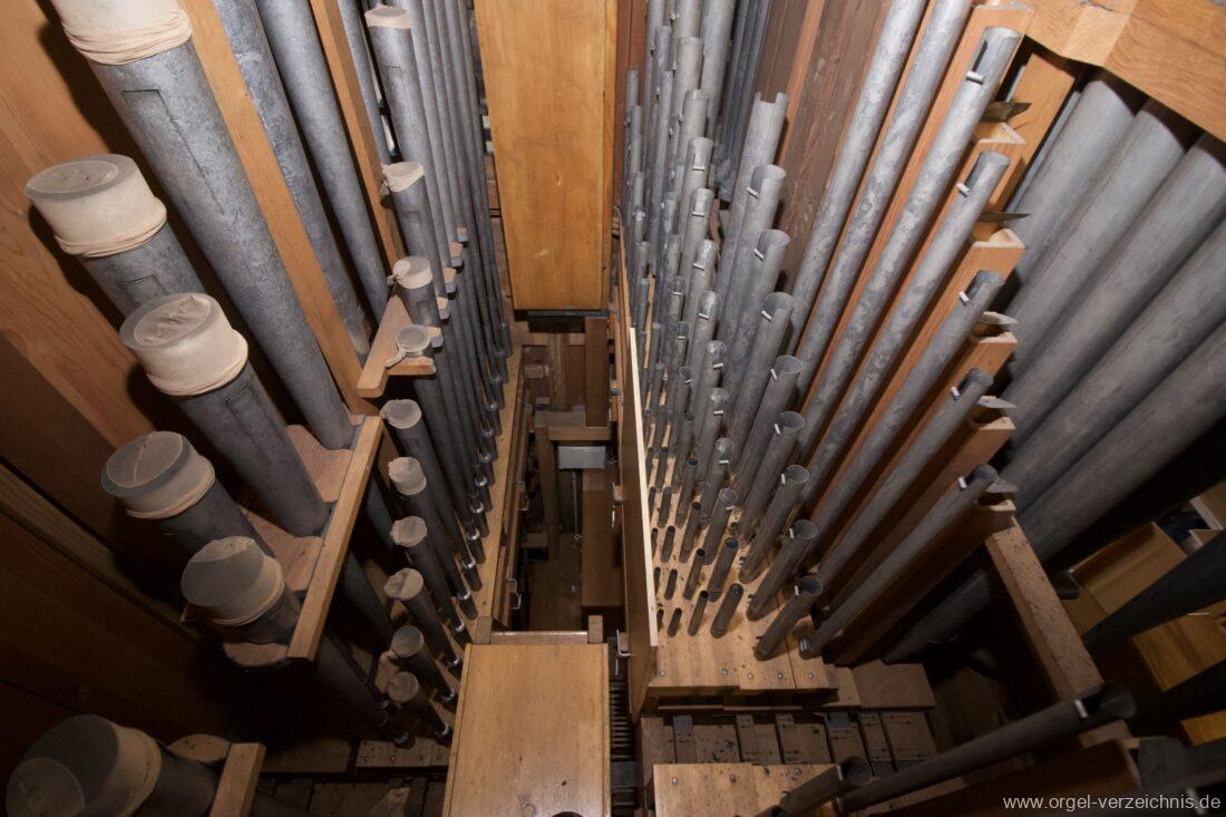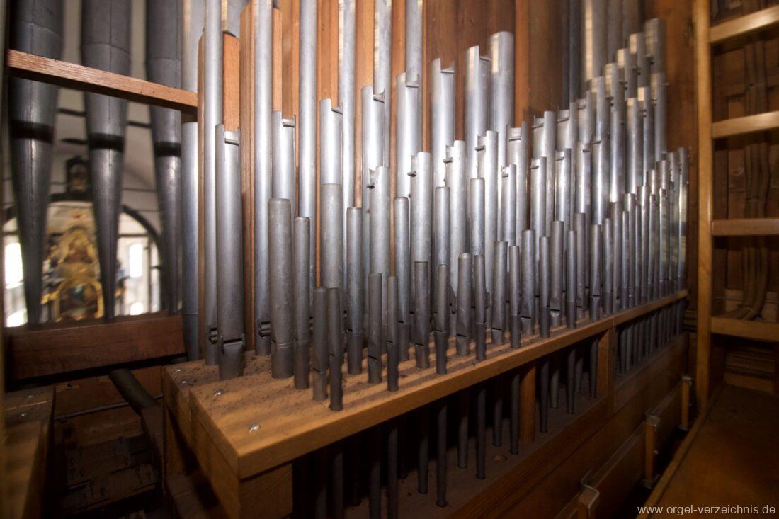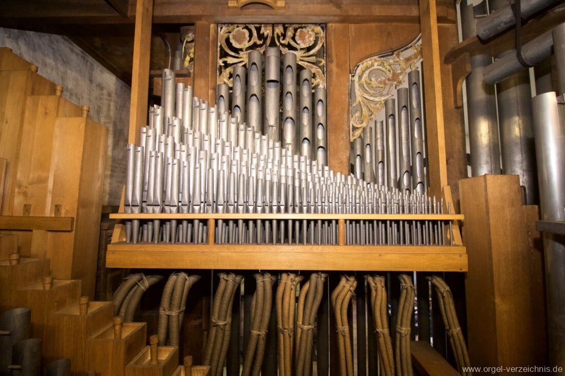 Die Register Praestant 16′ HW / Principal 8′ HW / Praestant 4′ POS und Violoncello 8′ PED standen teilweise im Prospekt