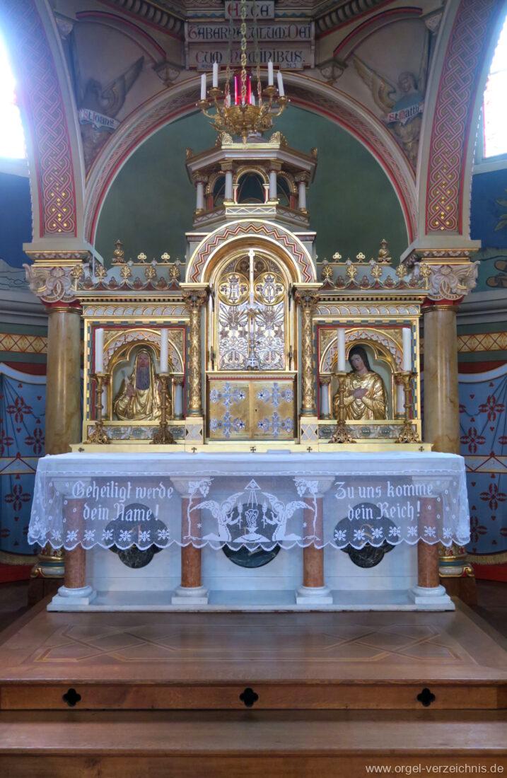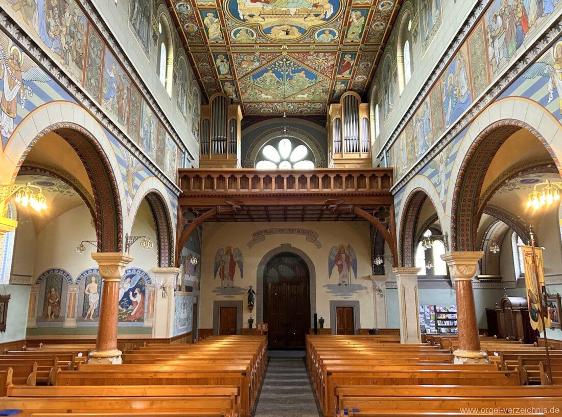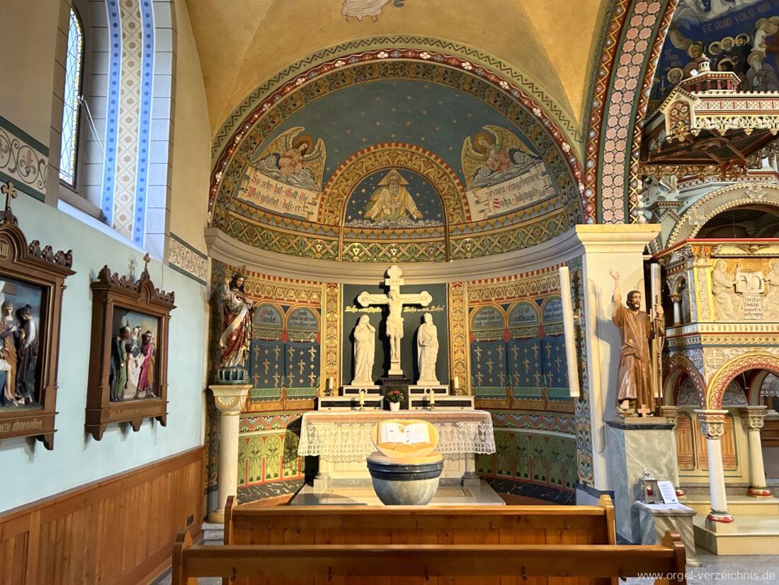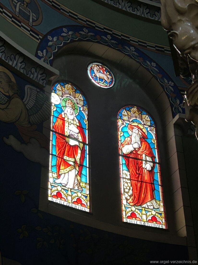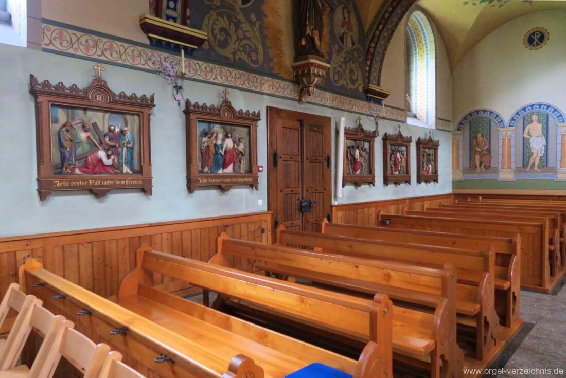 1908 pneumatische Kegelladenorgel mit mittig freistehendem Spieltisch, erbaut durch die Gebrüder Mayer (Feldkirch/Vorarlberg) II/19. Das Gehäuse wurde von Carl Glauner (Wil) erschaffen und gefasst.