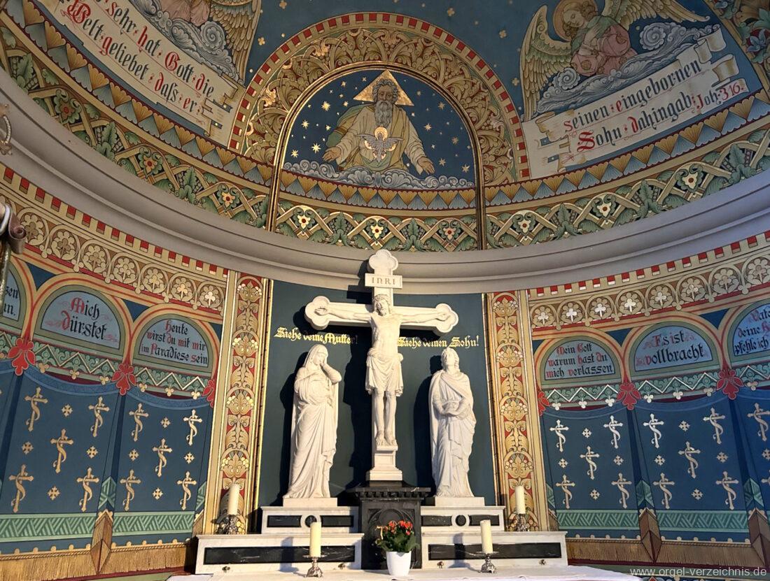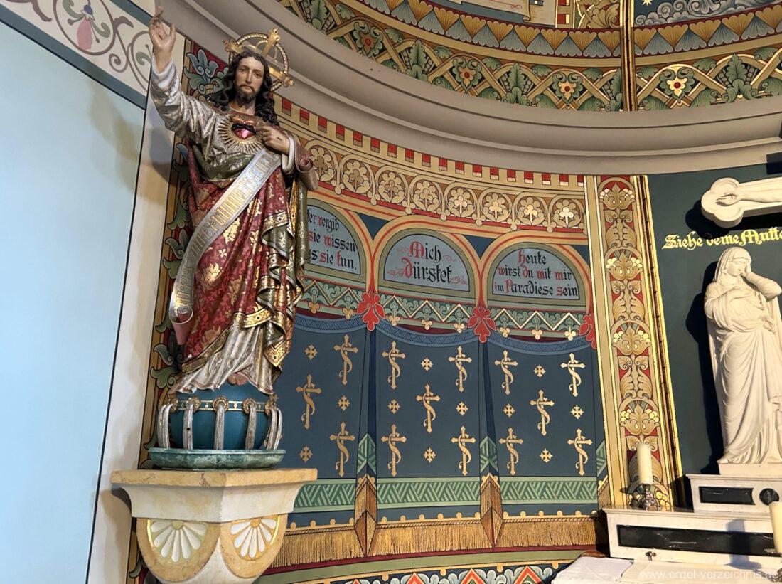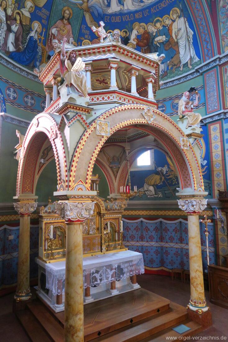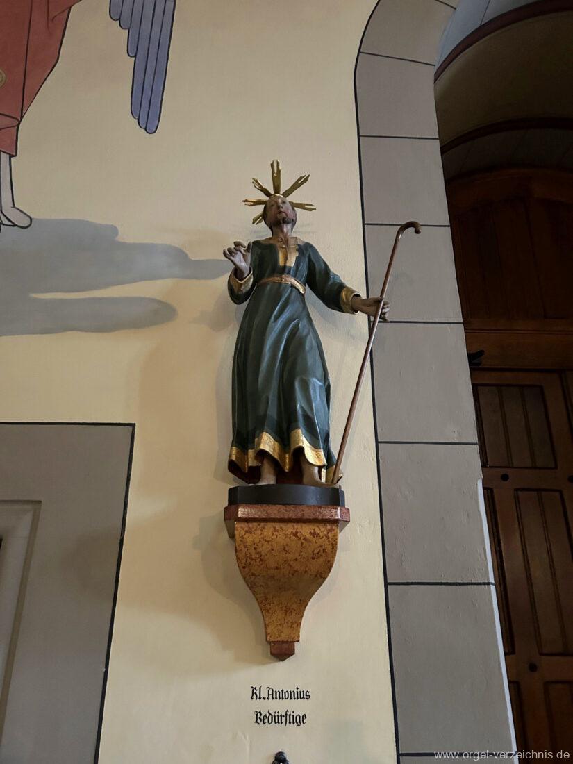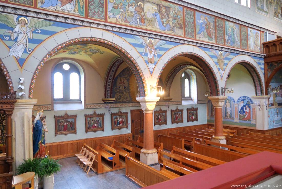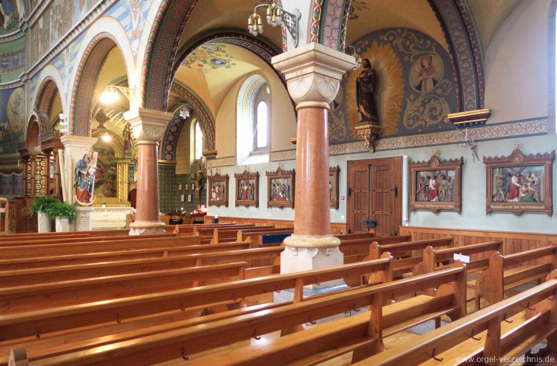 1908 pneumatische Kegelladenorgel mit mittig freistehendem Spieltisch, erbaut durch die Gebrüder Mayer (Feldkirch/Vorarlberg) II/19. Das Gehäuse wurde von Carl Glauner (Wil) erschaffen und gefasst.