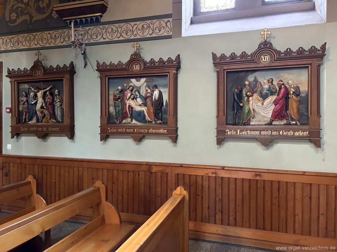 1785 Kreuzwegstationen von Maler Franz Xaver Magnus Sutter. Diese Stationen wurden zu einem späteren Zeitpunkt in die Wallfahrtskirche Heilig-Kreuz St. Gallen transferiert.