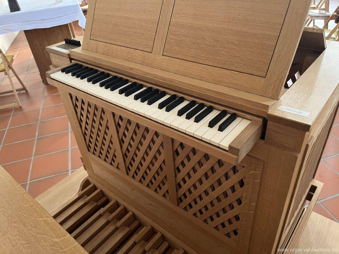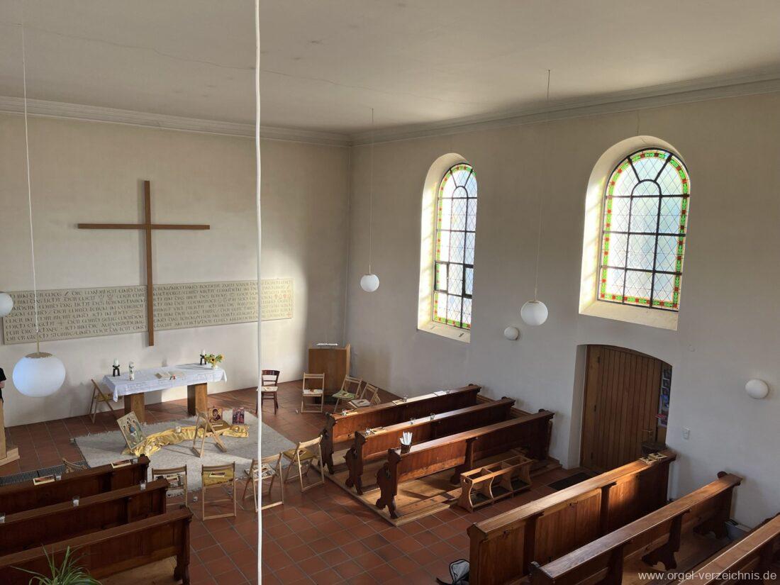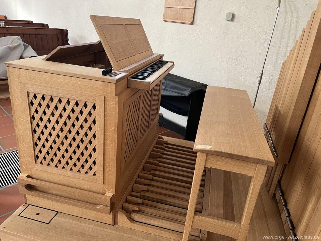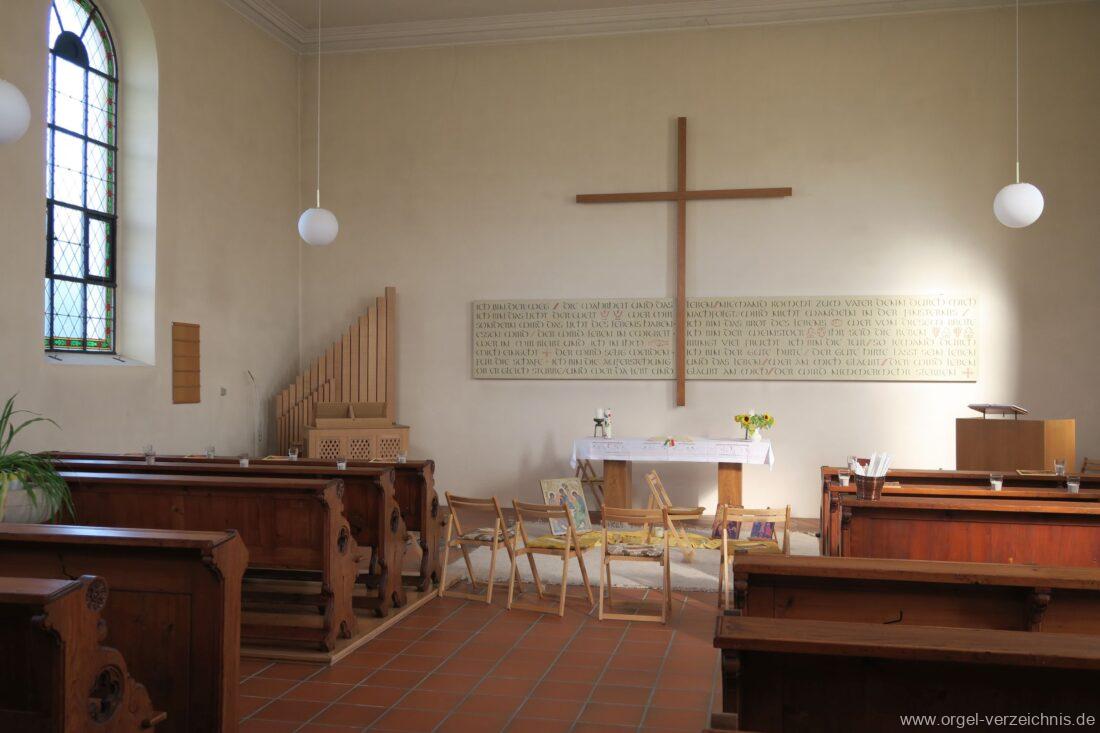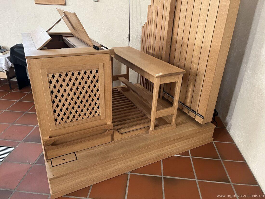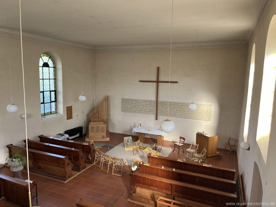 2022 mechanische Schleifladenorgel mit Schleifenteilung, erbaut in der Art einer Truhenorgel (Eichenholz-Gehäuse) mit angehängtem Pedal und eigenem Pedalregister durch Orgelbau Jens Steinhoff (Schwörstadt) I/6 aP. Die Truhenorgel kann separiert werden und in anderen Kirchen der Region zu Konzerten und Veranstaltungen genutzt werden – Einweihung am 13. März 2022 mit LKMD Christoph Bogon.